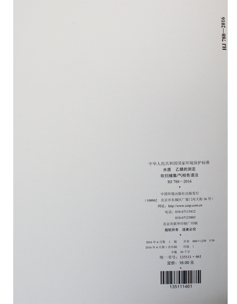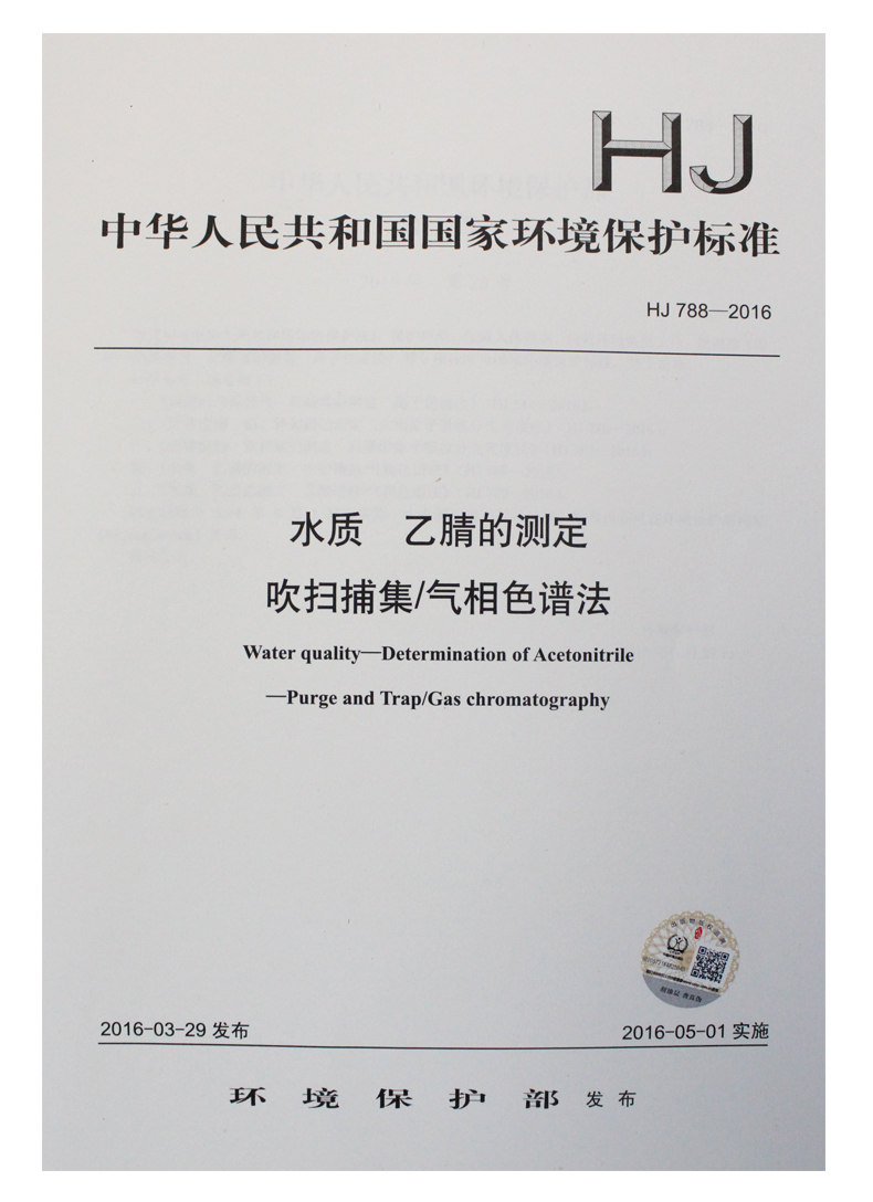 HJ 788-2016 水质 乙腈的测定 吹扫捕集/气相色谱法 国家标准 国标 GB 环境保护 135111461