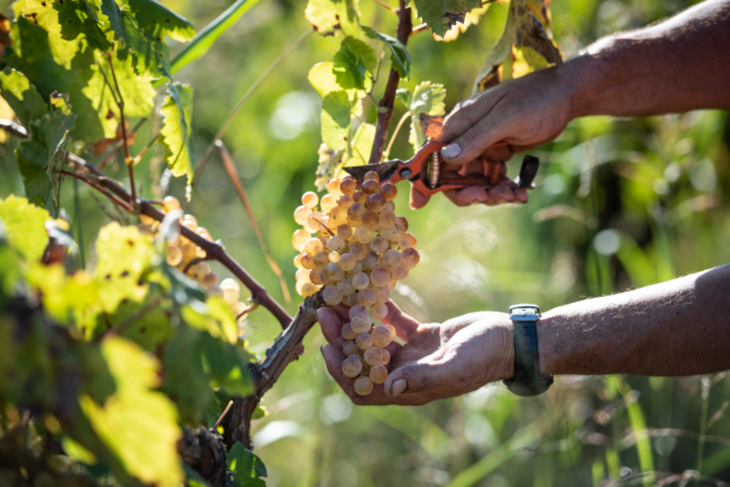 酒庄拥有22公顷葡萄园,海拔165米,享有独特的小气候:终年免受寒冷北风侵袭,夏季凉爽干燥,冬季温和,全年阳光充沛。园内土壤由冲积土、石灰岩与砾石构成,十分适合优质葡萄的生长。最古老的葡萄藤平均树龄达40年,仍采用修枝法与手工采摘,以控制产量并保证果实品质。葡萄成熟度通过实验室糖酸分析与人品尝果实相结合的方式双重评估。