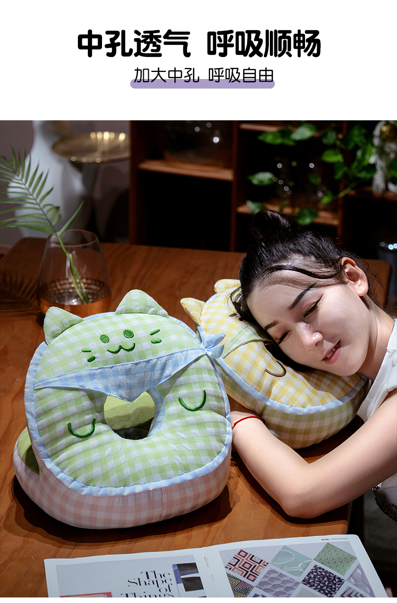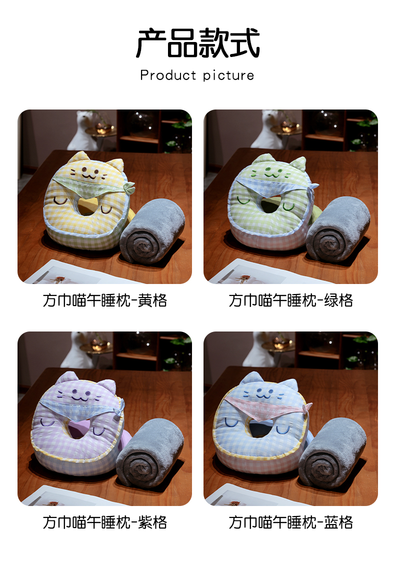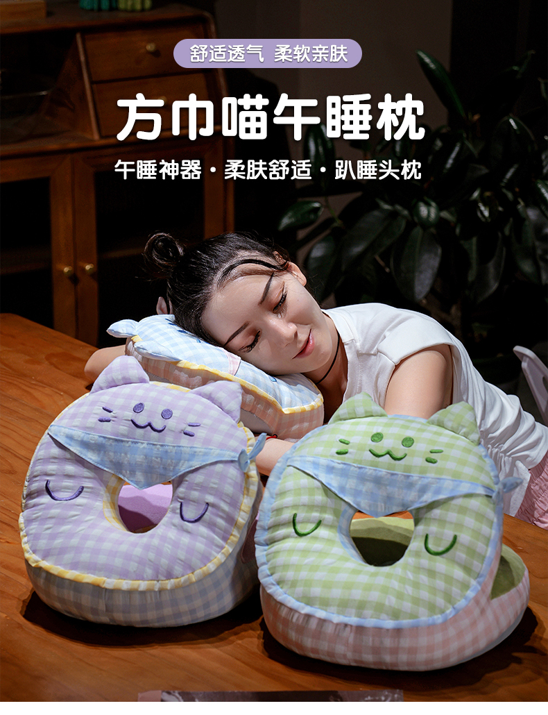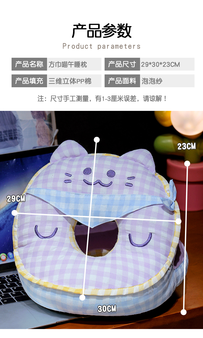 自然醒泡泡纱方巾格子喵双面午睡枕QYL