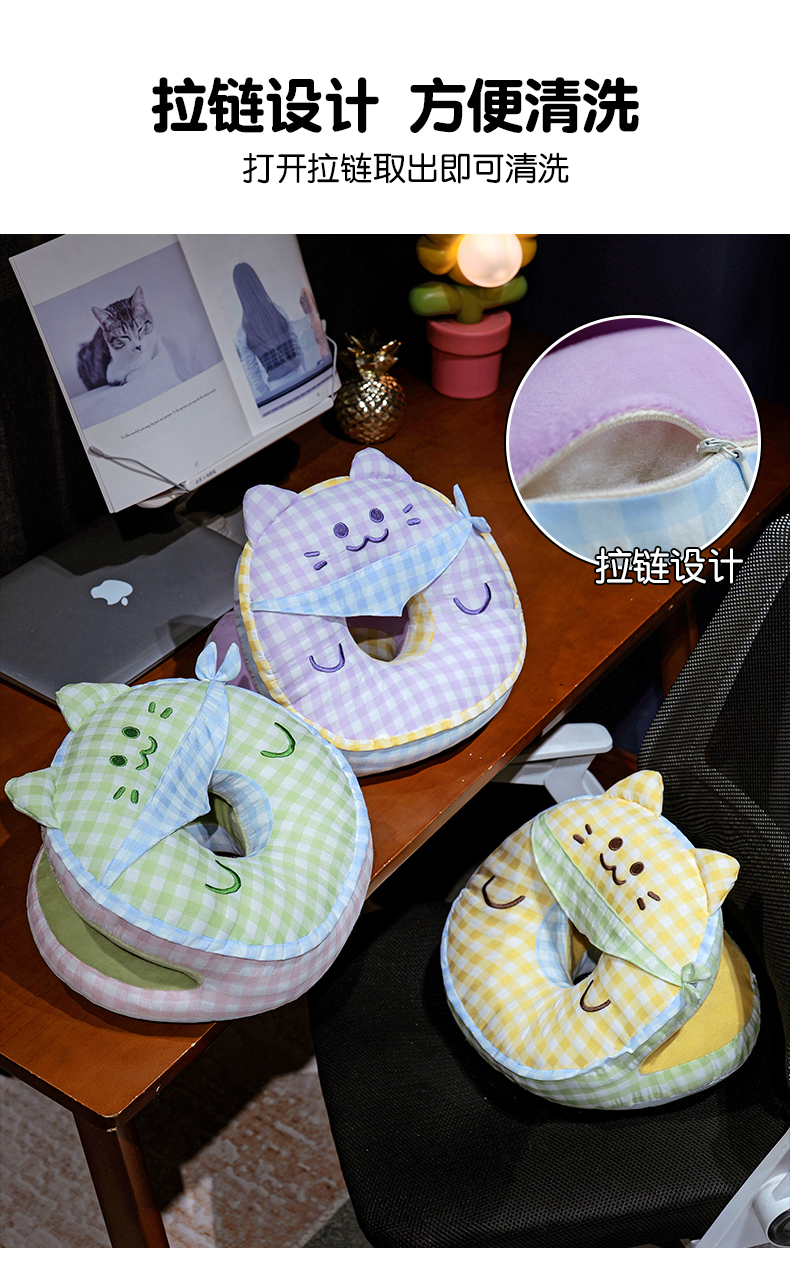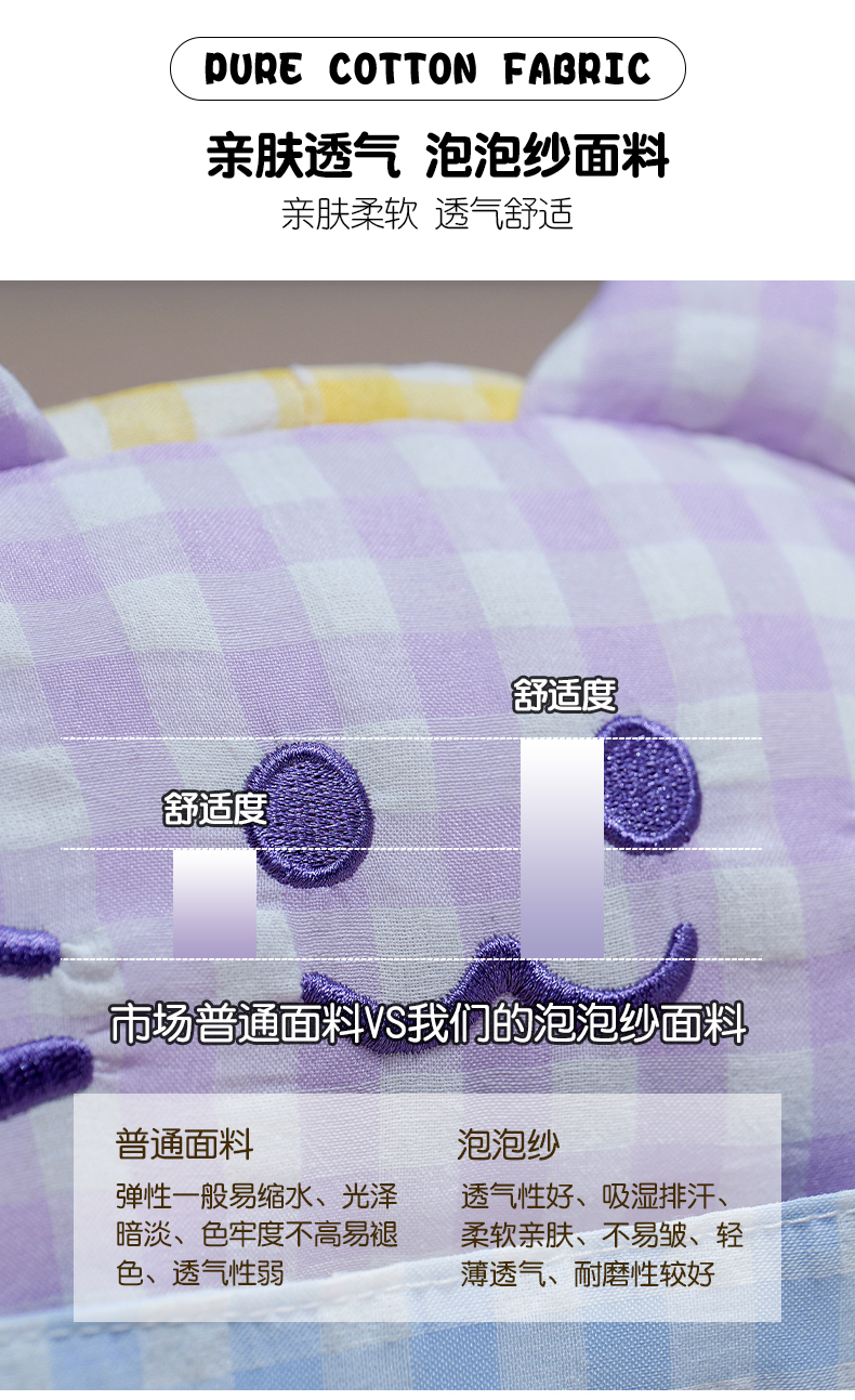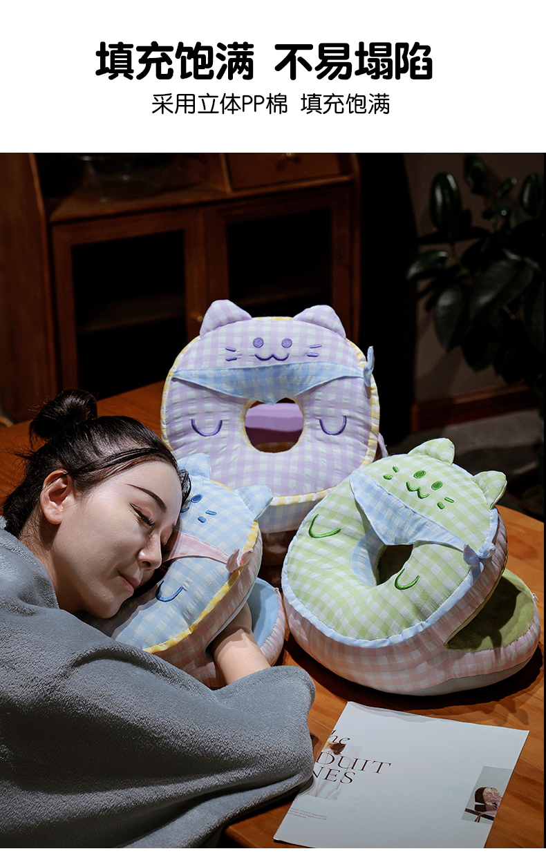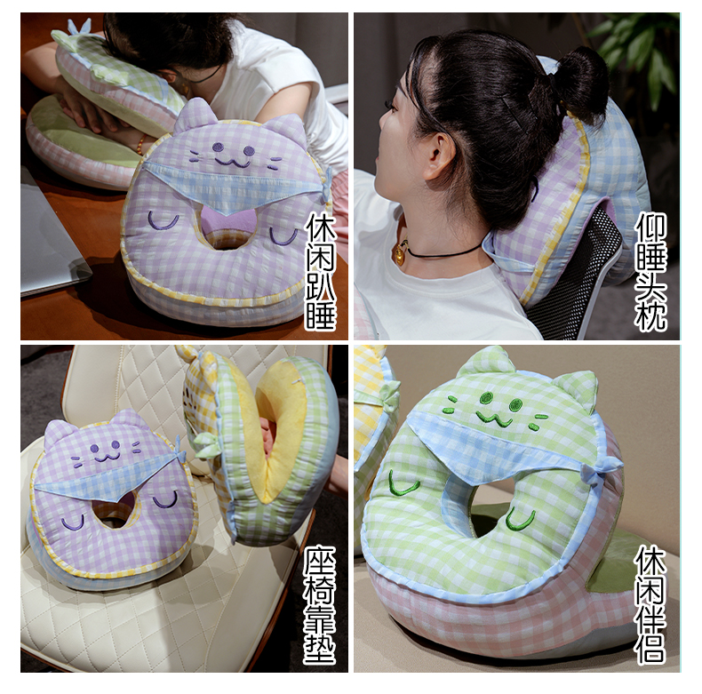 自然醒泡泡纱方巾格子喵双面午睡枕QYL