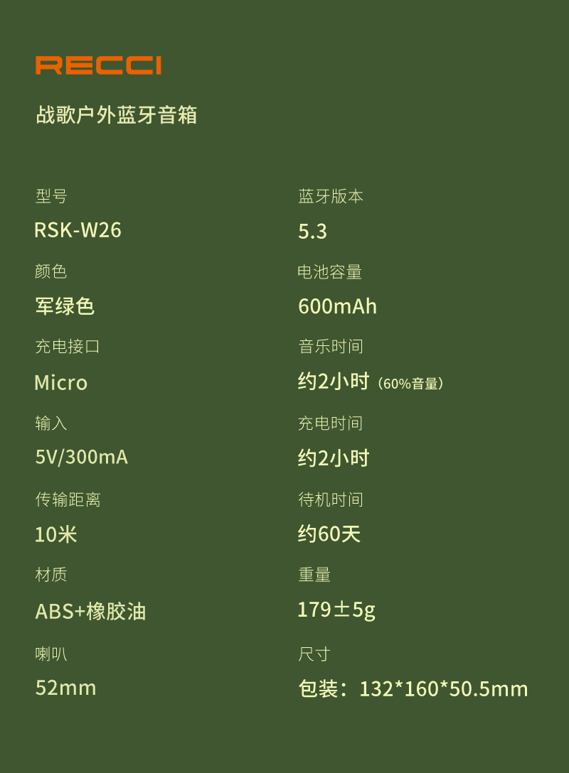 Recci锐思 战歌户外蓝牙音箱HI-FI音质 RSK-W26