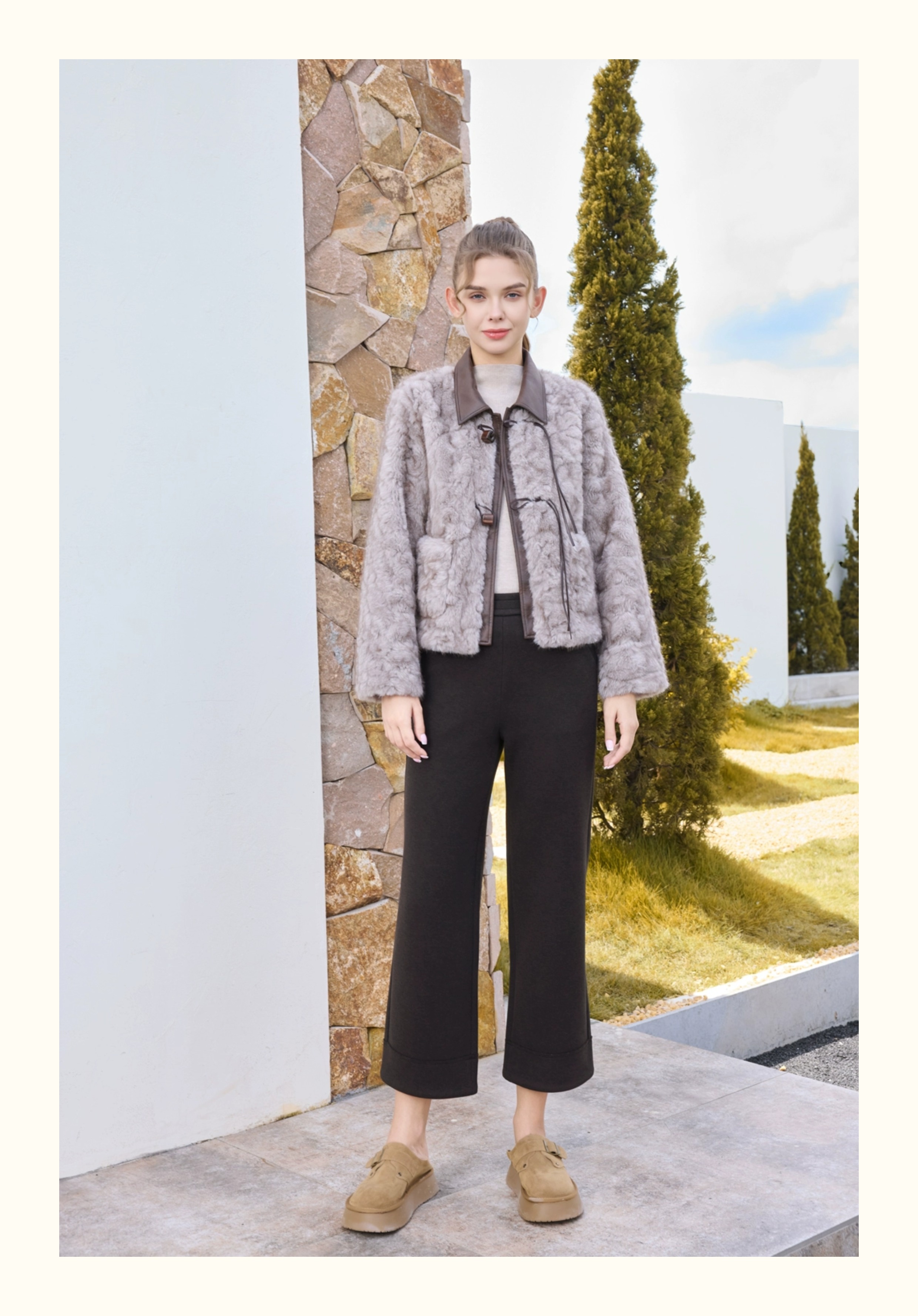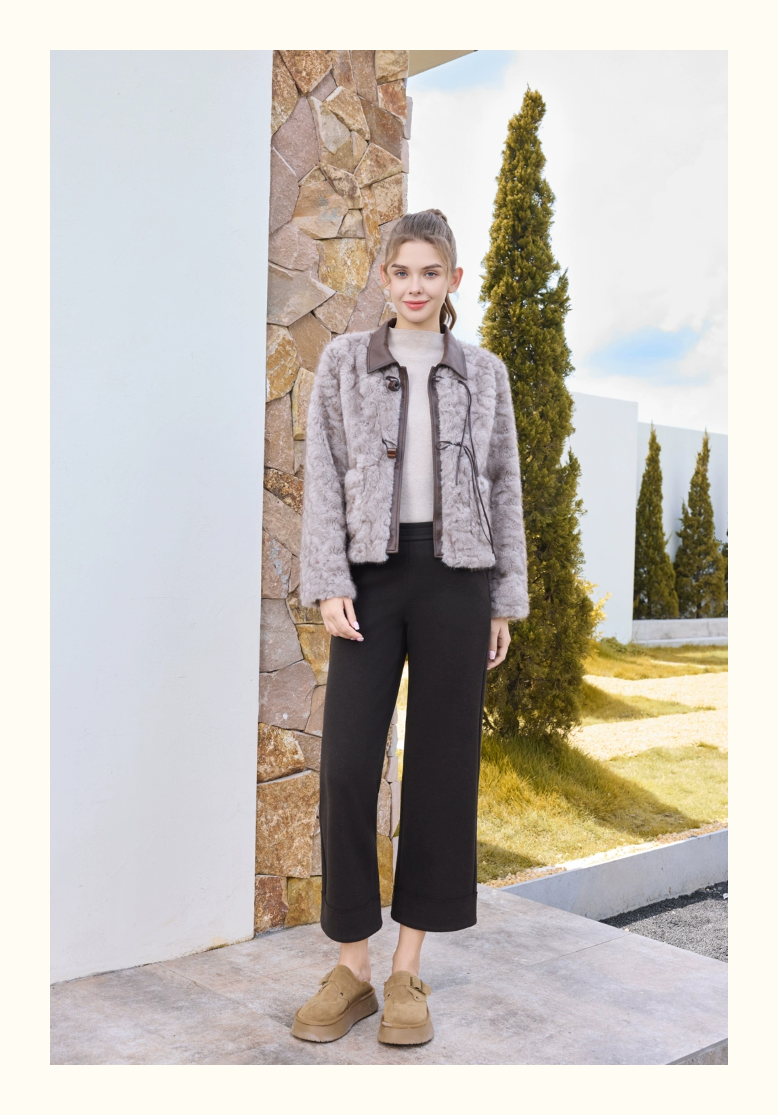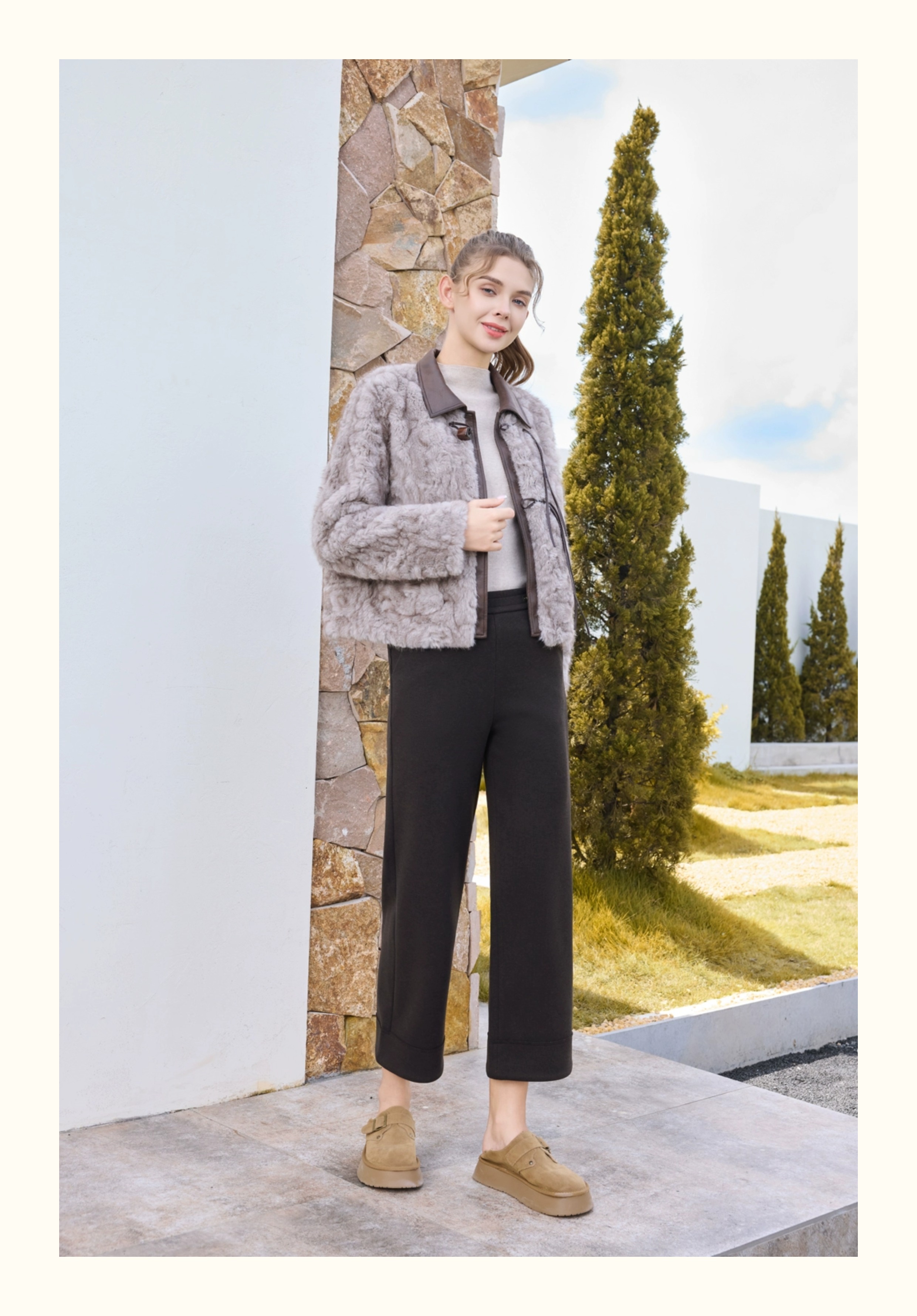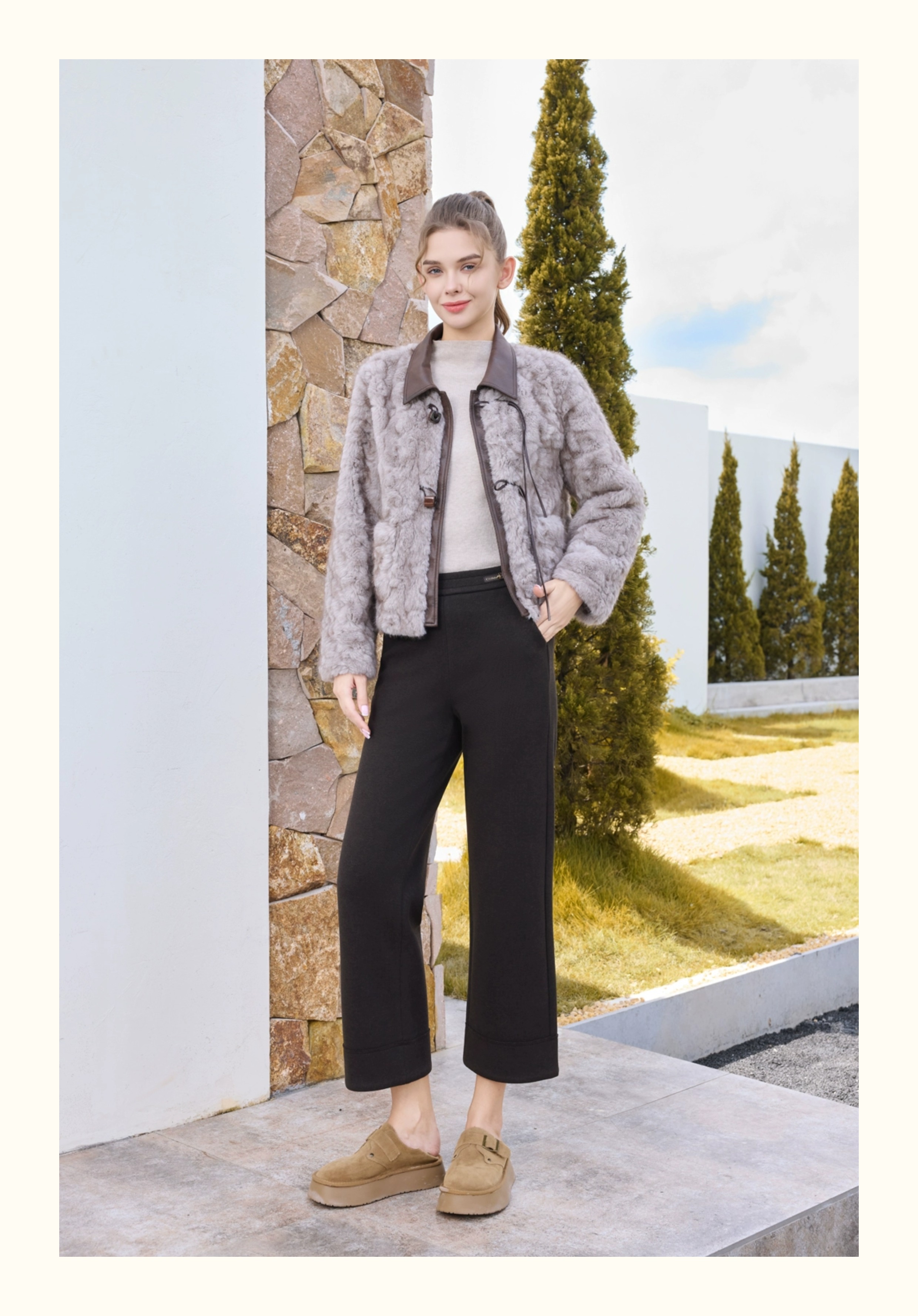 半身缘女裤 秋冬直筒宽松亲肤显高发热绒休闲裤254102U30320075