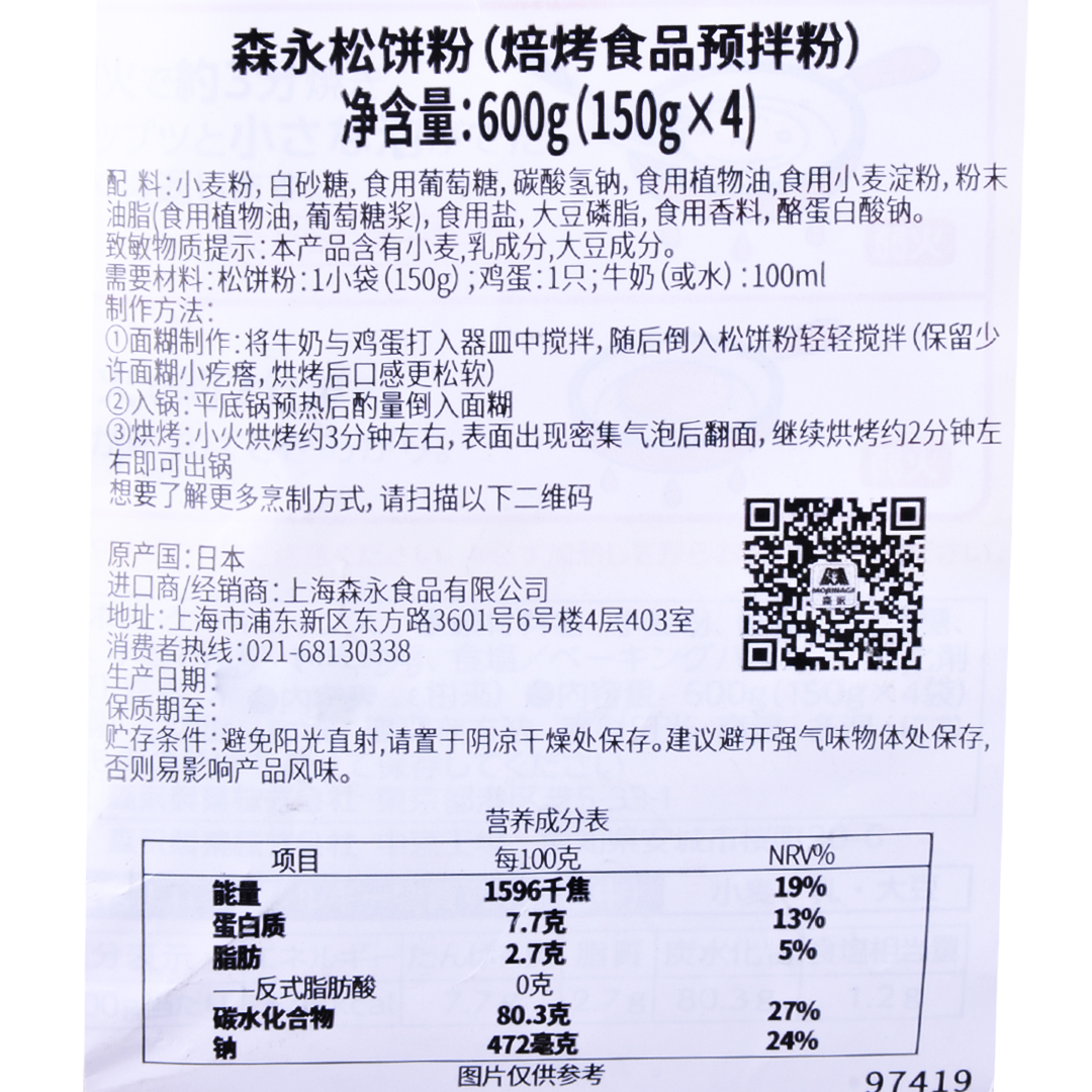 森永(Morinaga) 日本进口 松饼粉(烘烤食品预拌粉) 600g(150g*4)