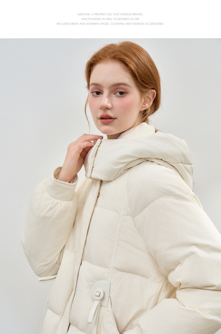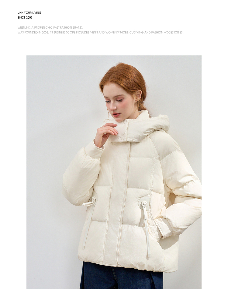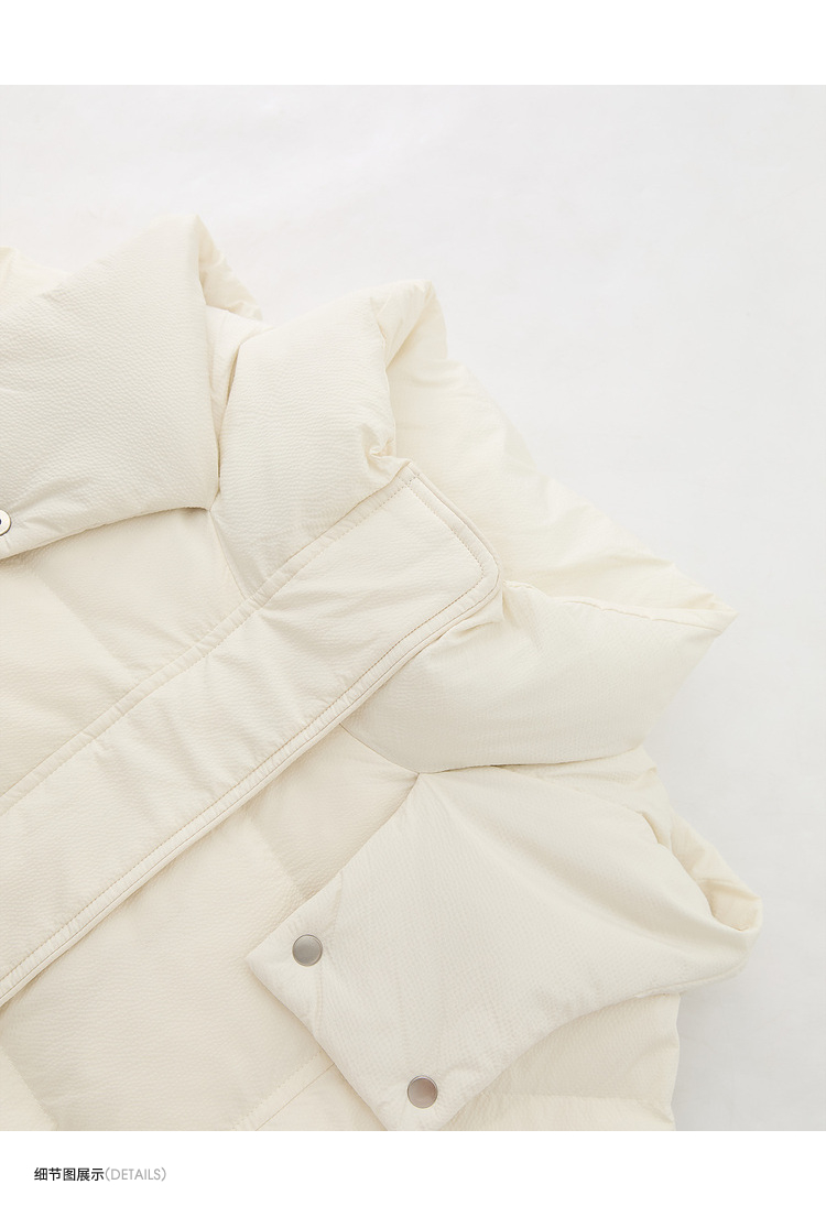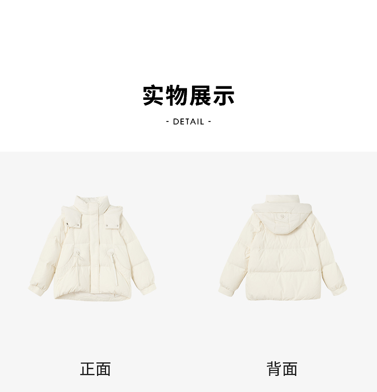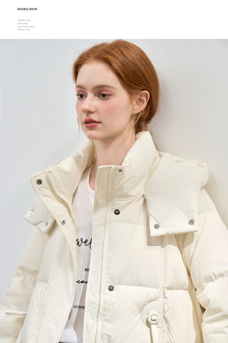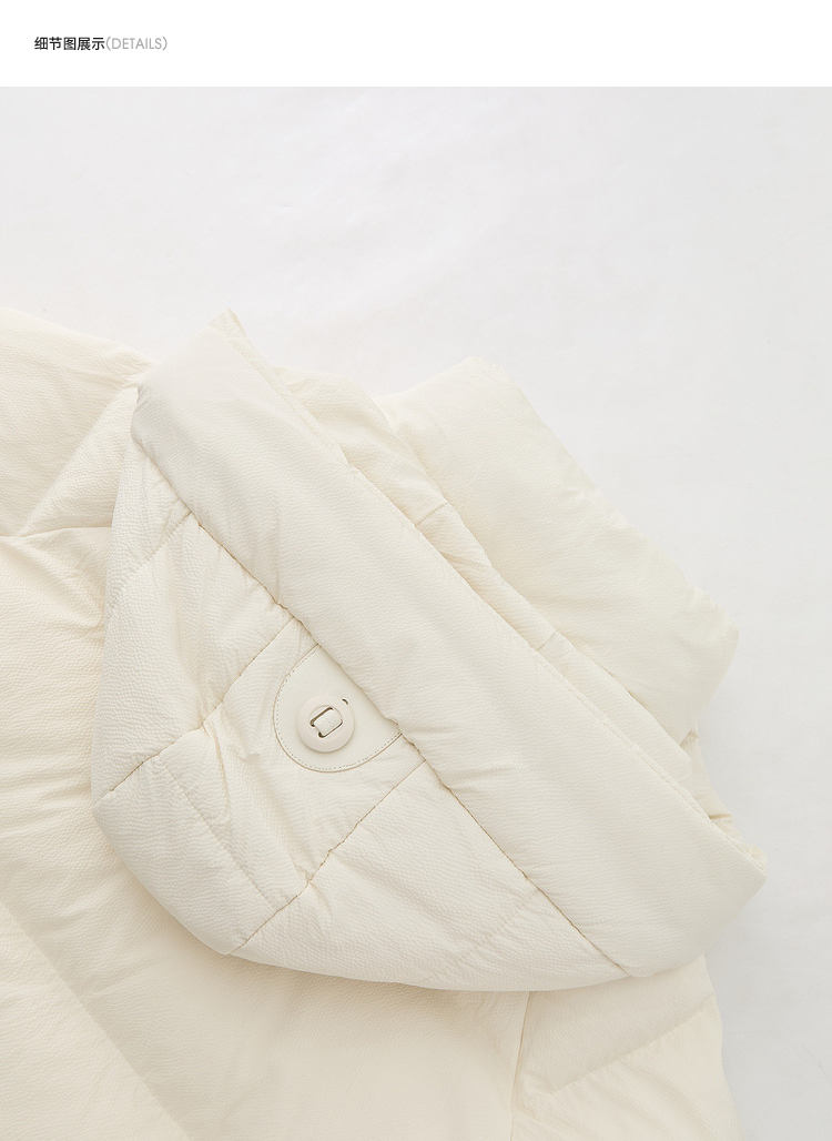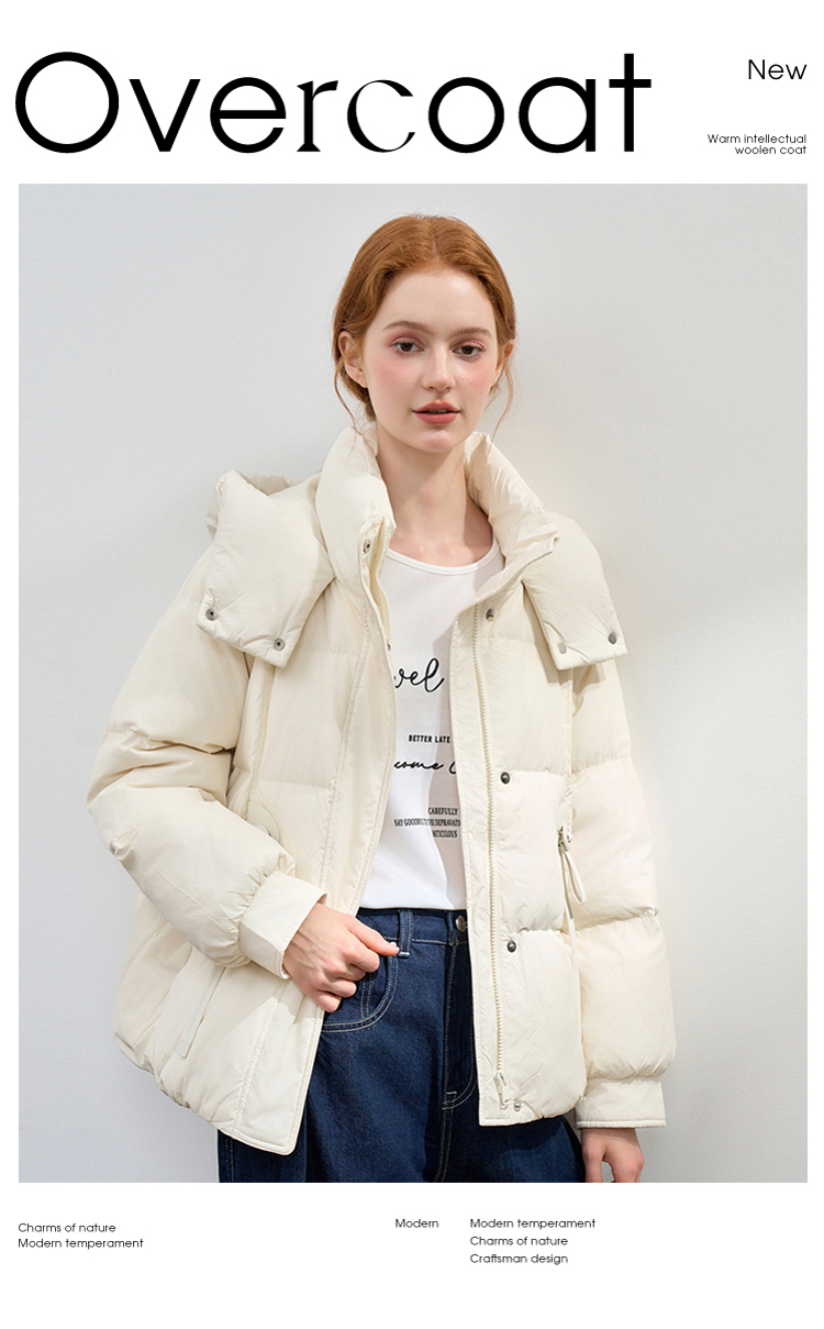 西遇杏色立领口袋鸭绒羽绒服女冬季新款时尚气质短款面包服M0043186