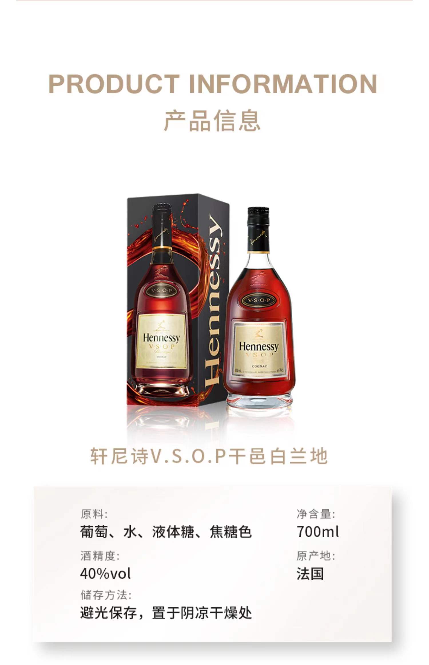 干邑白兰地轩尼诗VSOP 700ML