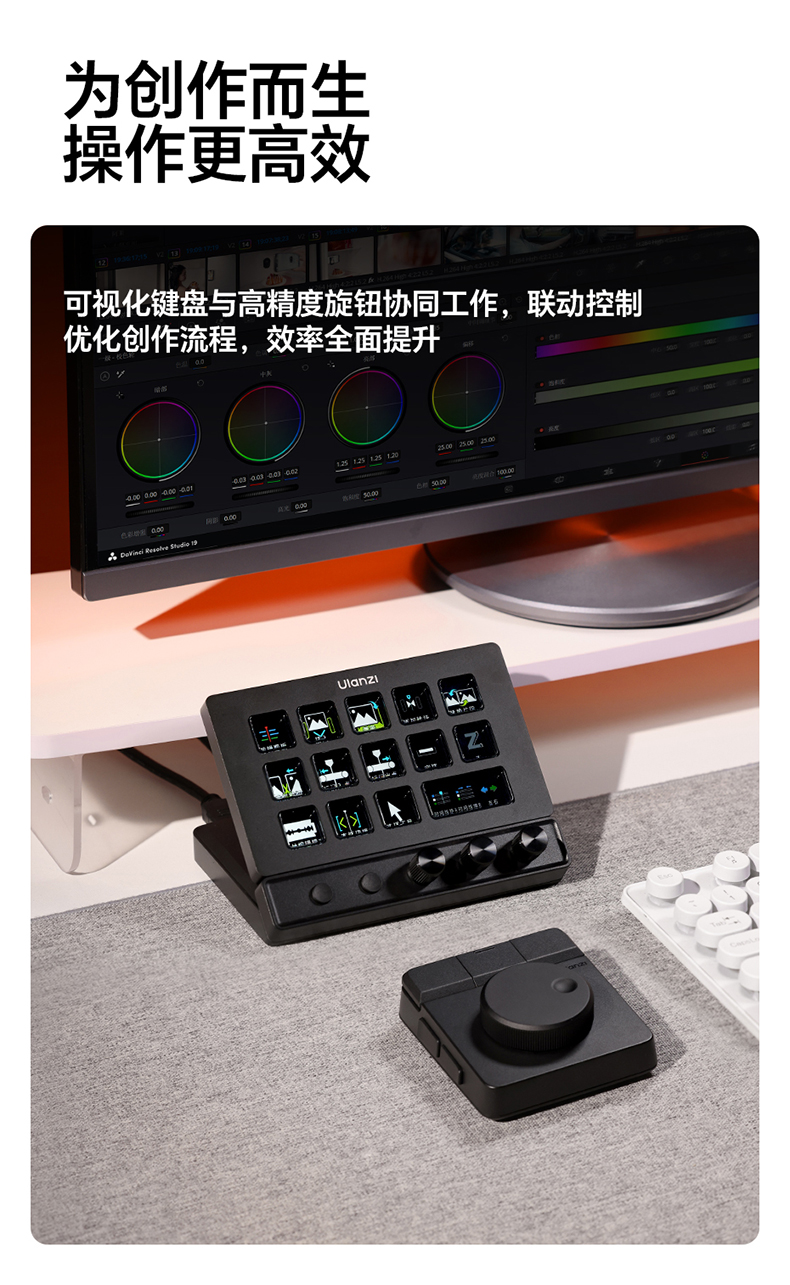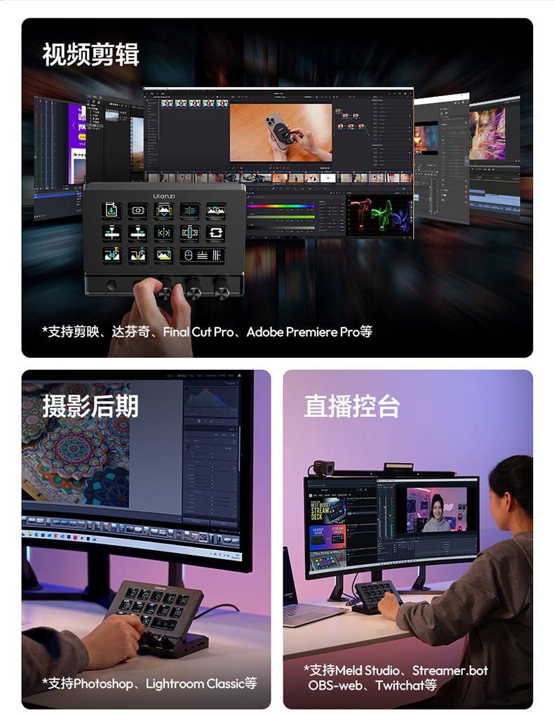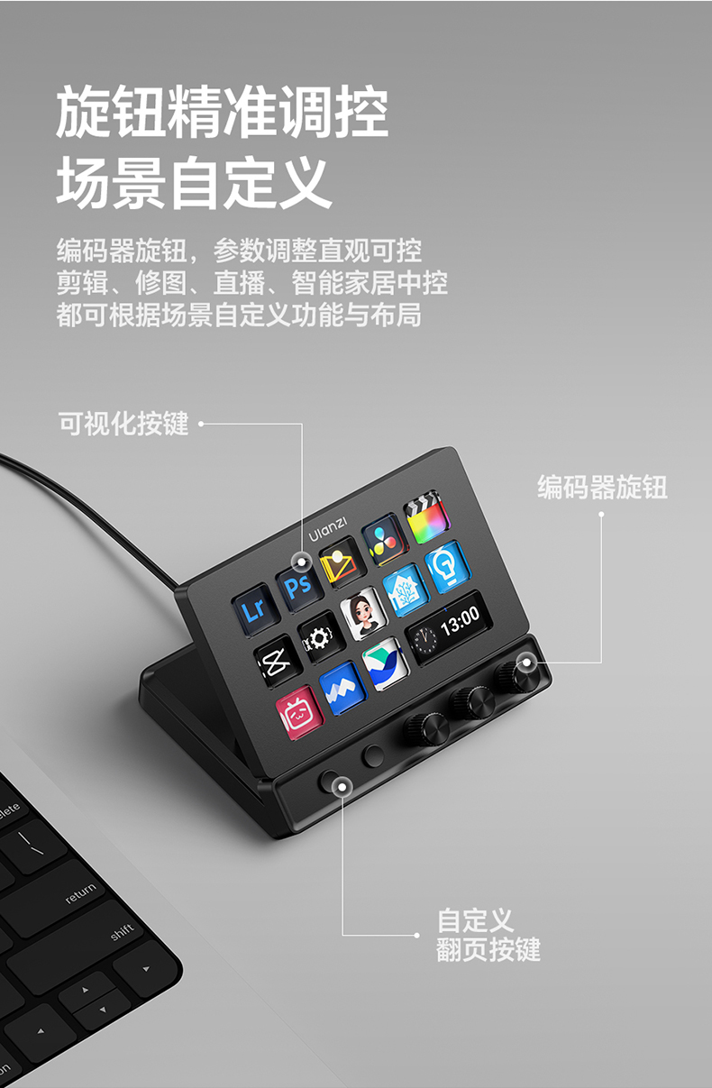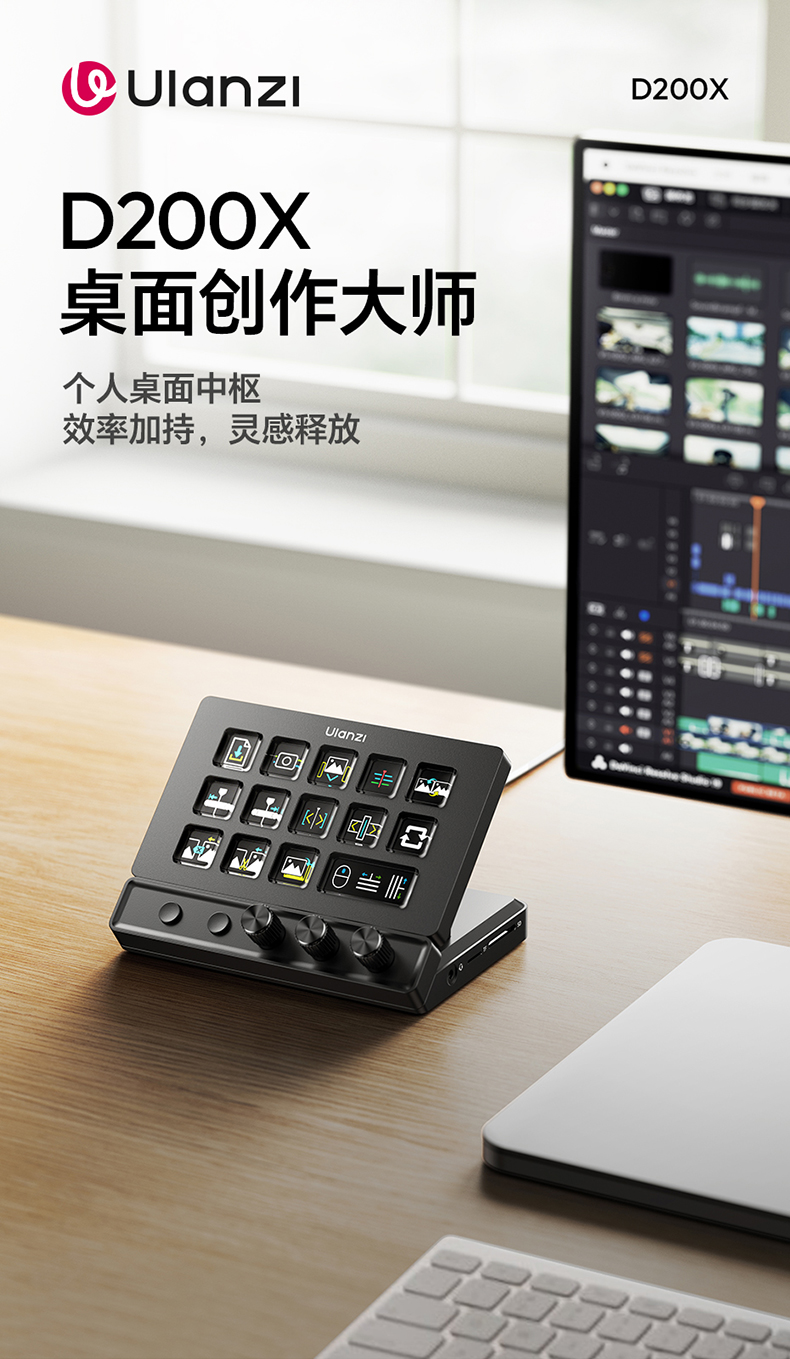 Ulanzi优篮子D200X自定义宏键盘StreamDeck桌面视频直播旋钮按键剪辑助手电脑游戏可编程快捷小键盘控制台