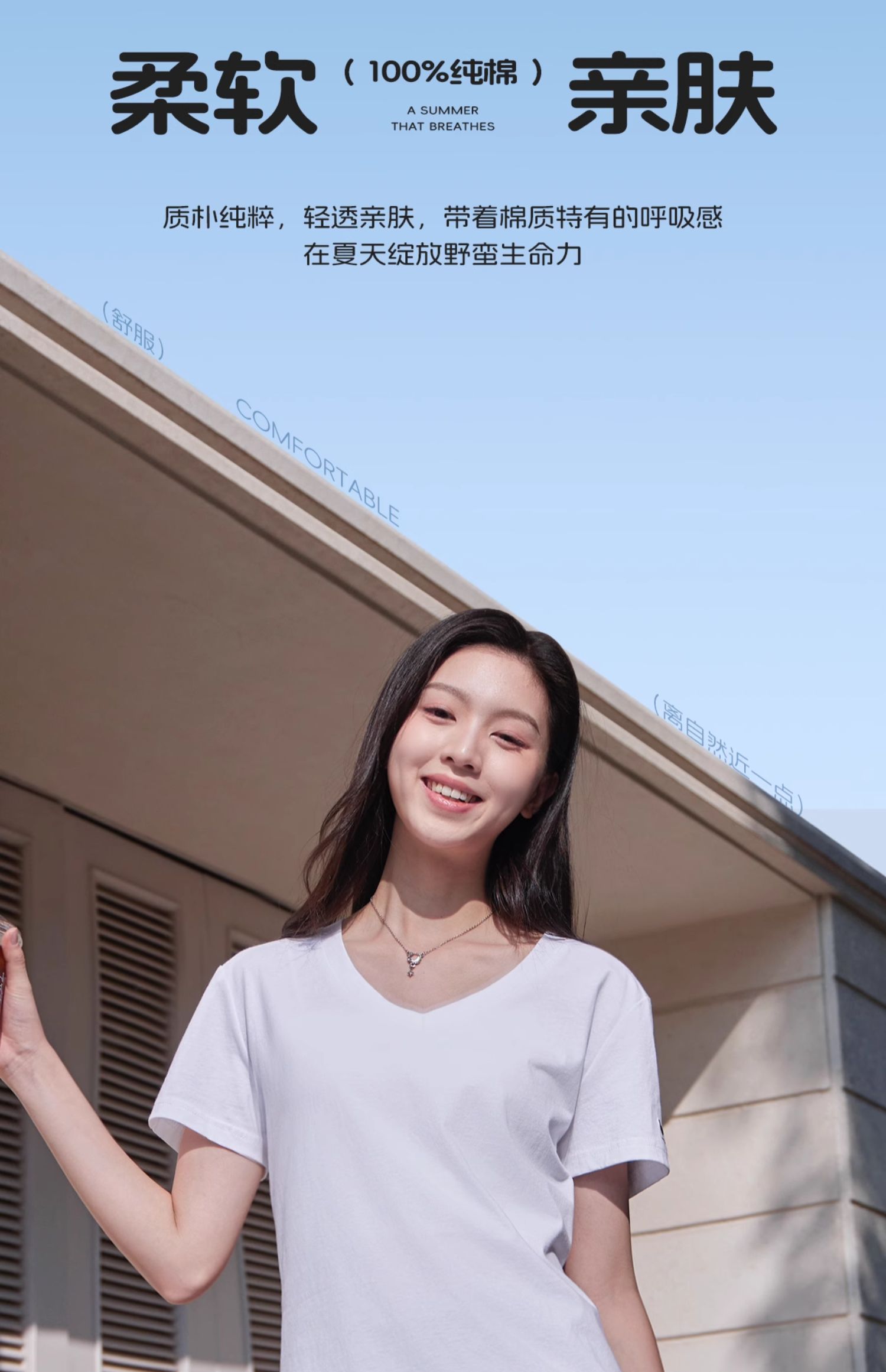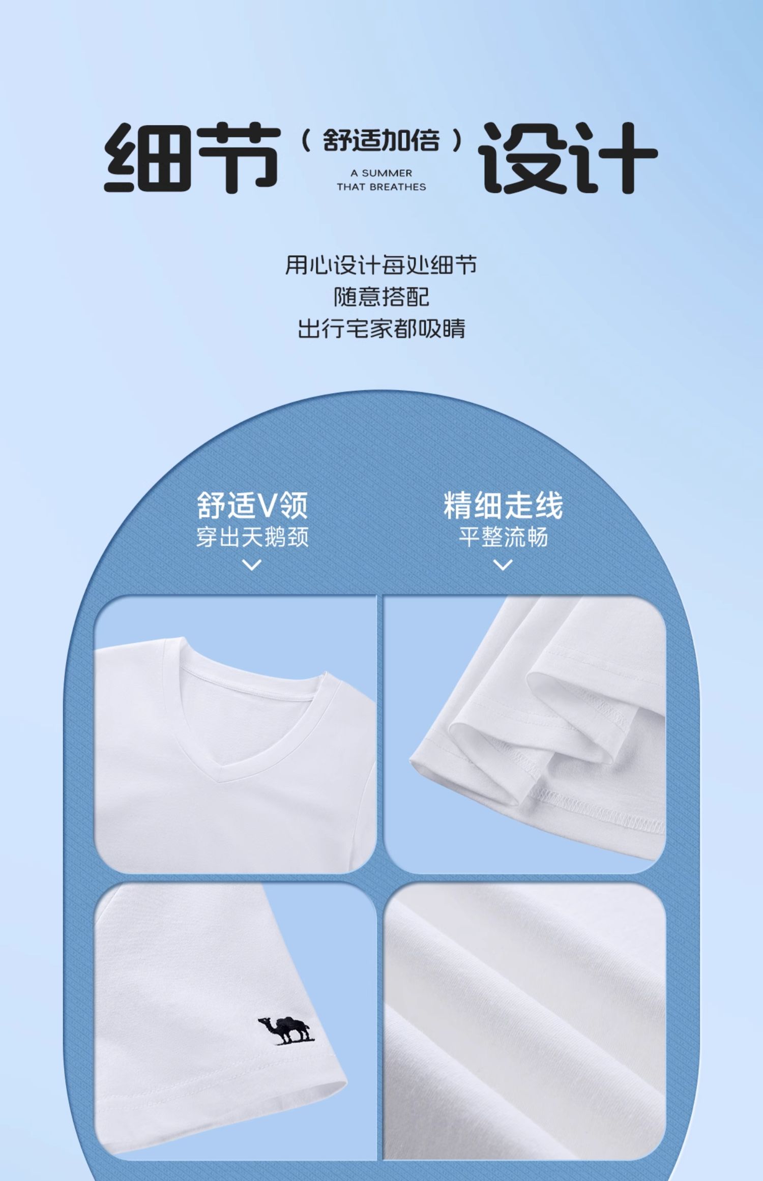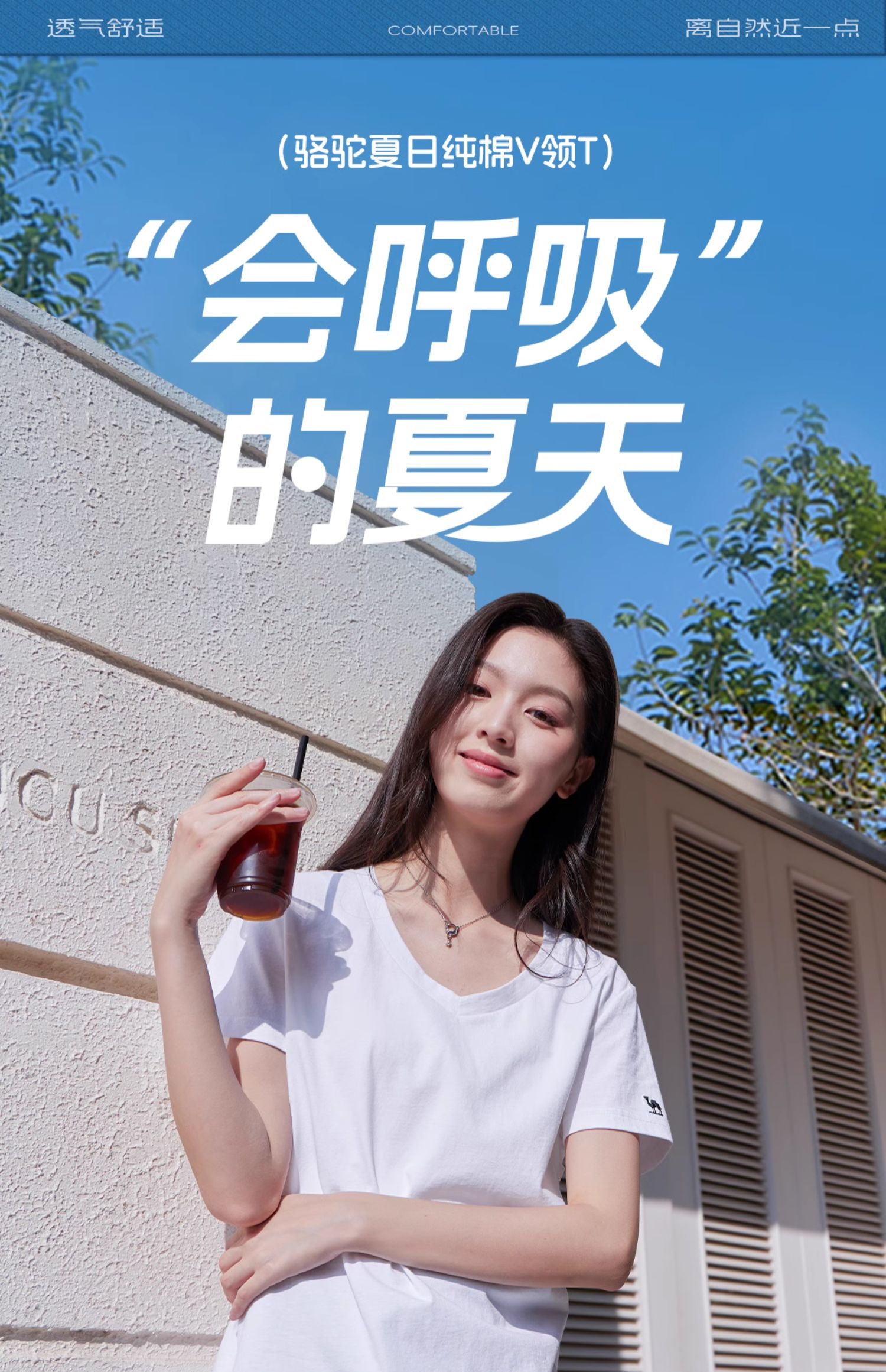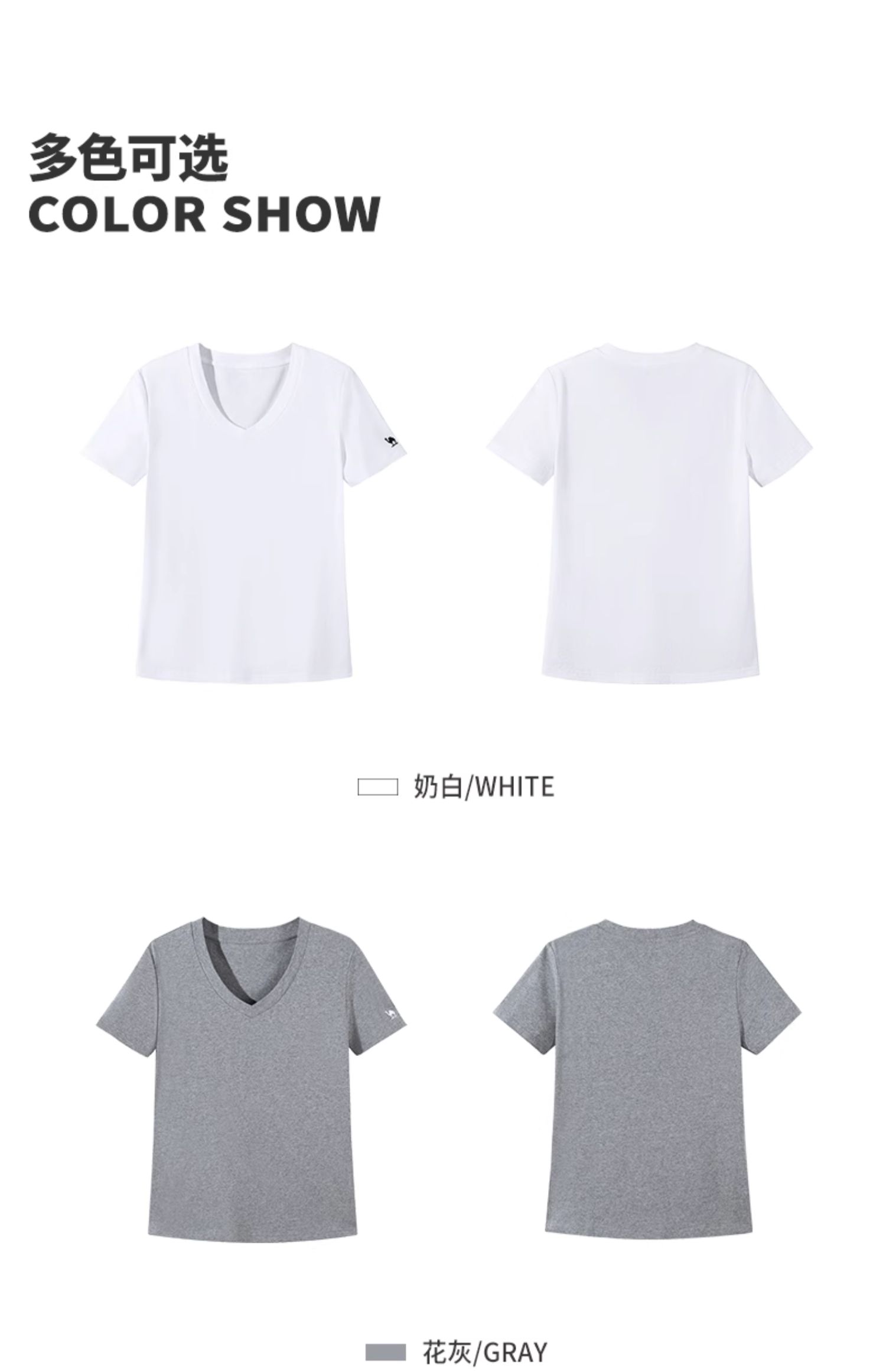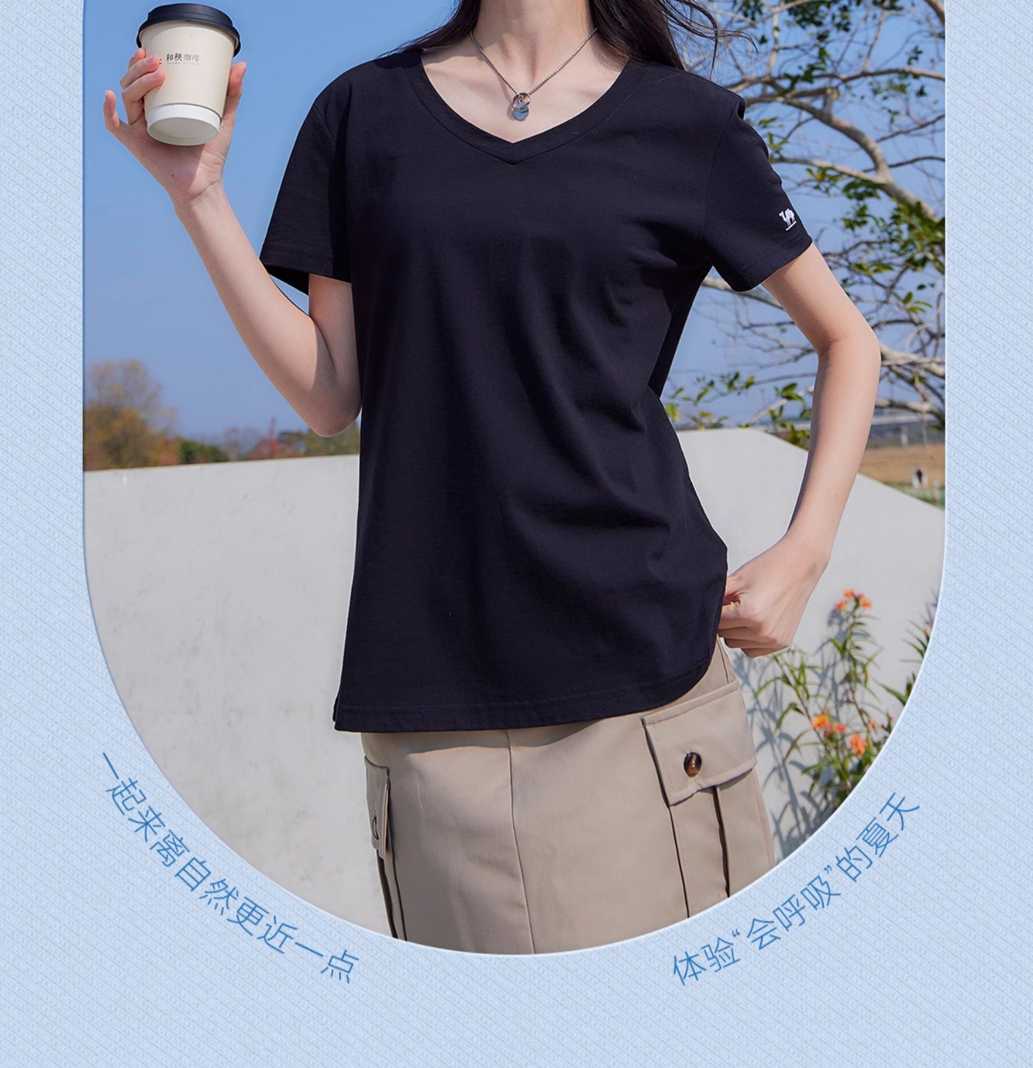 夏日骆驼短袖t恤女白色2025新款打底衫辣妹慵懒风V领纯棉运动上衣 C25BAV6034
