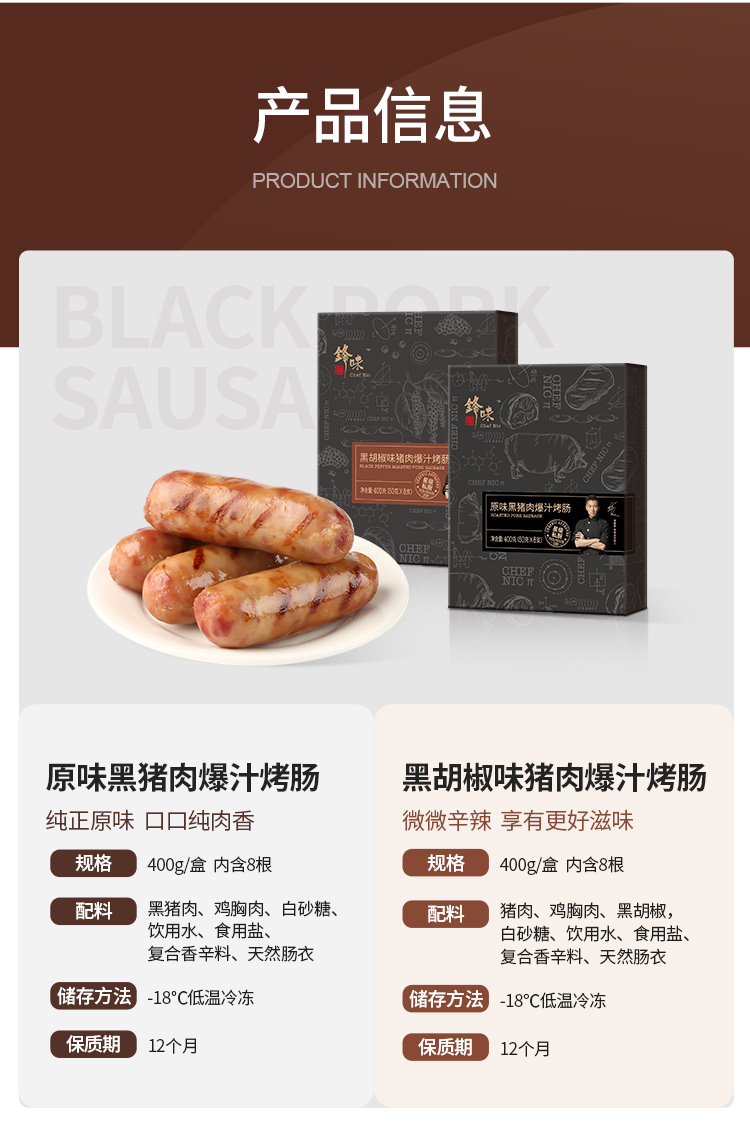 精选猪后腿部分精瘦肉 鲜肉制作 | 锋味派火山石烤肠 口感柔嫩 肉质饱满 久嚼无渣 4盒装 [福利品]