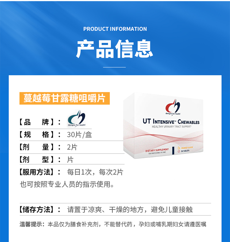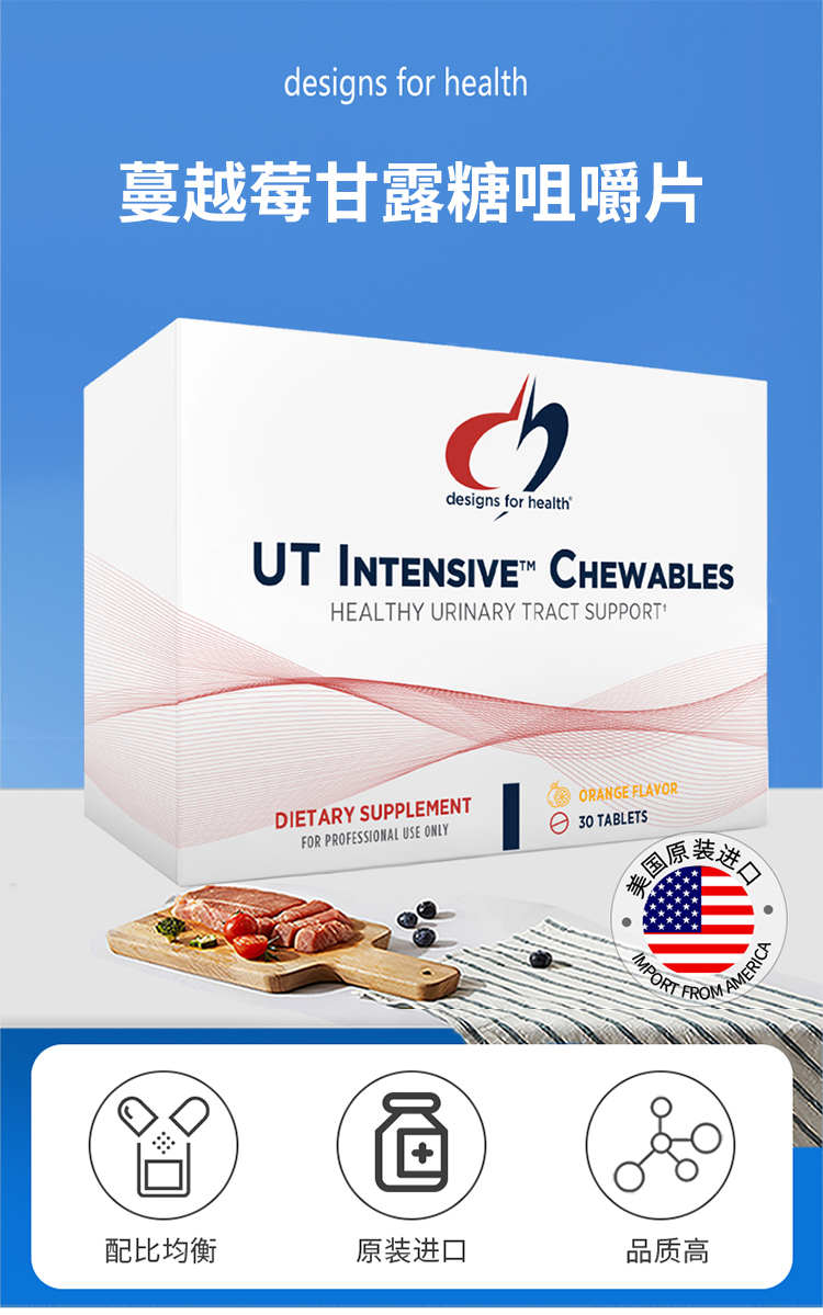 【效期至26年5月】蔓越莓甘露糖咀嚼片 design for health UT Intensive™ chewables 30片/盒