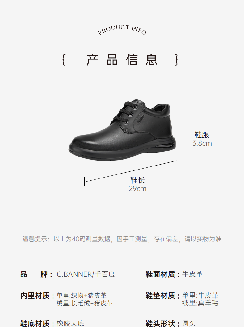 千百度男鞋秋季皮鞋男士真皮商务正装休闲加厚保暖舒适A23503113