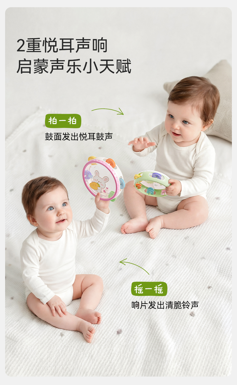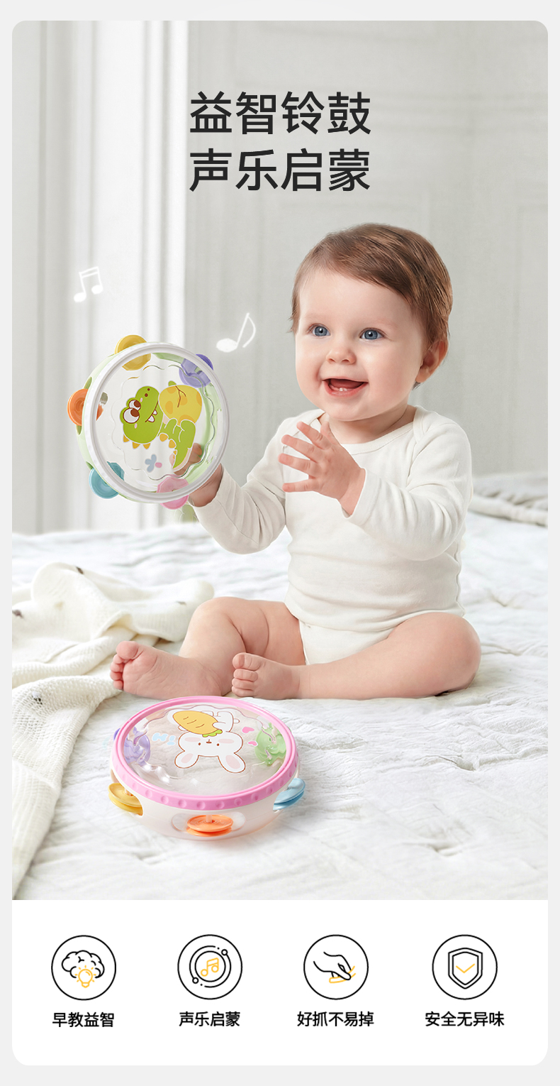 【安抚玩乐】嫚熙儿童玩具手拍鼓婴儿打击乐器宝宝铃鼓益智早教6个月手摇铃1岁