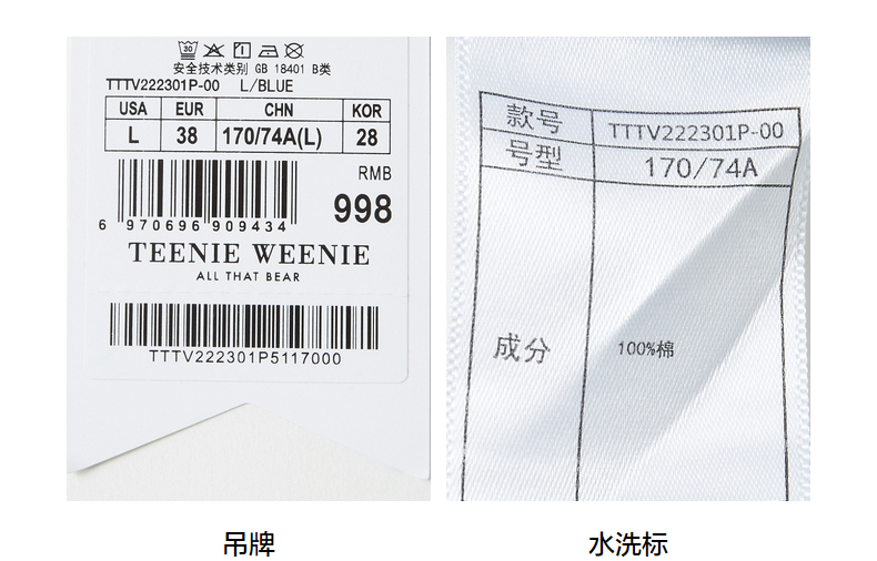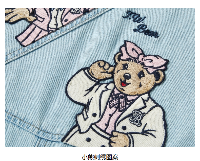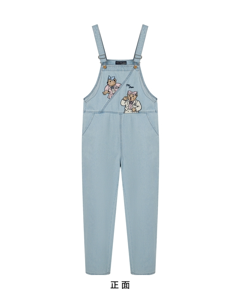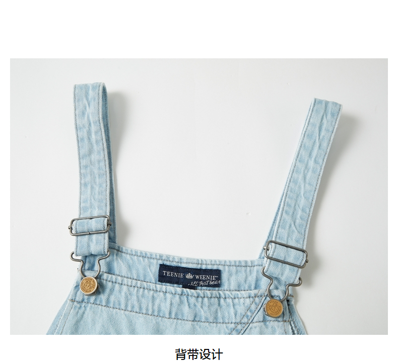 TeenieWeenie小熊2022春季新款女装宽松显瘦卡通刺绣牛仔裤背带裤TTTV222301P