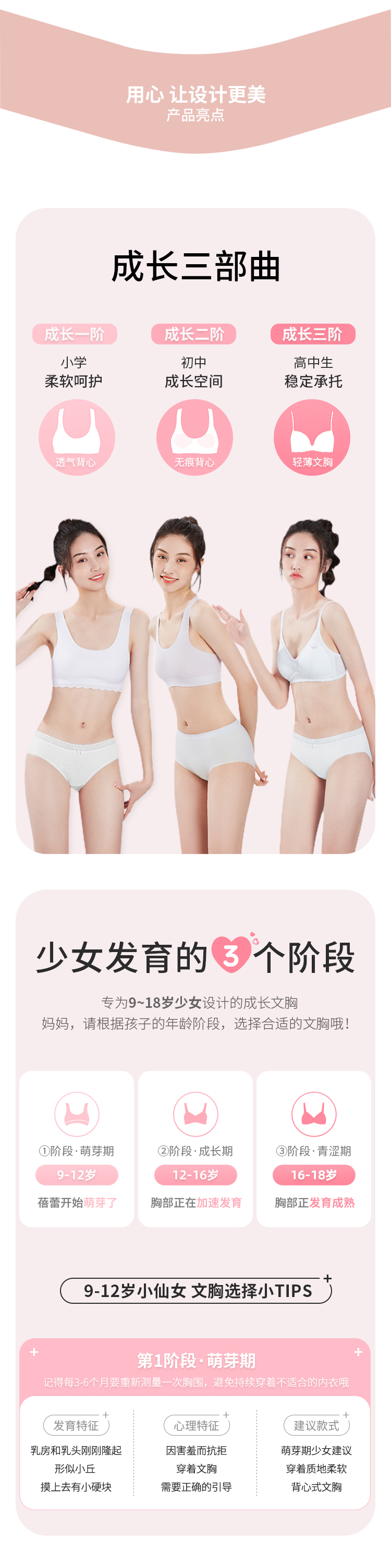 都市丽人少女三步优选成长一阶无尺码内衣提花超薄夹棉杯少女文胸无排扣无钢圈BB26A3