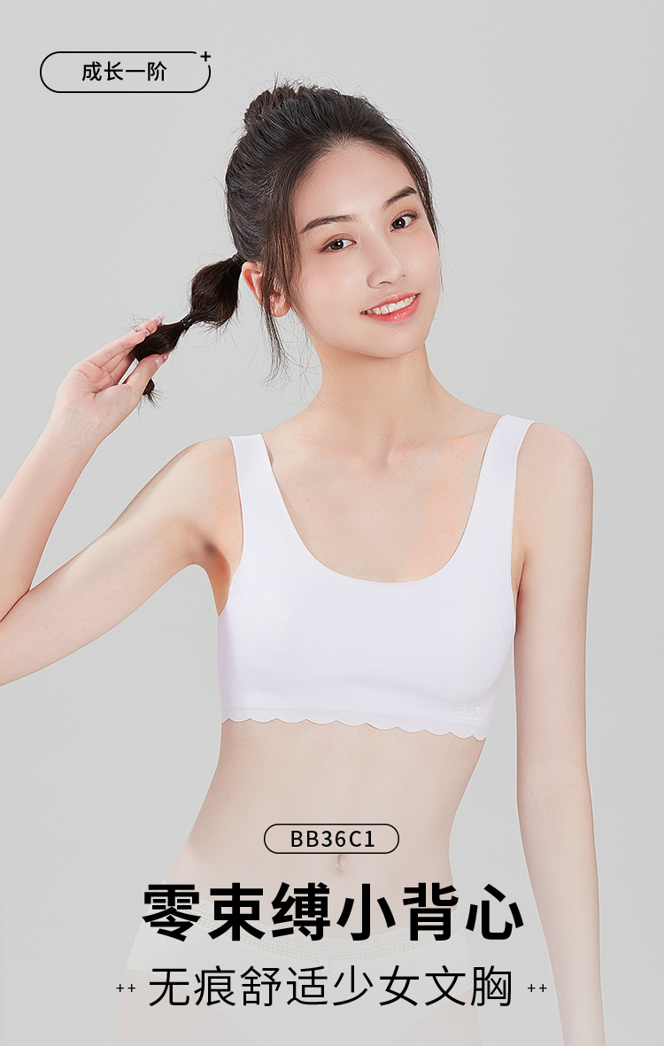 都市丽人少女三步优选内衣无尺码超薄背心式泳布文胸无排扣无钢圈BB36C1