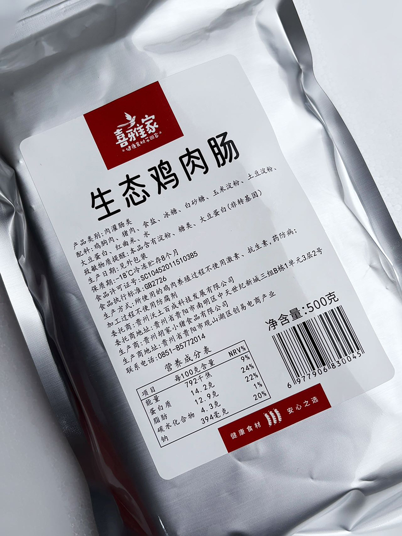 喜雅家生态鸡肉肠,生态原材料加工制作,无添加,无防腐剂;5节/1斤;顺丰发货