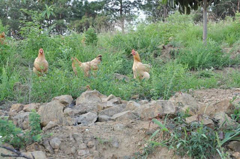土鸡散养为主,添加补发补饲品,全部补饲品可溯源: