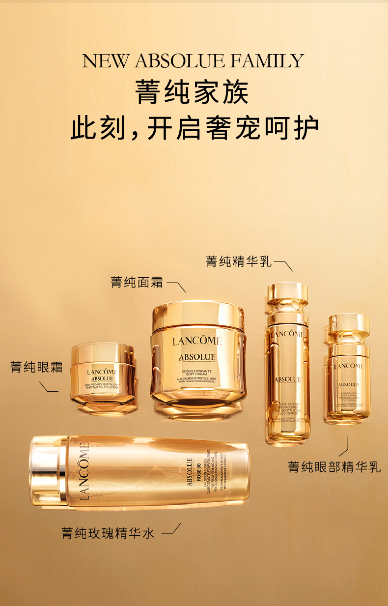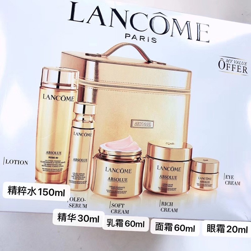 兰蔻Lancome菁纯臻颜五件套 (玫瑰精萃水150ML+精华乳30ML+眼霜20ML+乳霜60ML+面霜60ML)