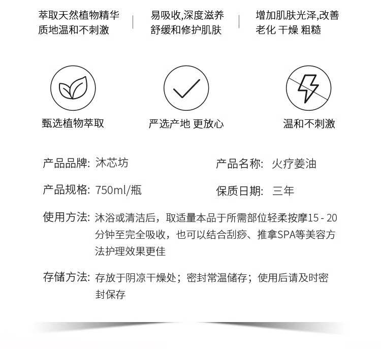 老姜油火疗发热生姜精油身体按摩油通经络全身开背推拿推背刮痧油