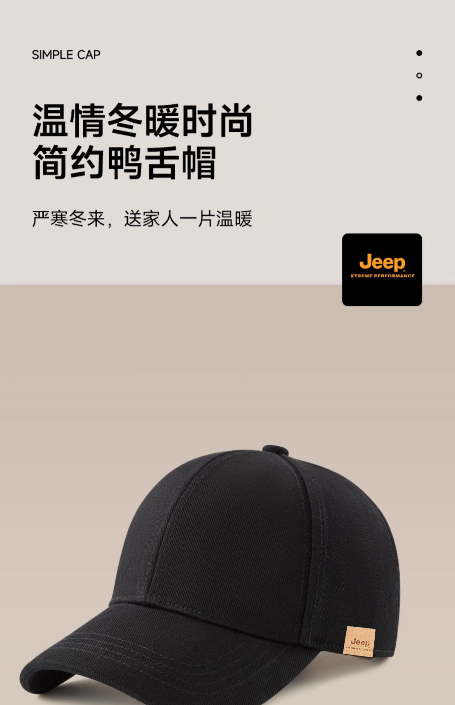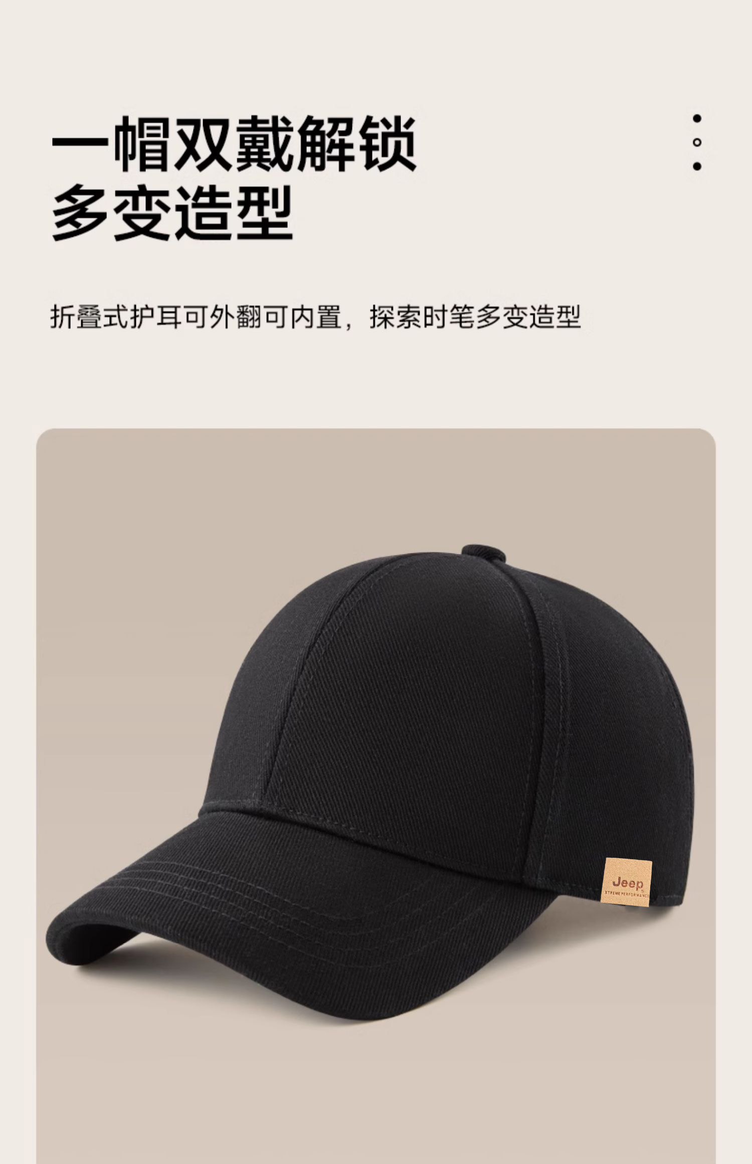 JEEP新款科技御寒鸭舌帽春秋简约舒适加大深折叠式护耳棒球帽