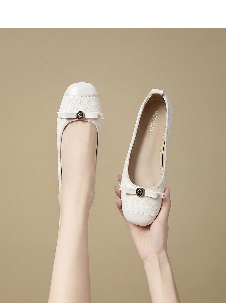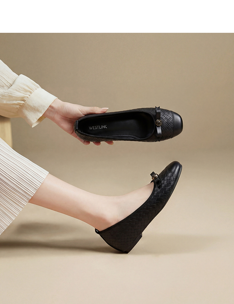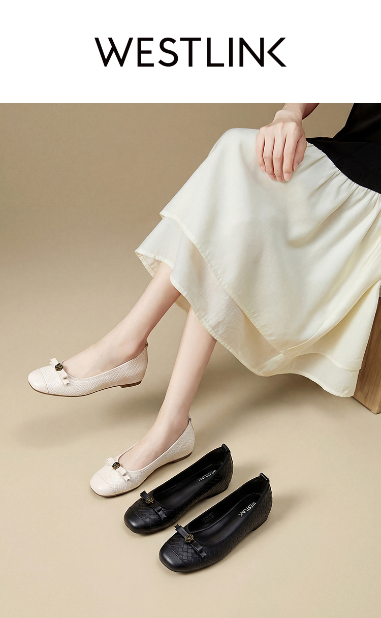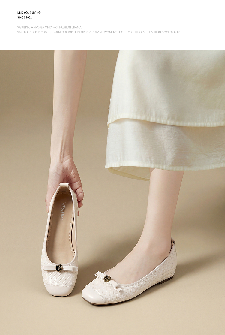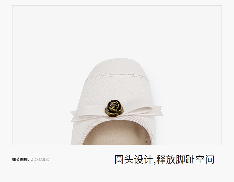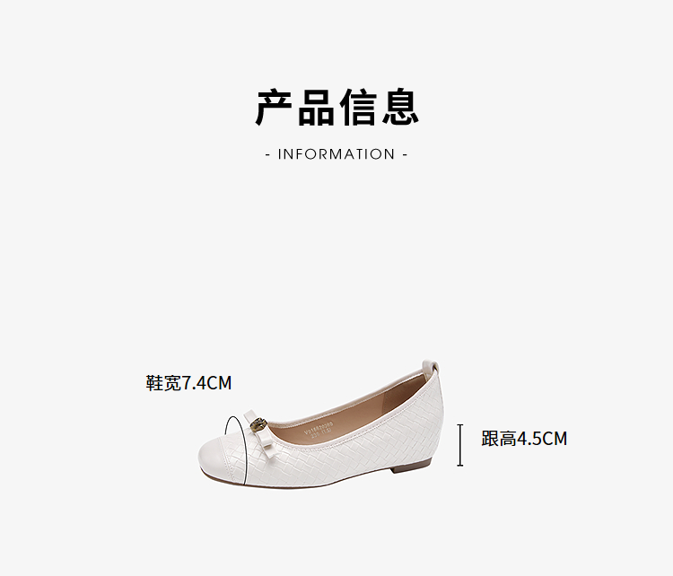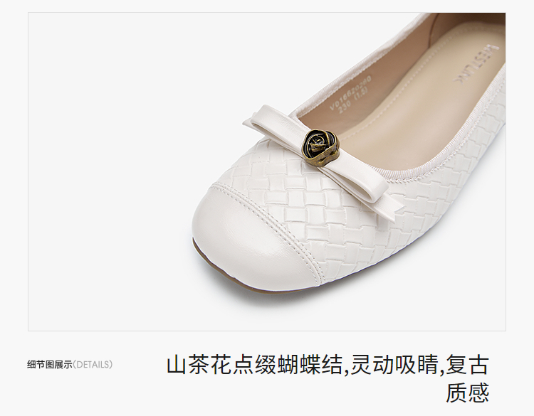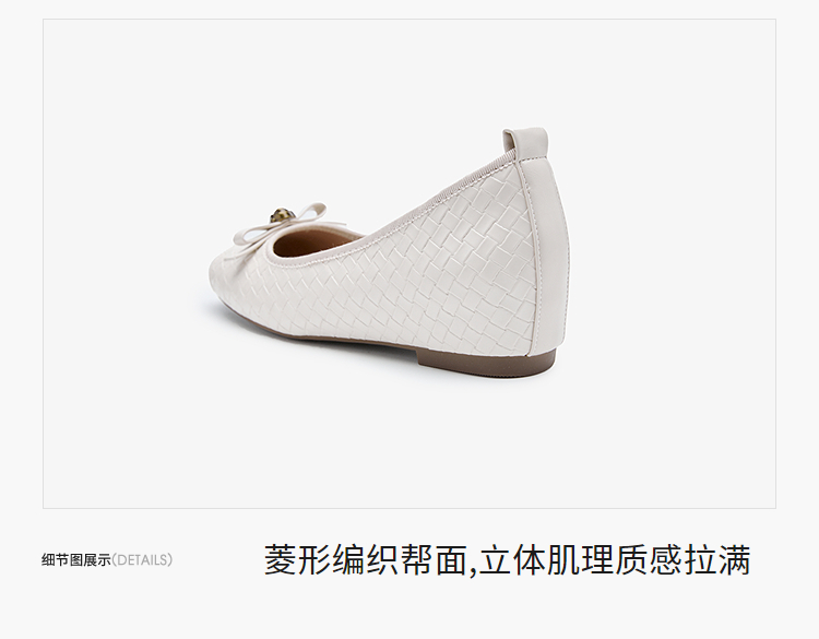 【限时秒杀】西遇内增高单鞋女鞋2026新款春季浅口山茶花点缀蝴蝶结编织小皮鞋V0166280