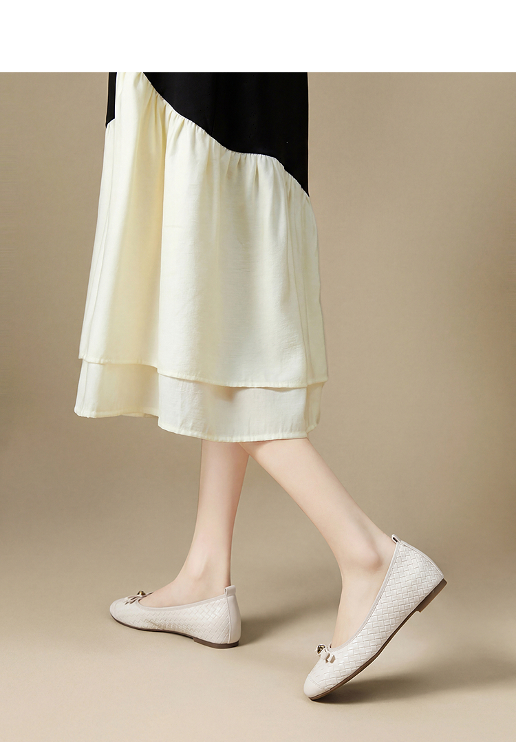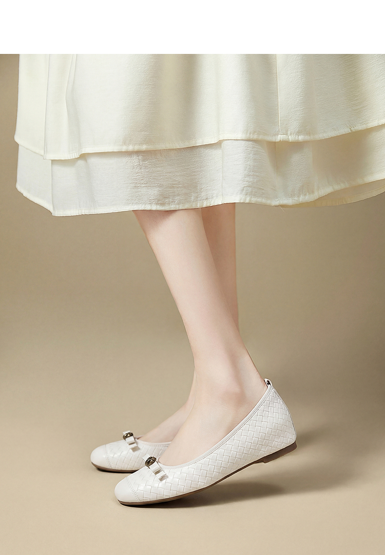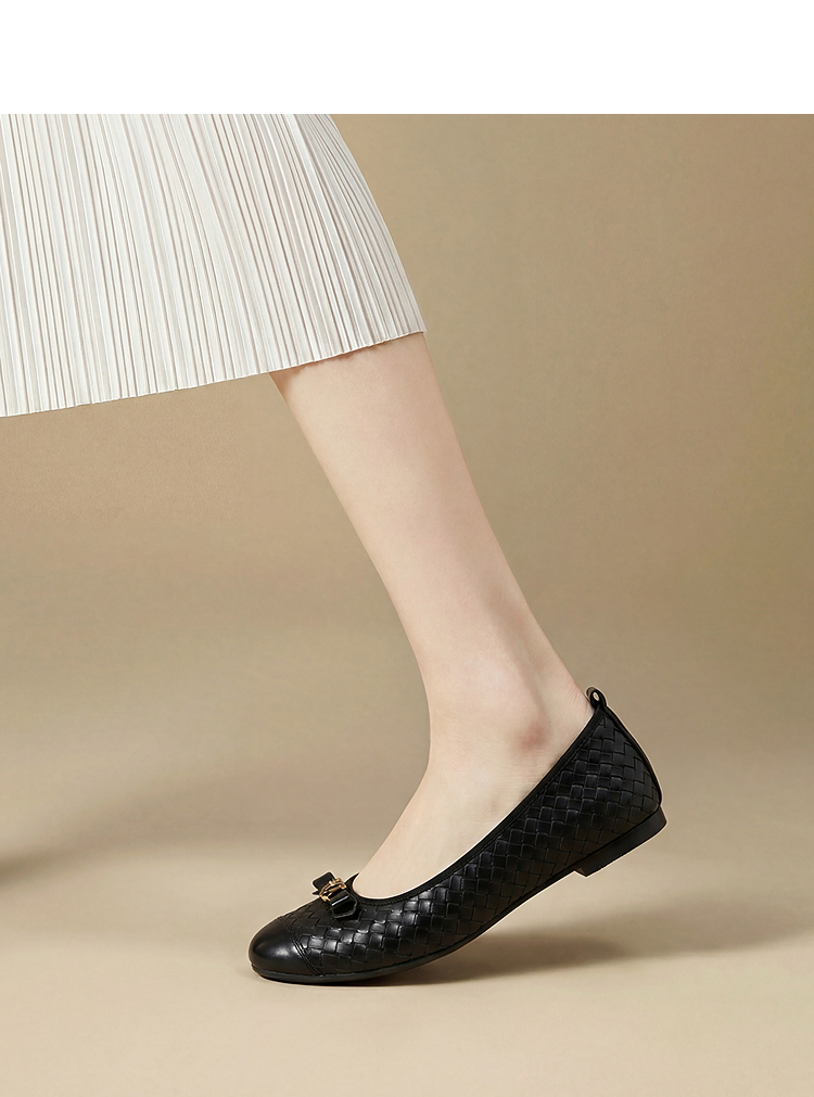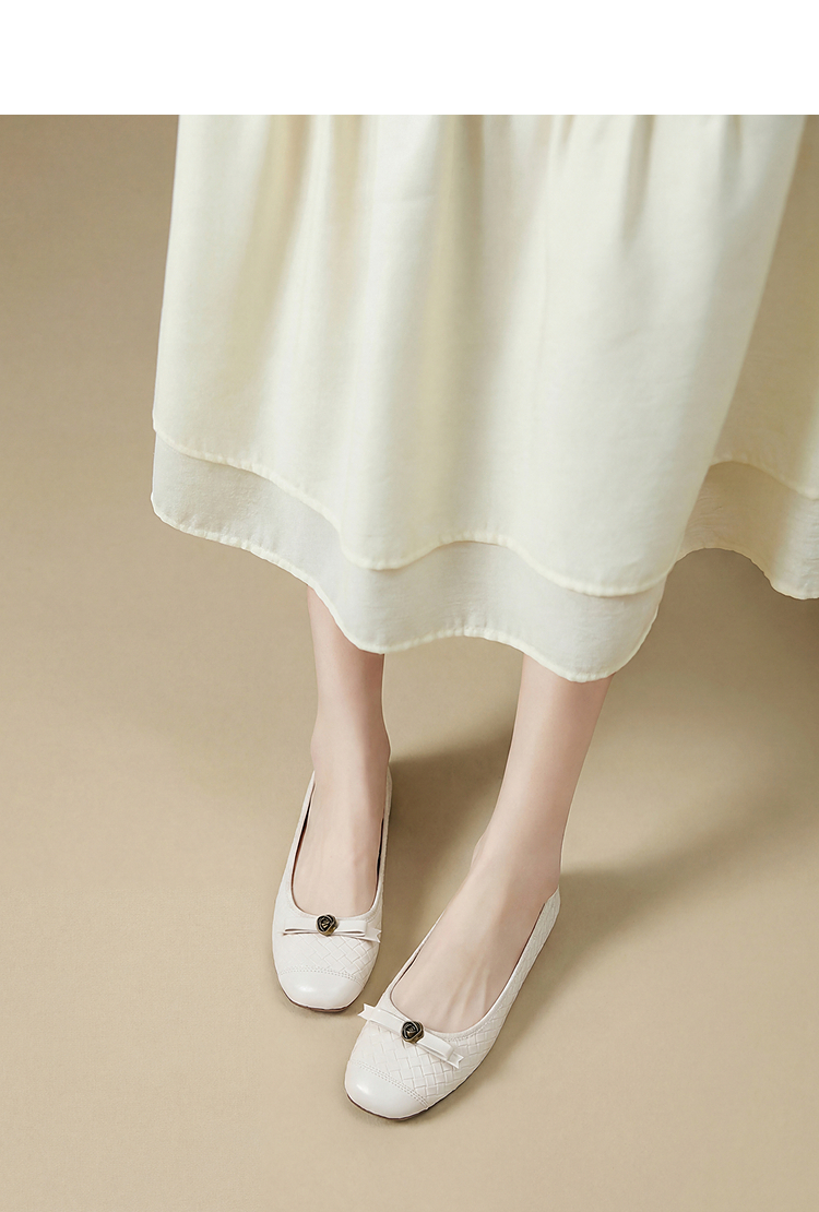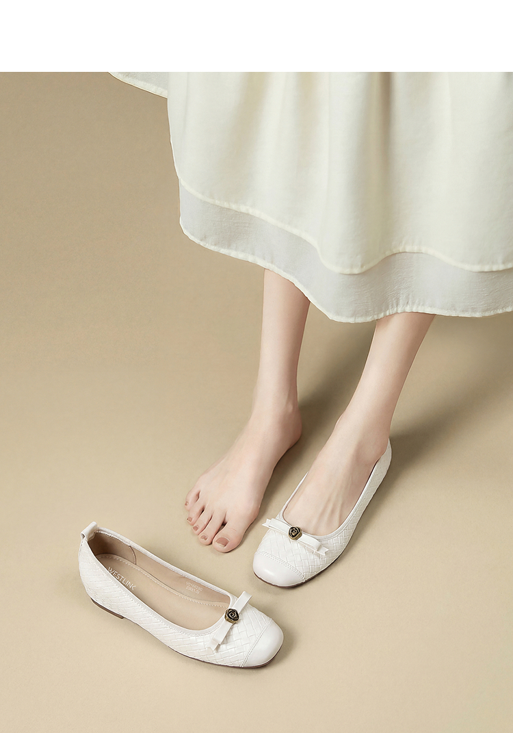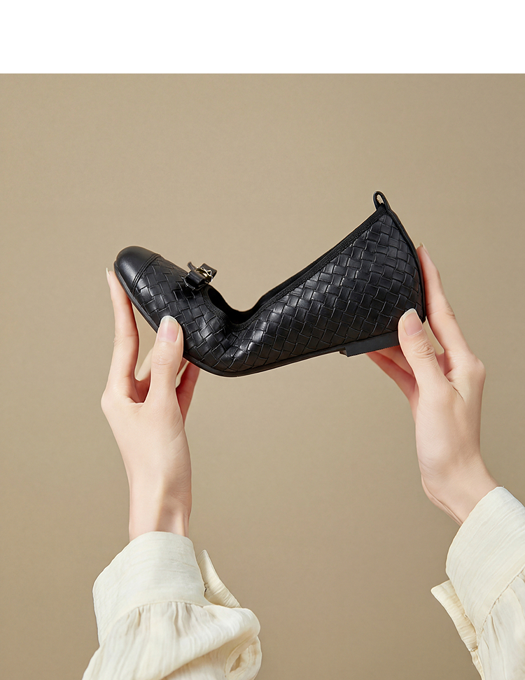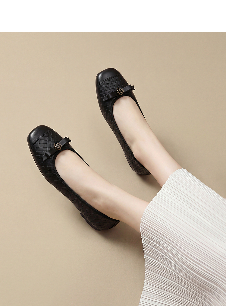 【限时秒杀】西遇内增高单鞋女鞋2026新款春季浅口山茶花点缀蝴蝶结编织小皮鞋V0166280