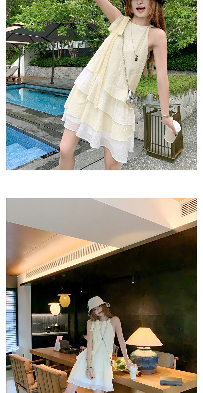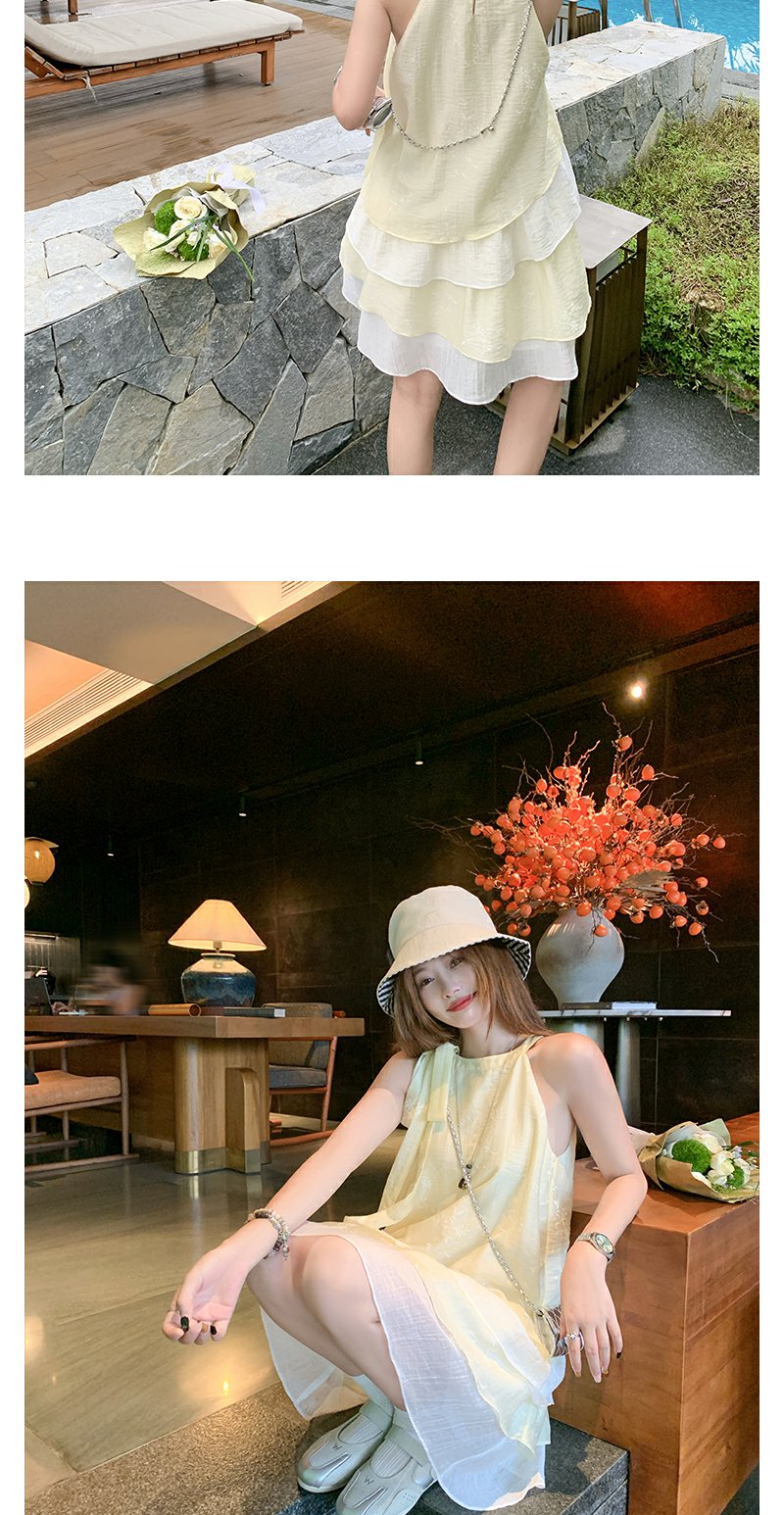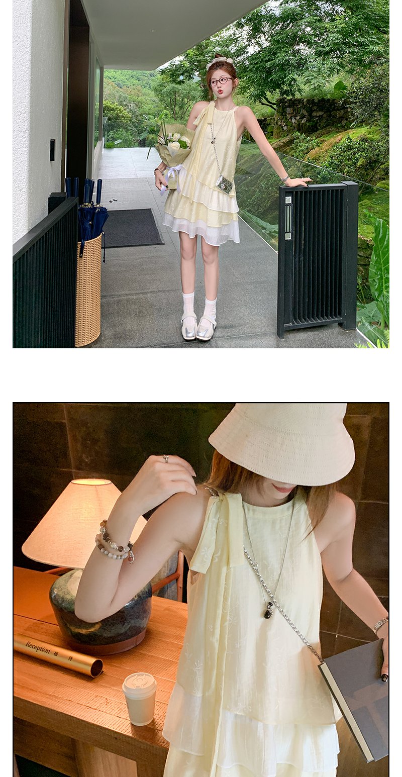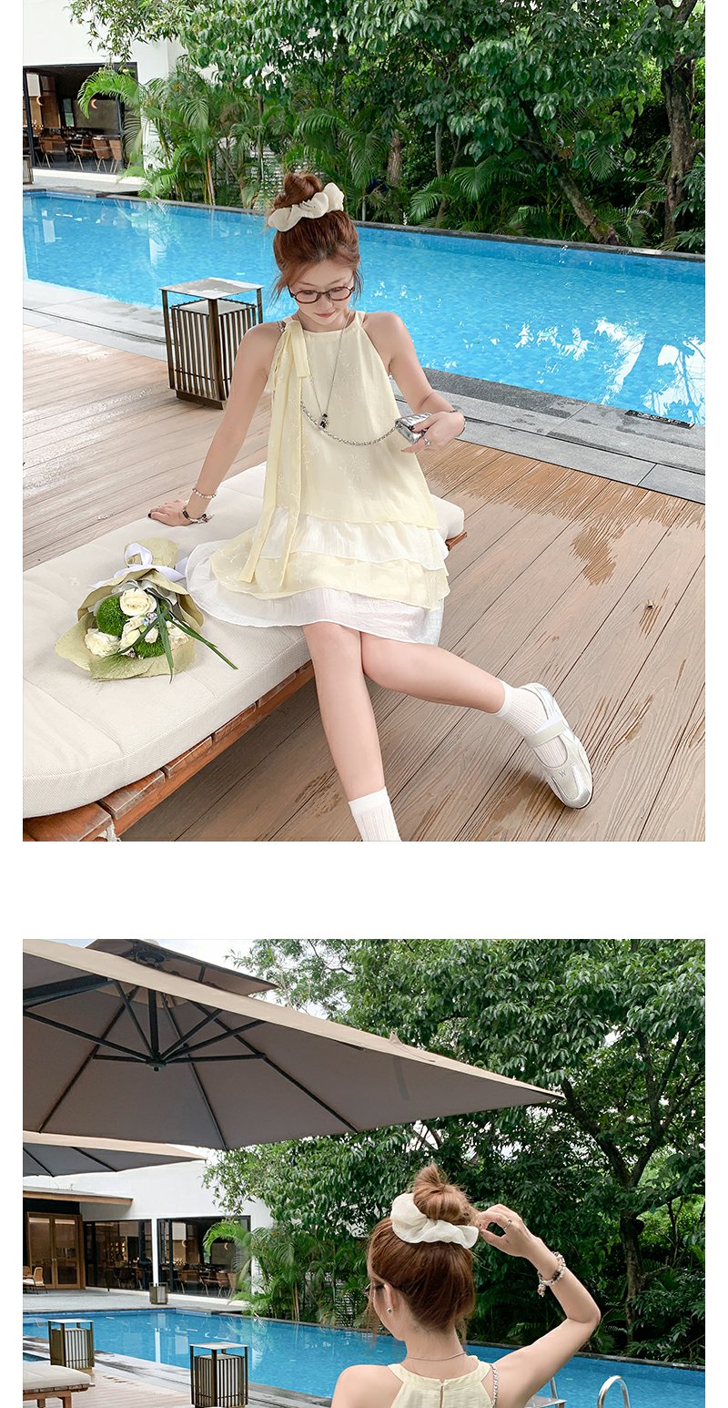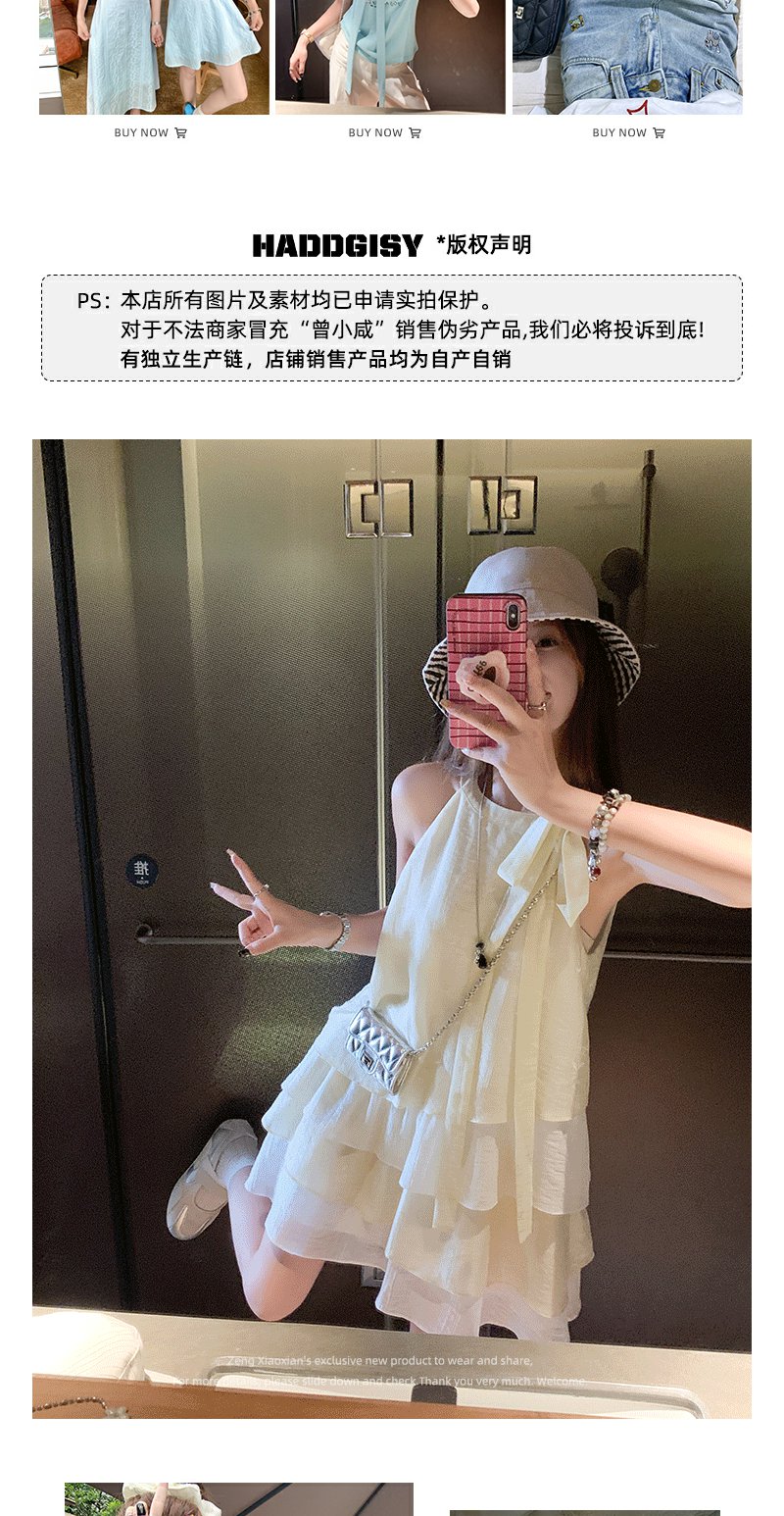 <曾小咸推荐>法式高级感气质挂脖荷叶边连衣裙