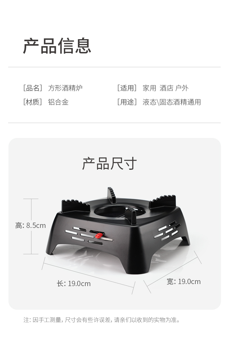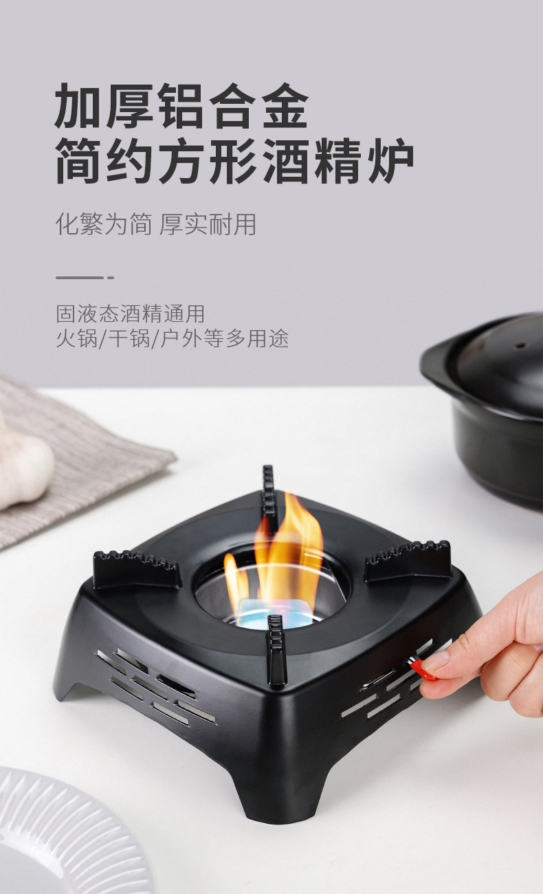 【铝制方炉】家用铝合金方形酒精炉酒店干锅炉通用便携耐用小火锅炉家庭