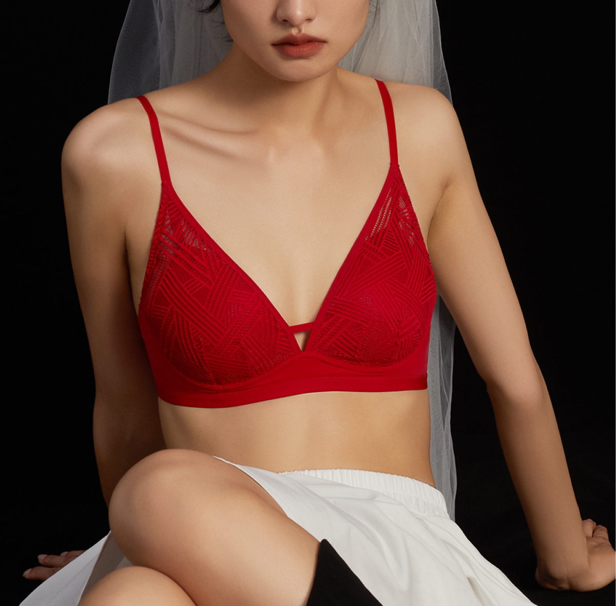 (禧运)莫妮MONI2023新款红色本命年内衣女结婚新娘无钢圈小胸聚拢文胸
