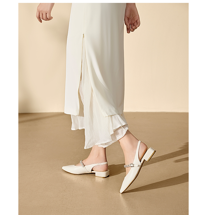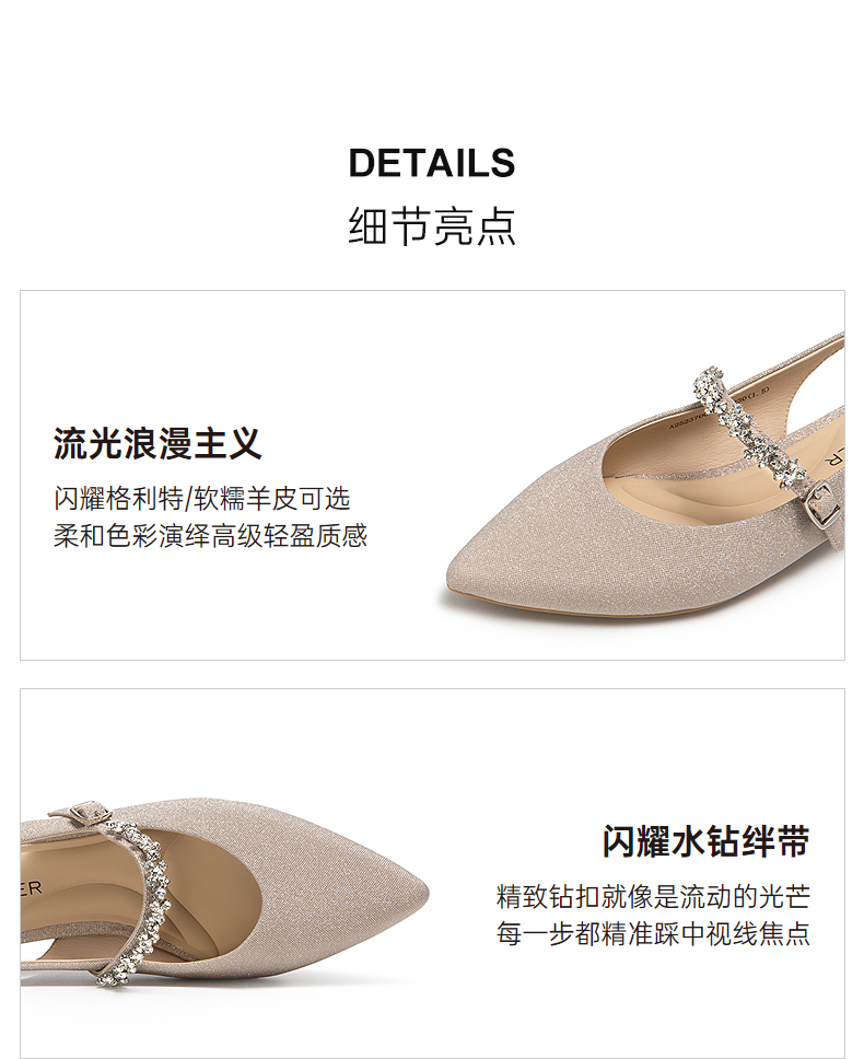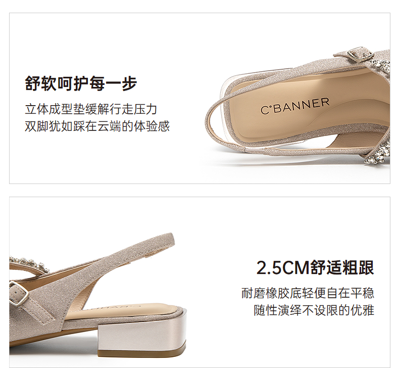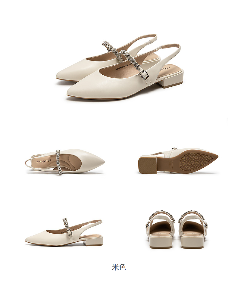千百度低跟水钻时装凉鞋女款后空玛丽珍包头绝美凉鞋A25237009