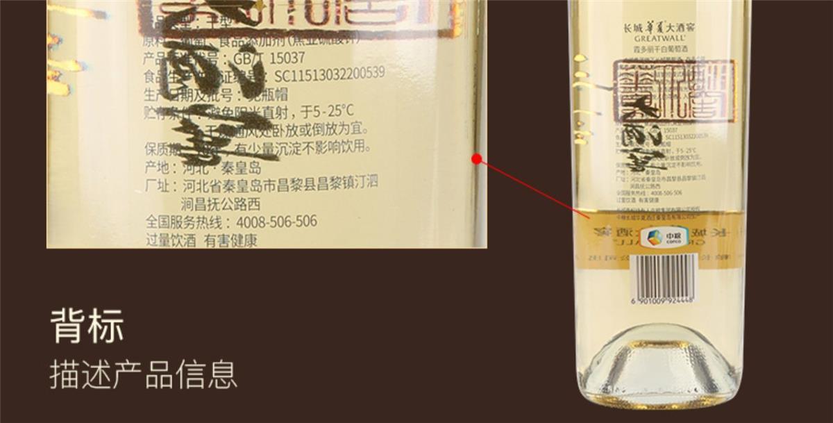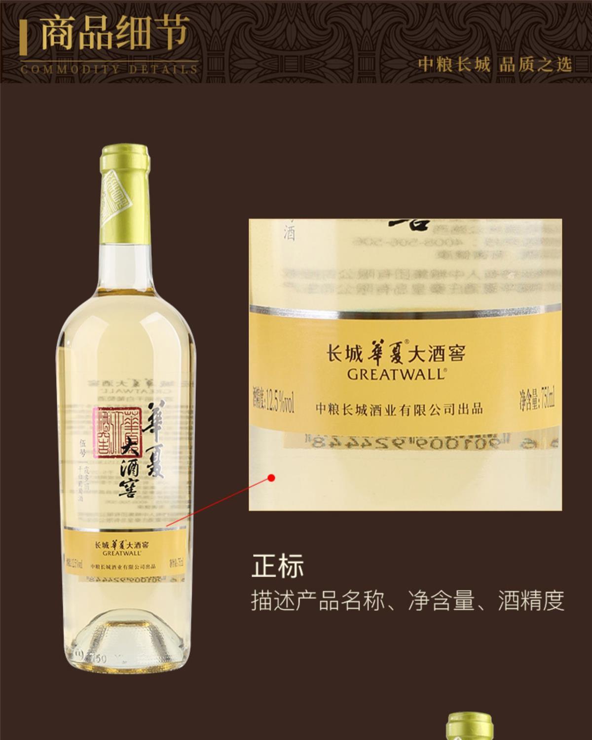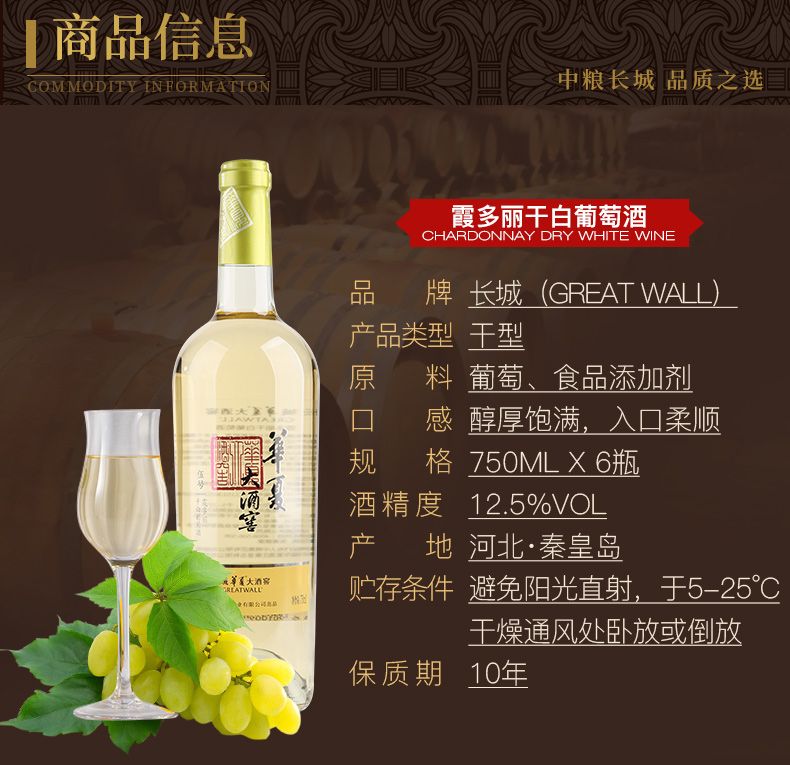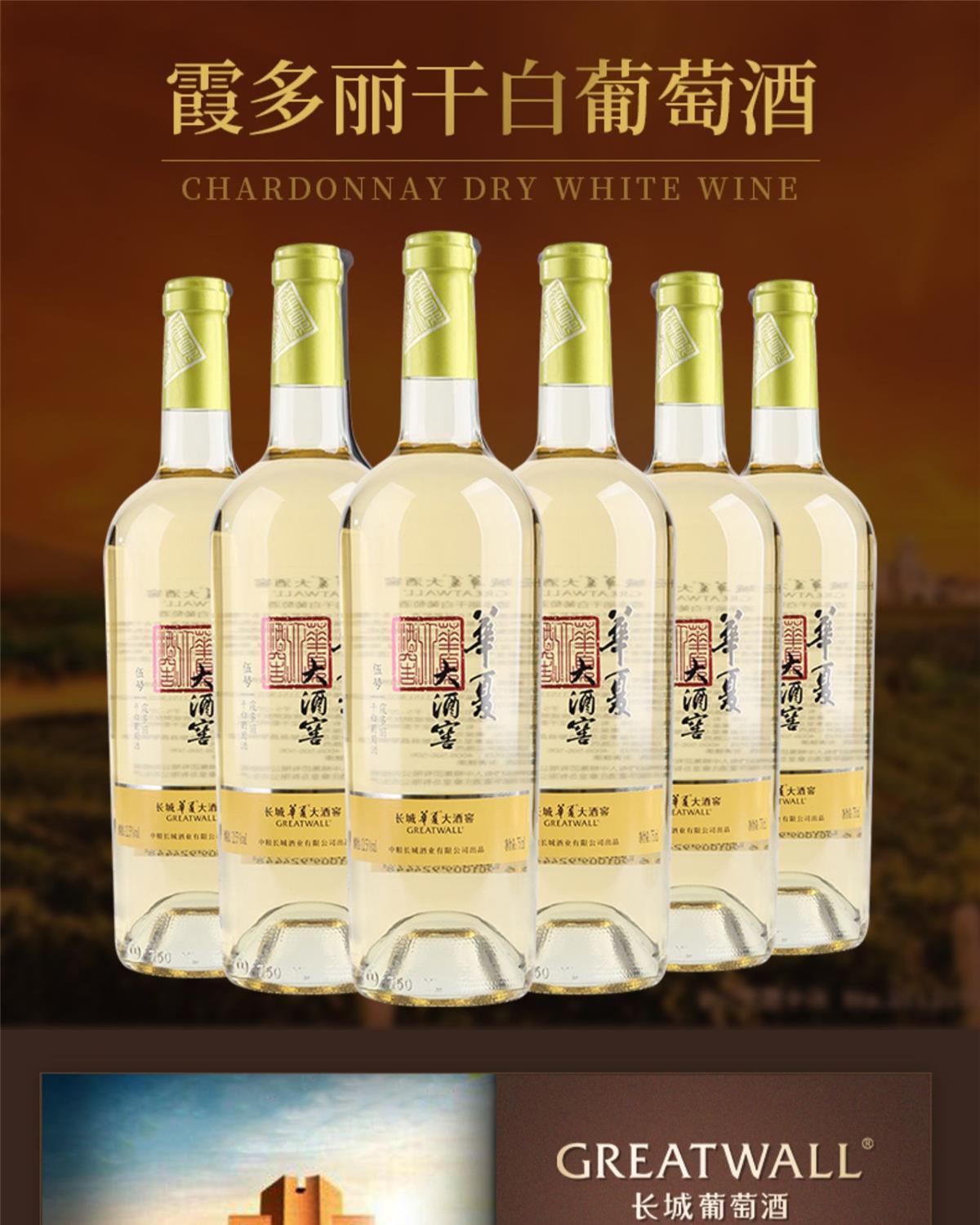 中粮长城华夏大酒窖 霞多丽干白葡萄酒 整箱750ml*6瓶包邮