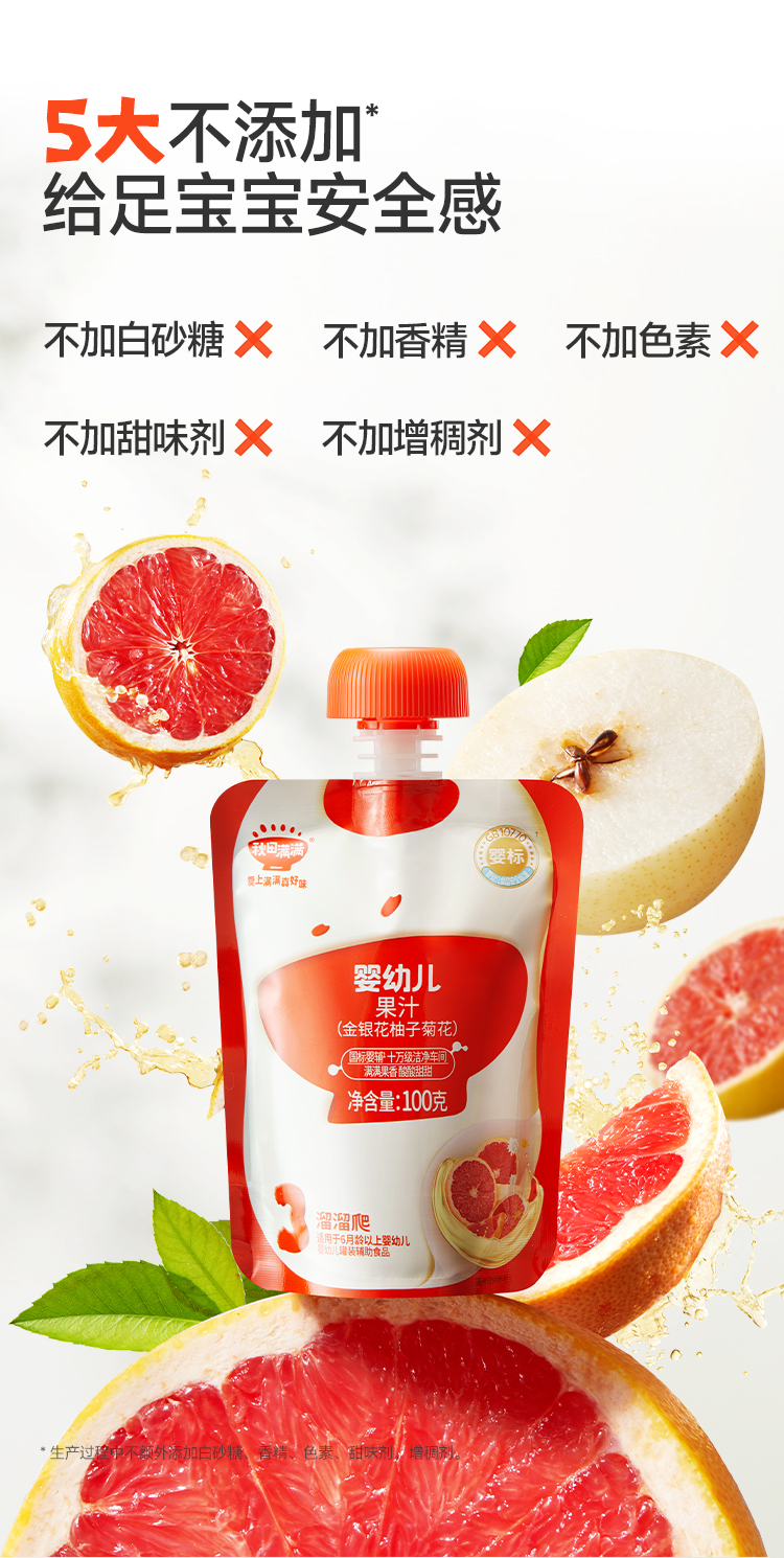 【99元任选7件】婴幼儿果汁(金银花柚子菊花)100mL*3,叠加店铺满赠,不可叠加店铺满减和会员折扣