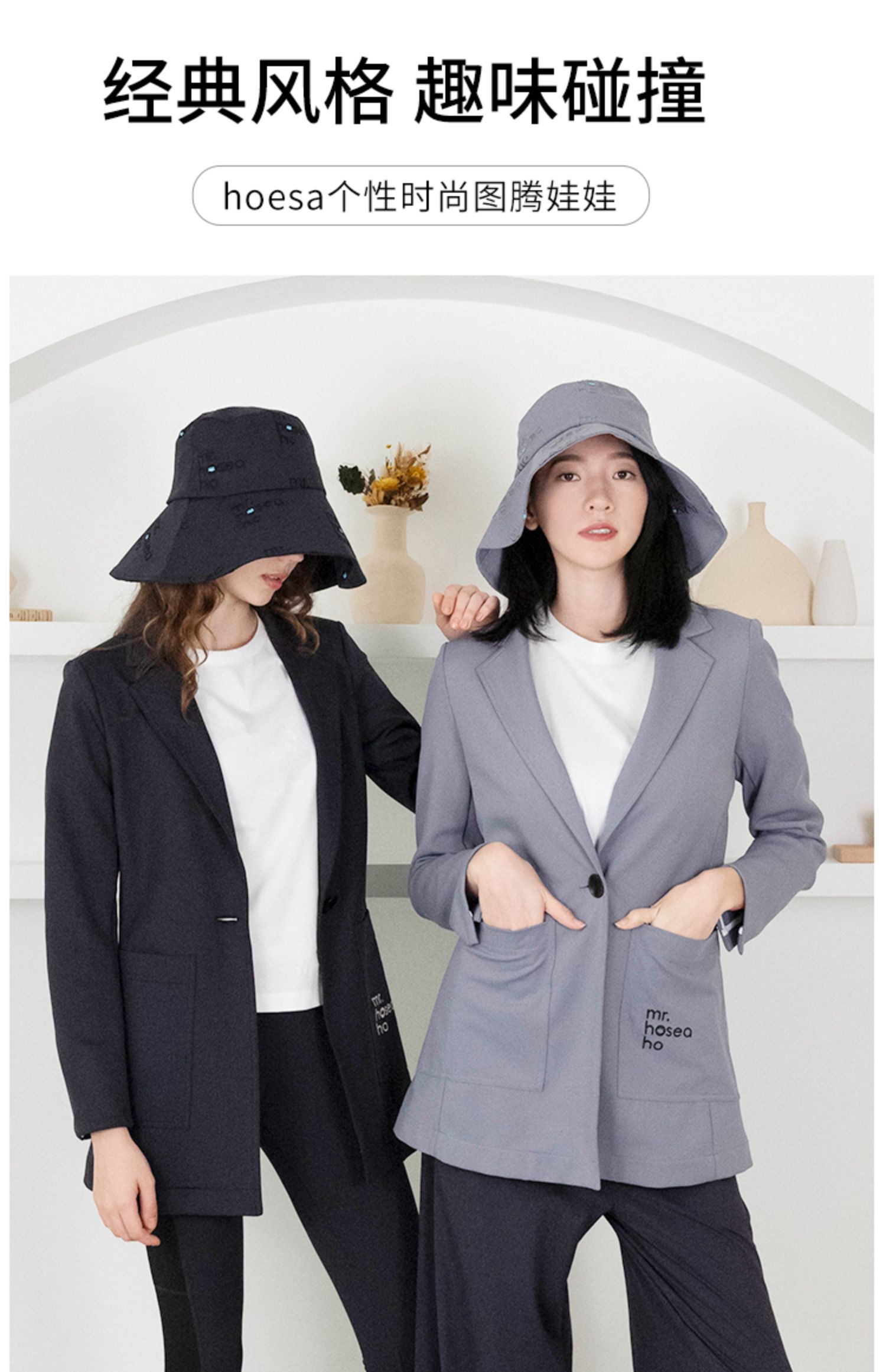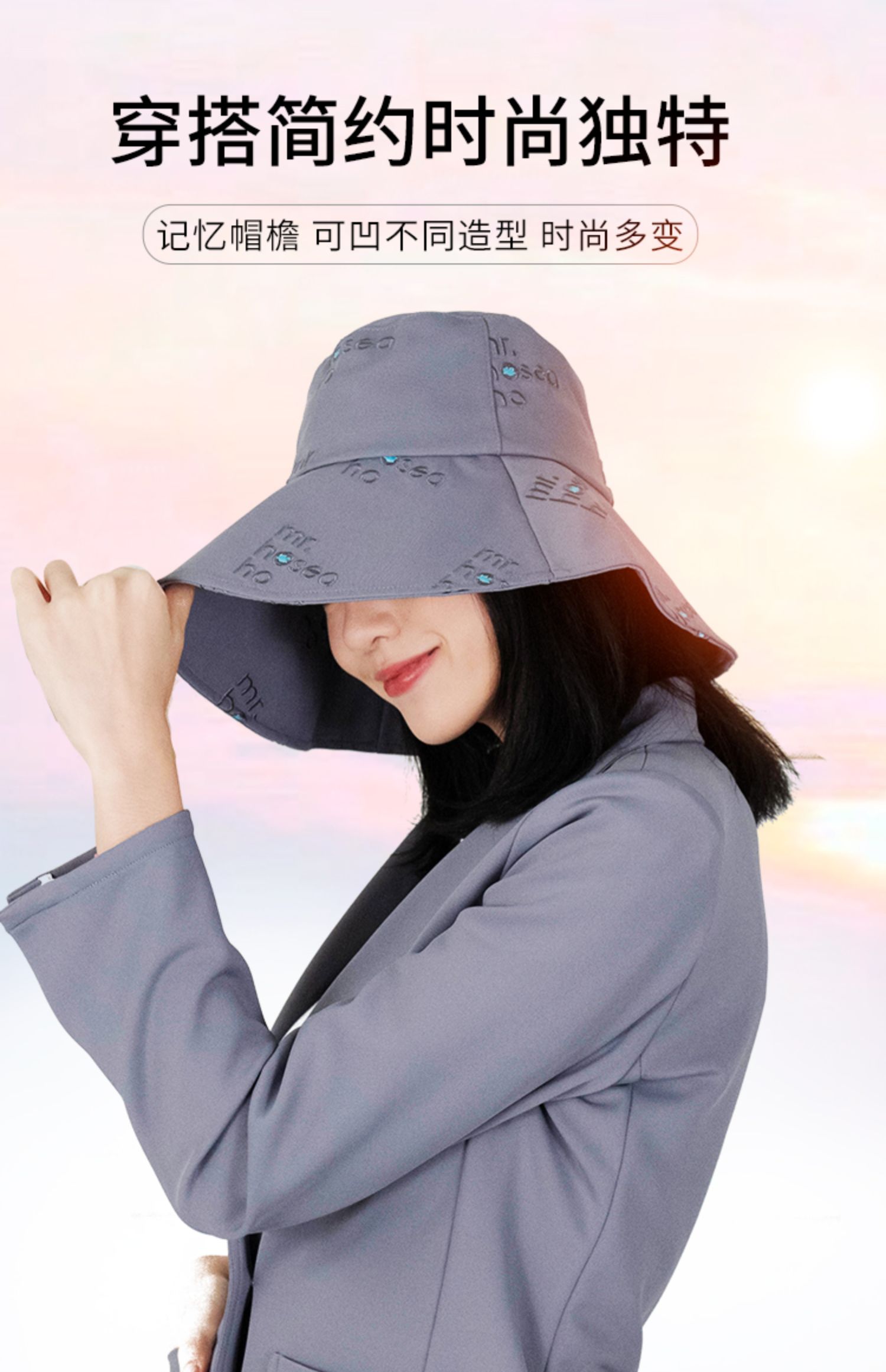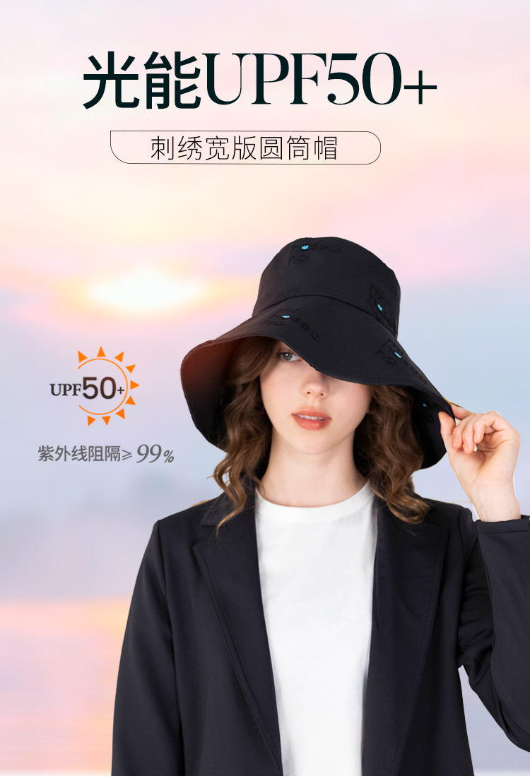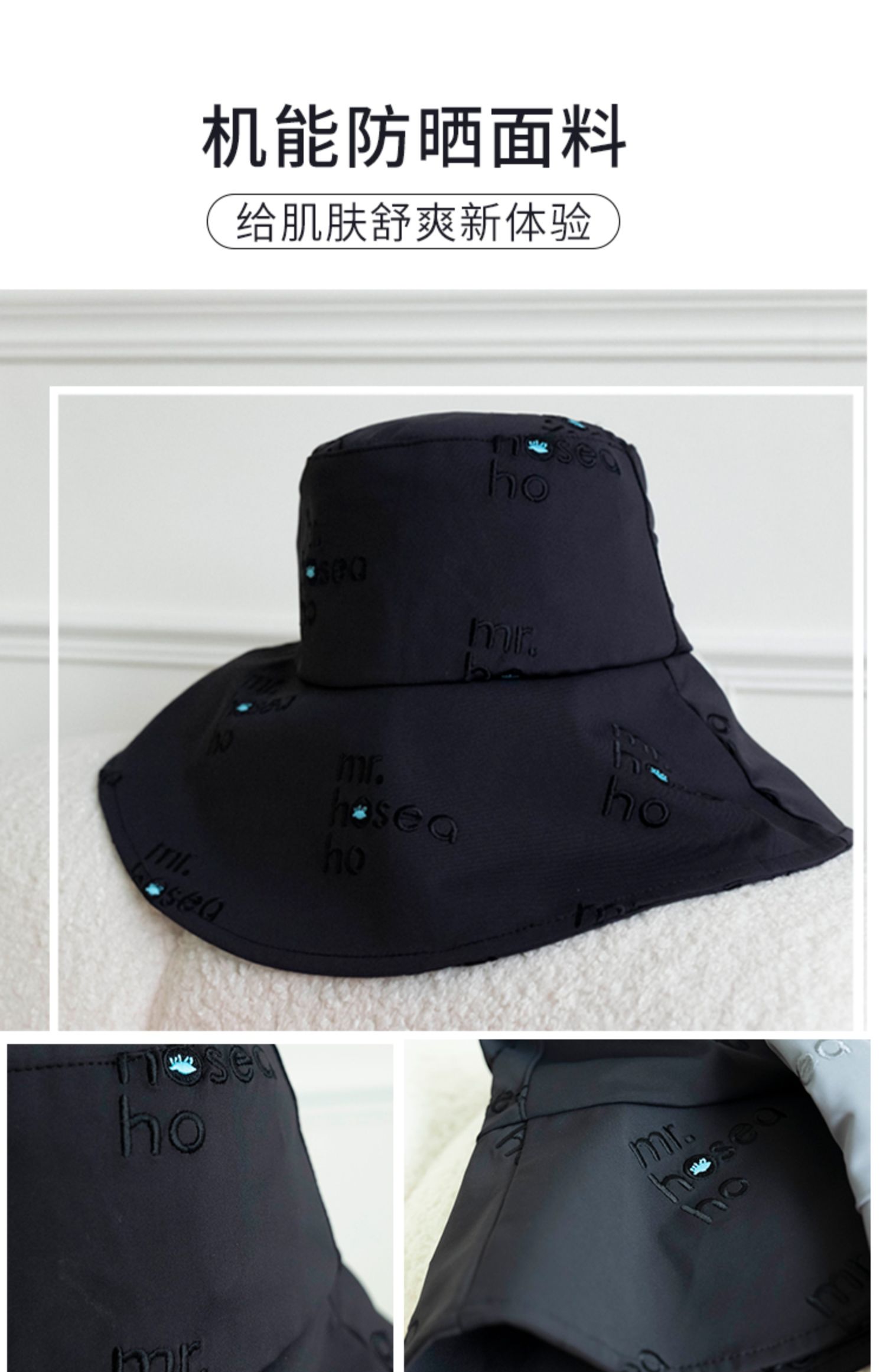 HOII/后益 Mr.HoseaHo刺绣宽版圆筒帽防晒帽[福利品]