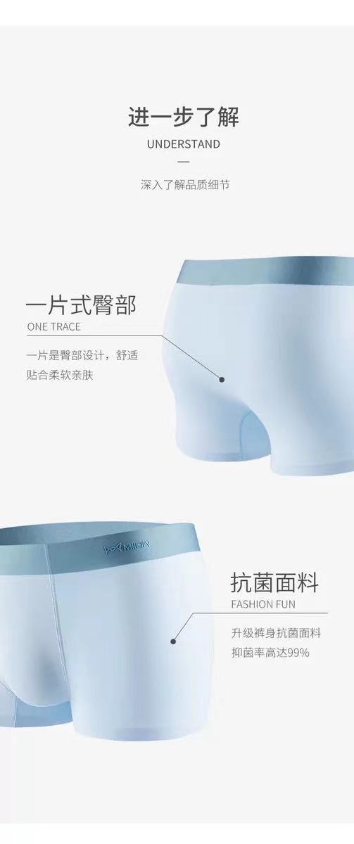 【猫人秋季新款抗jun防螨内裤】猫人男士内裤石墨烯抗jun无痕男纯色棉质四角裤平角裤透气底裤