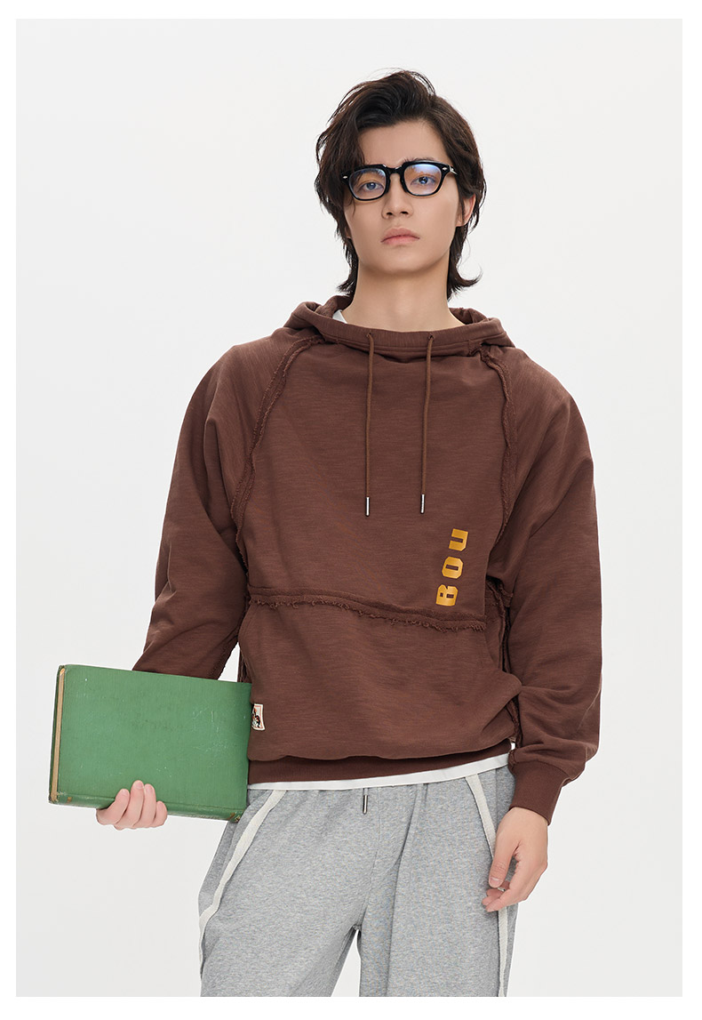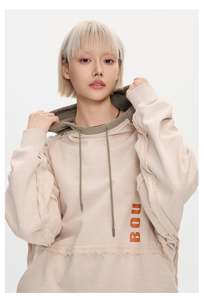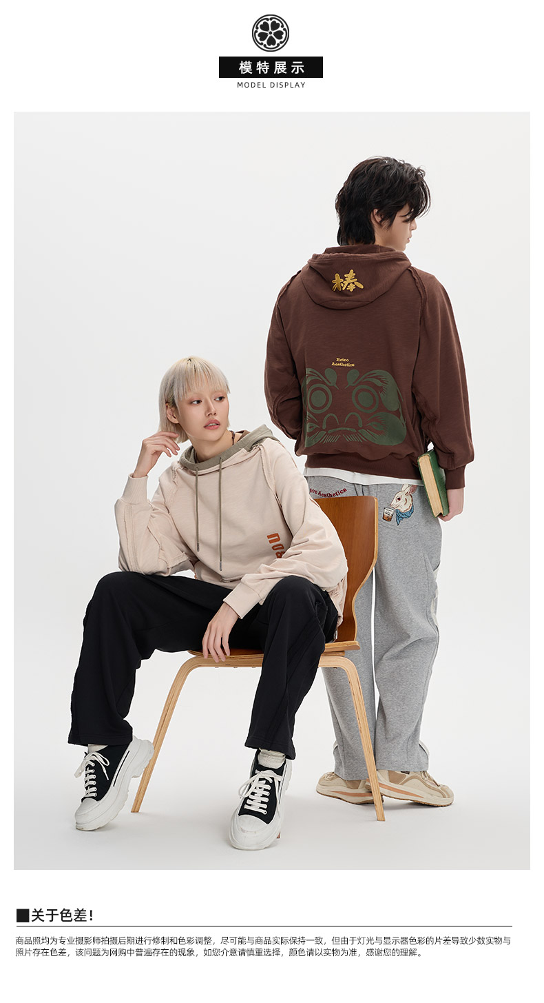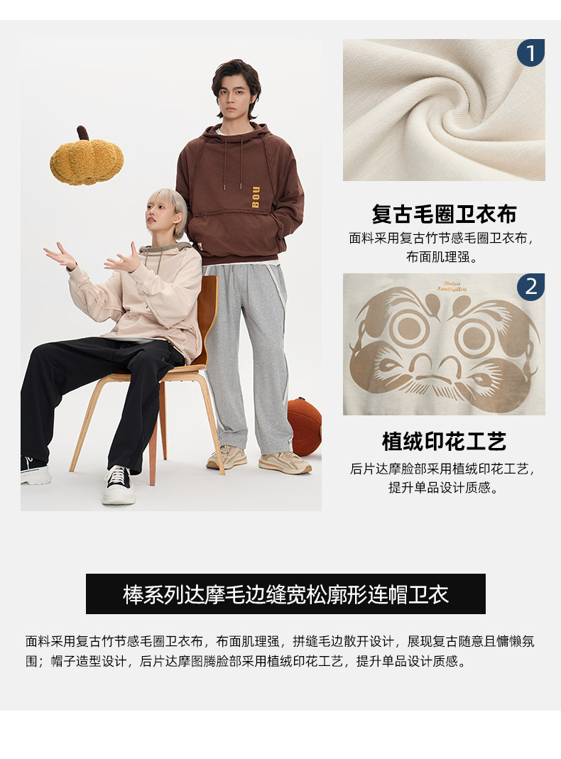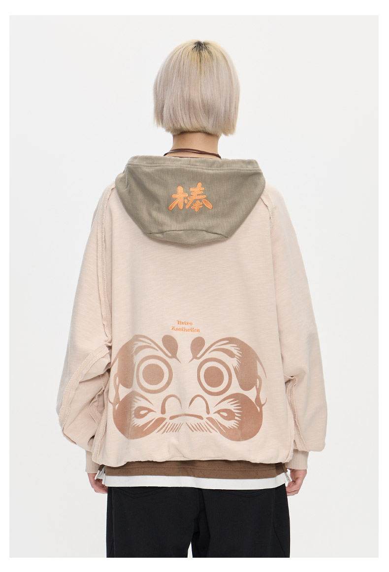 ONIARAI/鬼洗25秋冬棒达摩毛边缝宽松廓形连帽卫衣男女 N240155