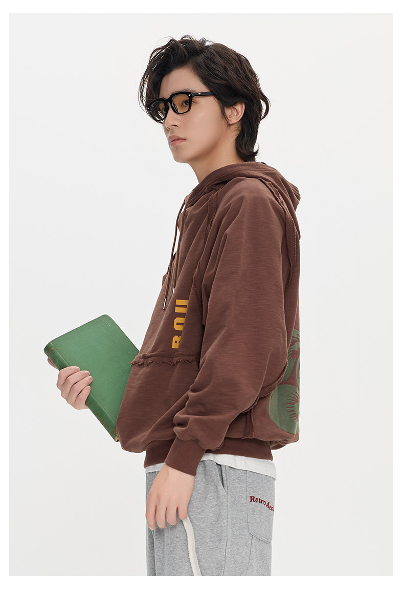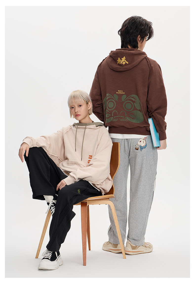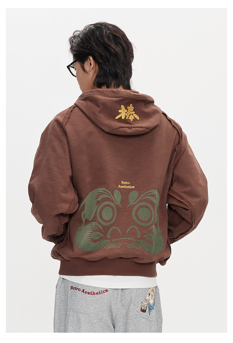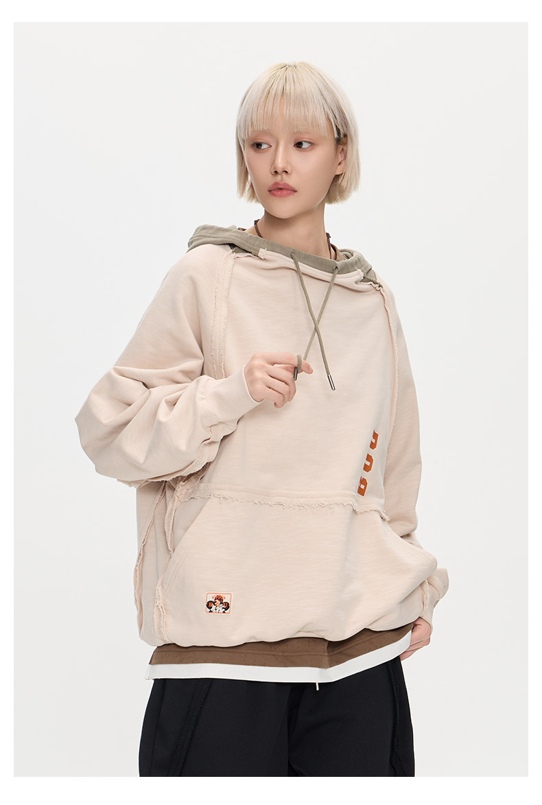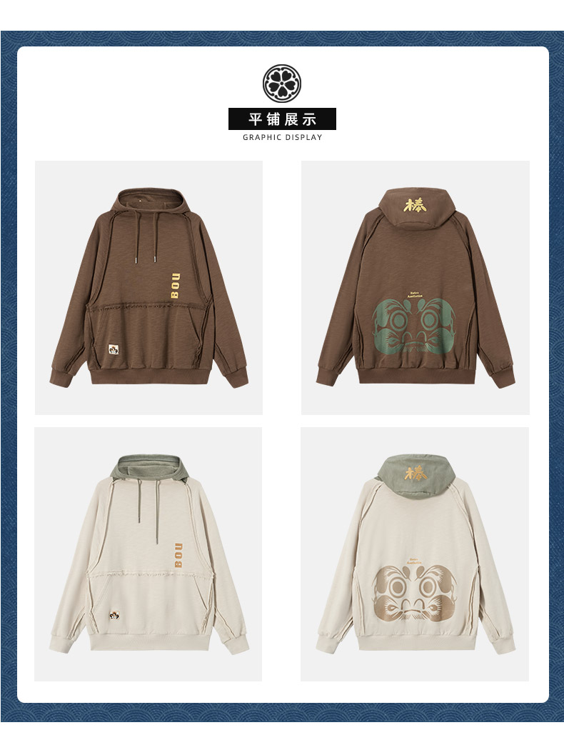 ONIARAI/鬼洗25秋冬棒达摩毛边缝宽松廓形连帽卫衣男女 N240155