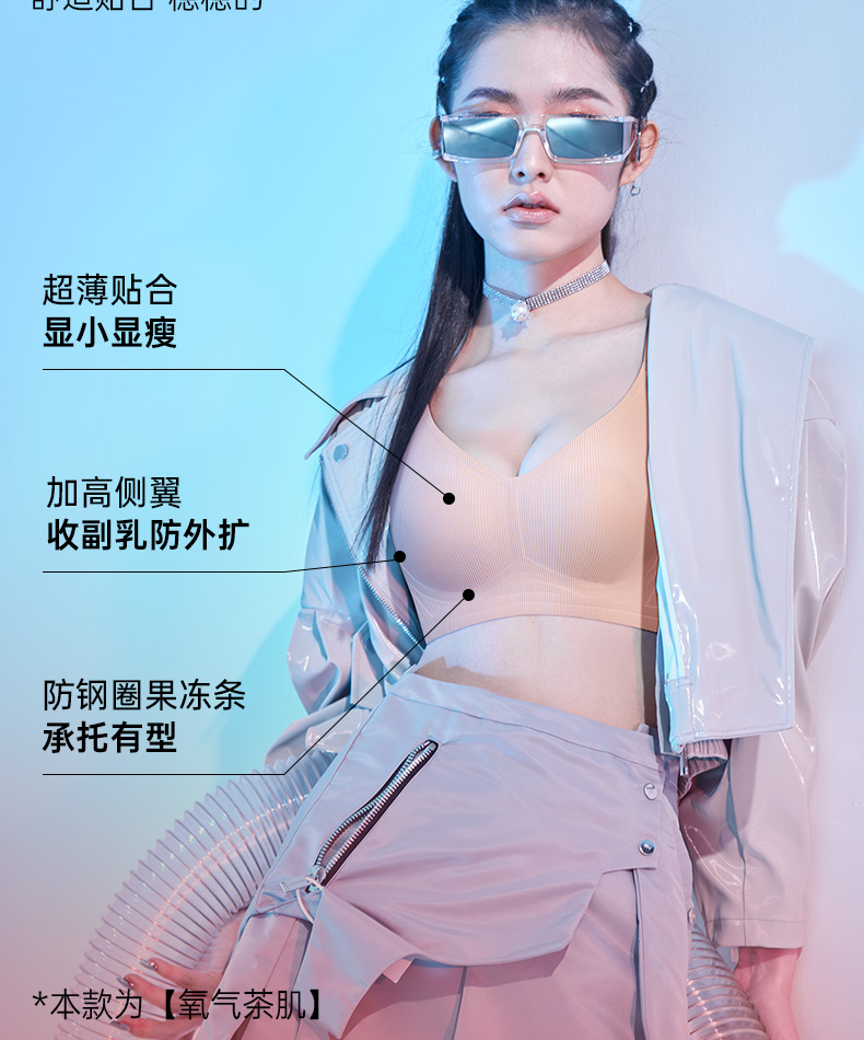 F1-【B-F杯】兔耳朵 薄款防下垂收副乳聚拢大码文胸 氧气茶肌+小蓝莓