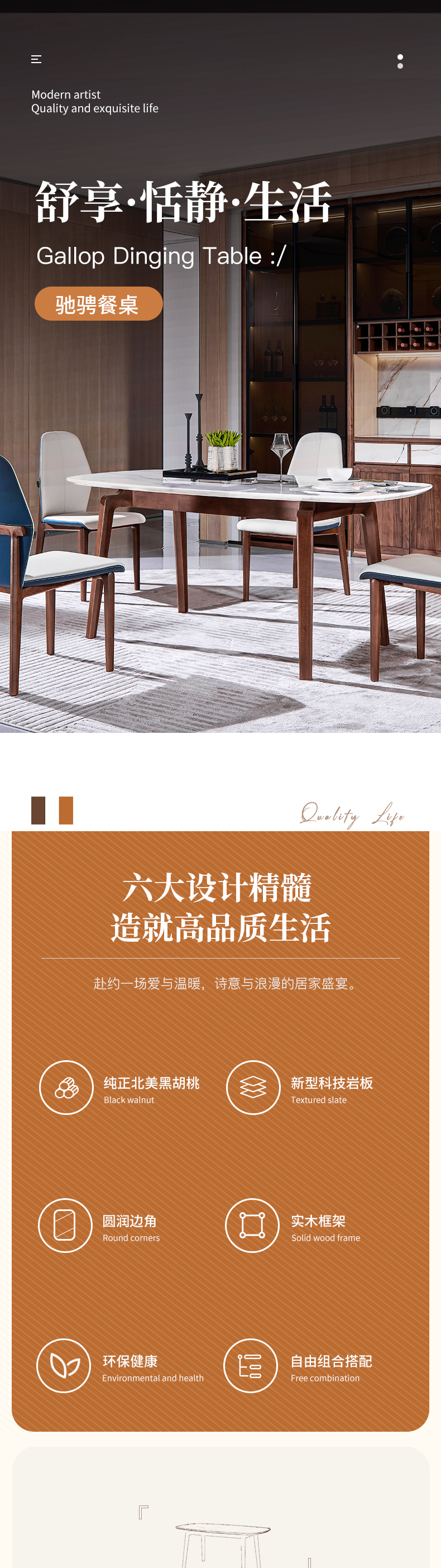 【现代风-CY302餐桌】现代风/餐厅/北美黑胡桃木/实木+大理石餐桌