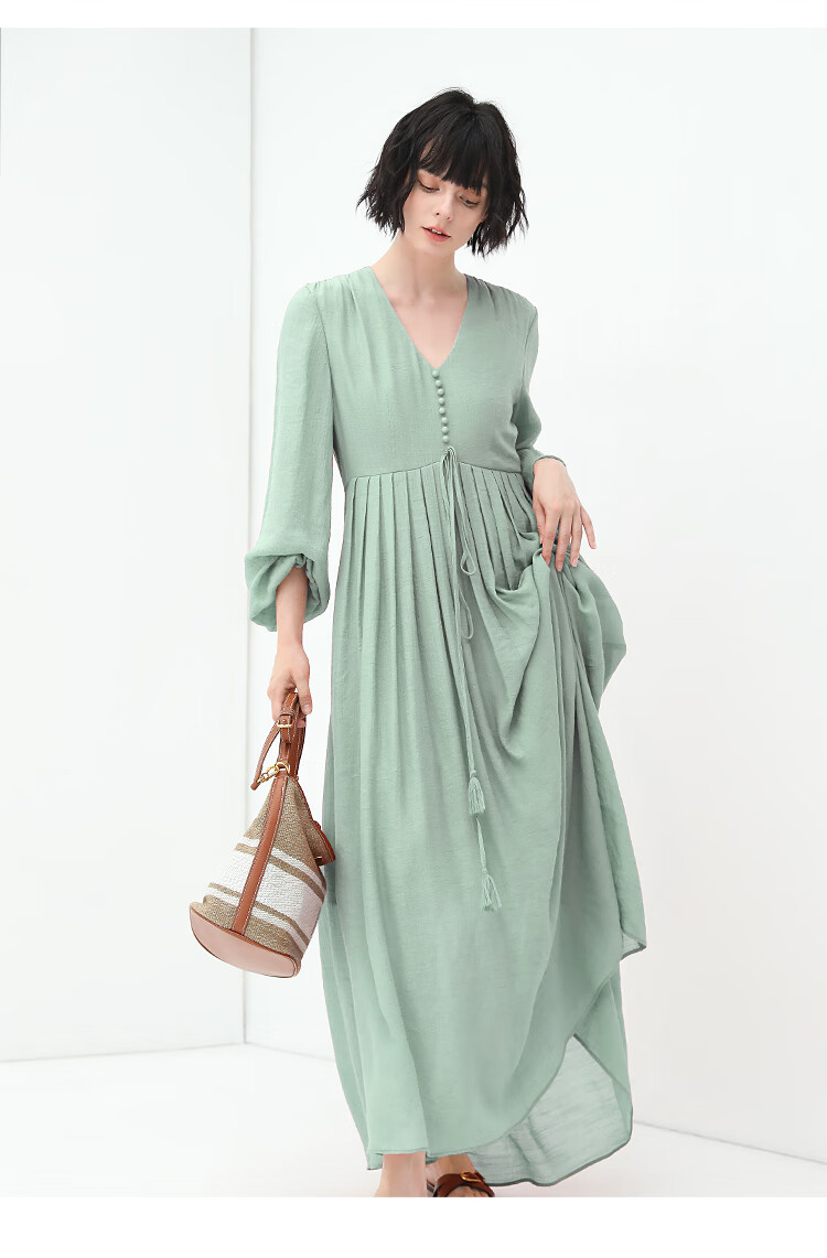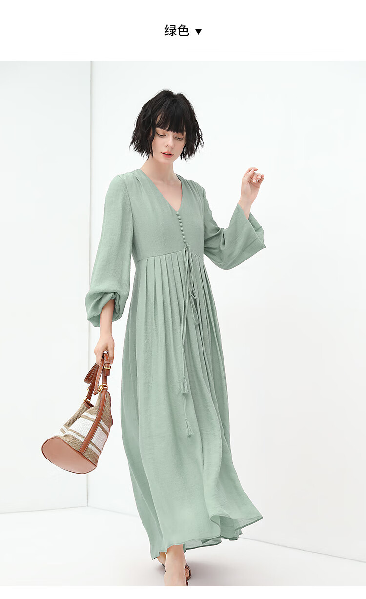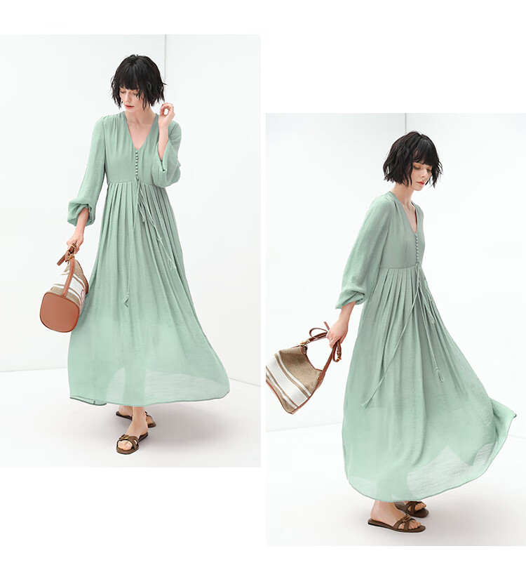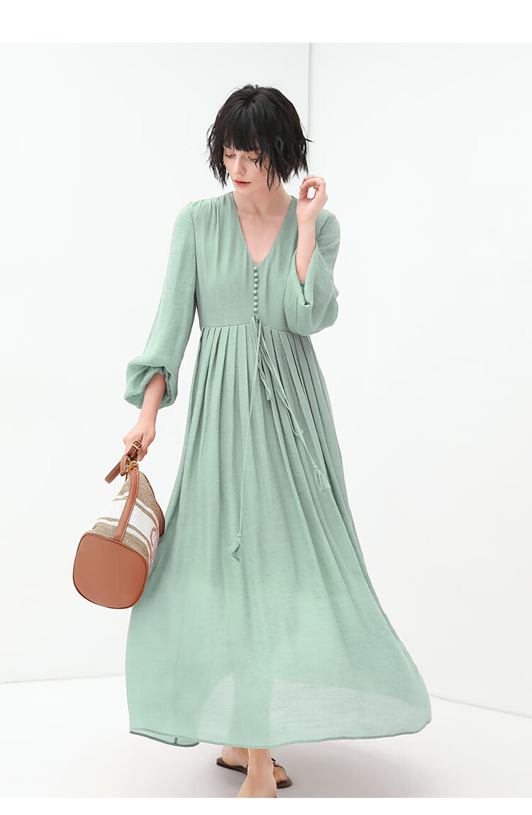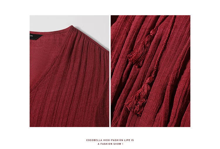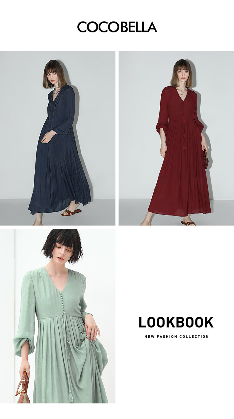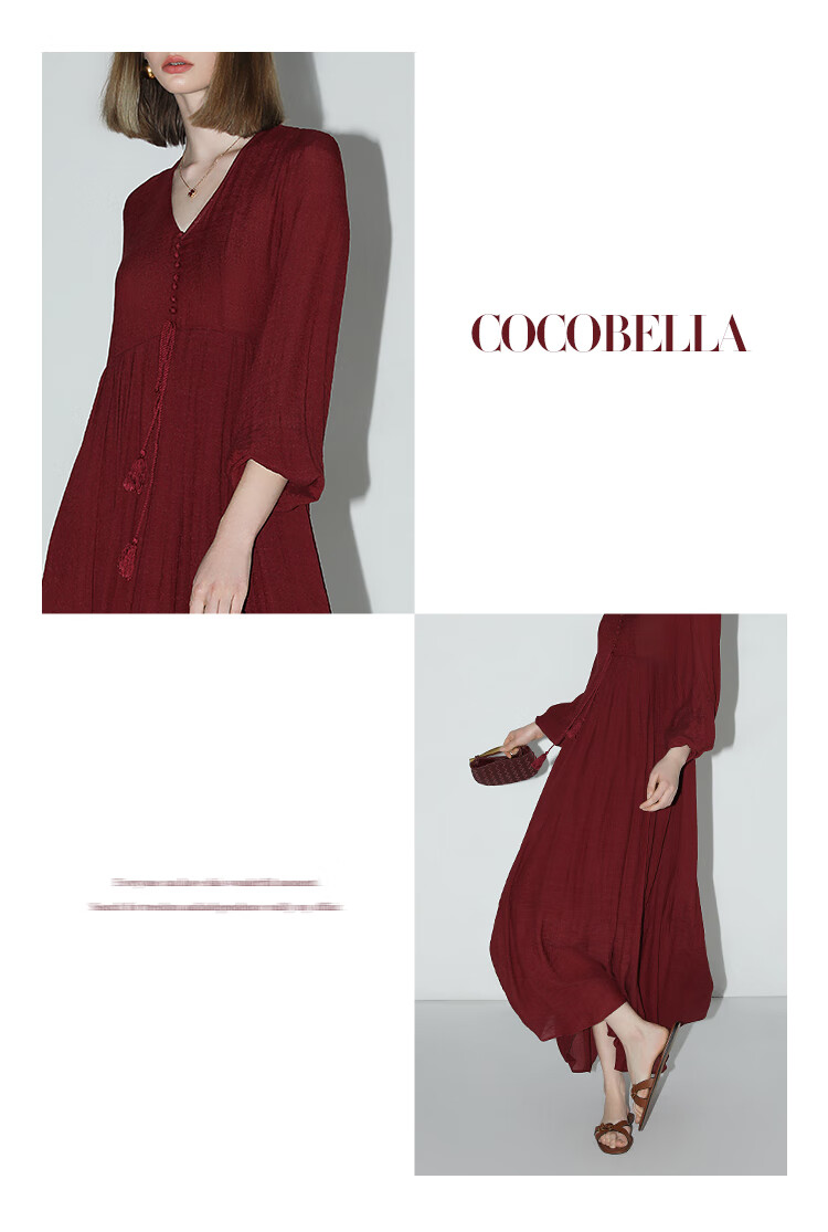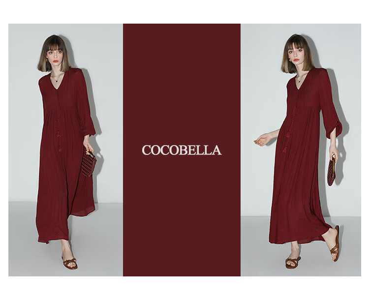 COCOBELLA法式优雅大摆V领连衣裙度假沙滩长裙NFR16