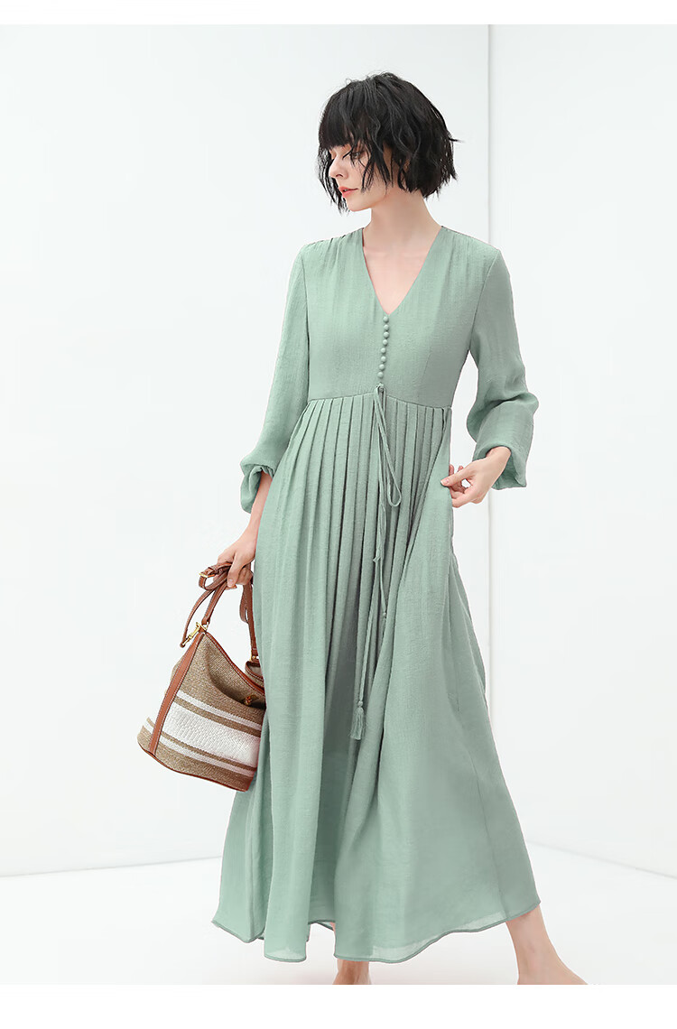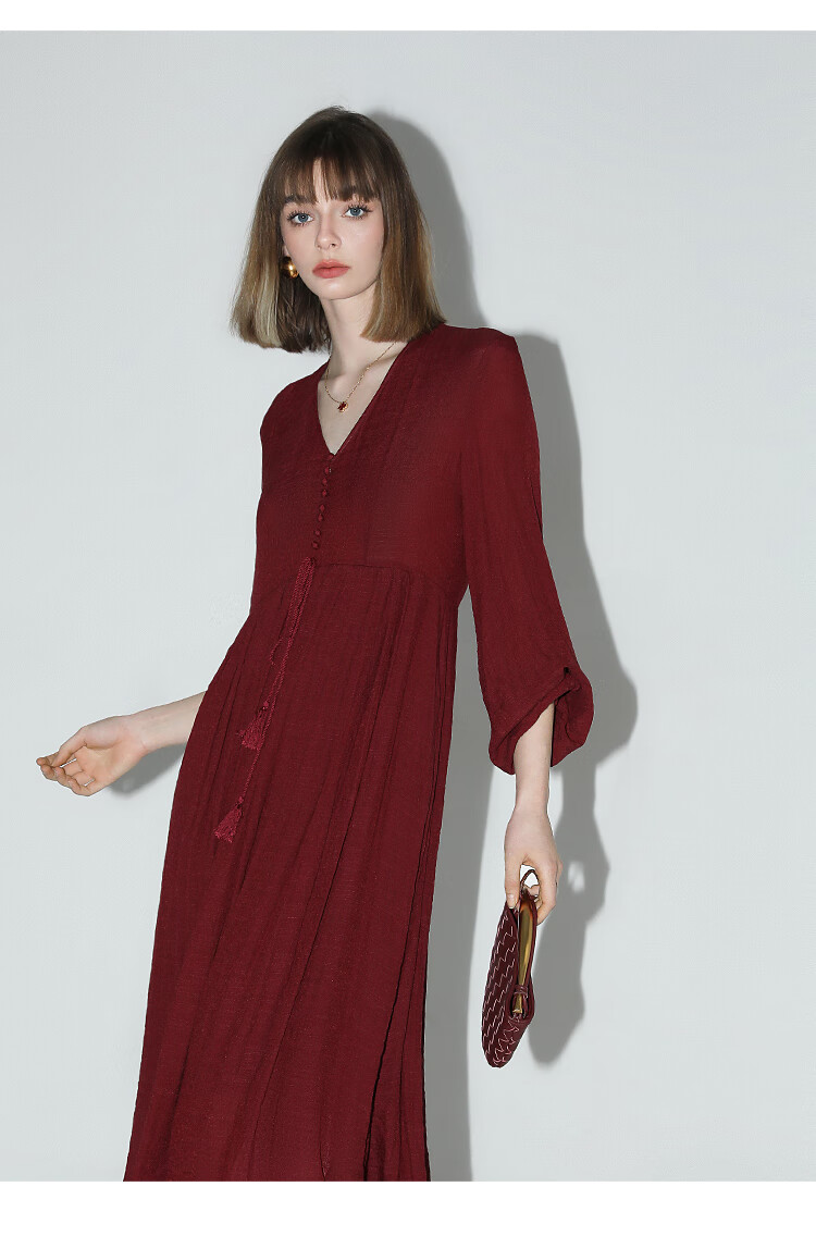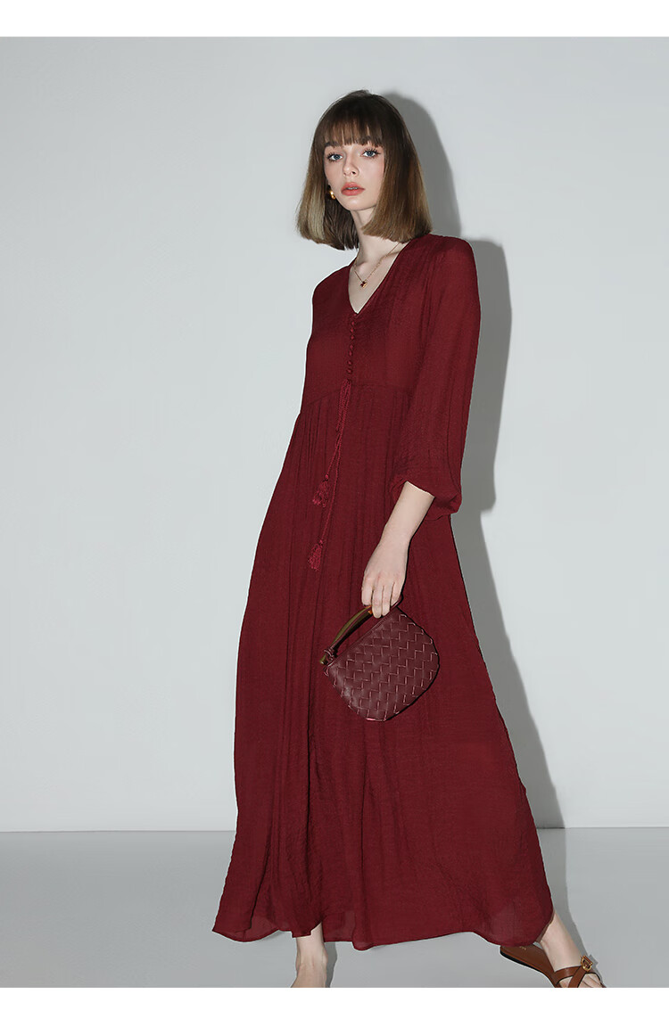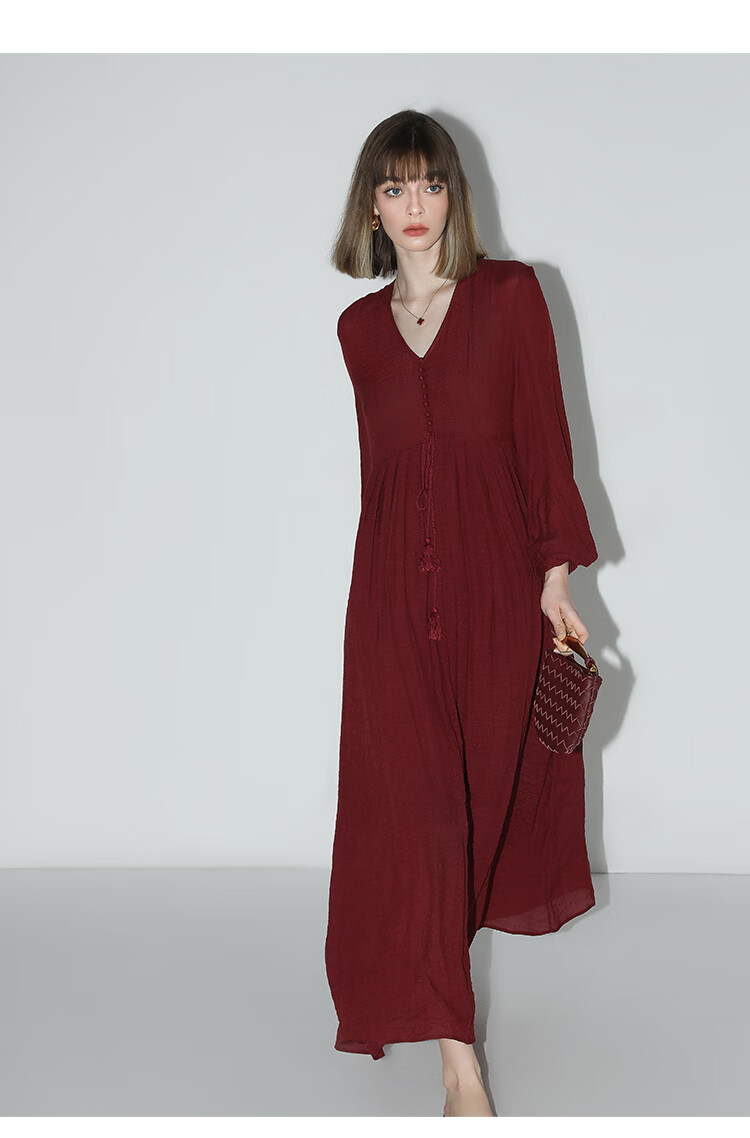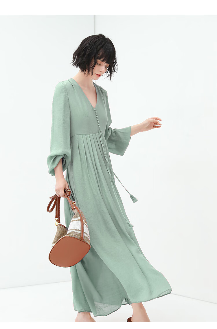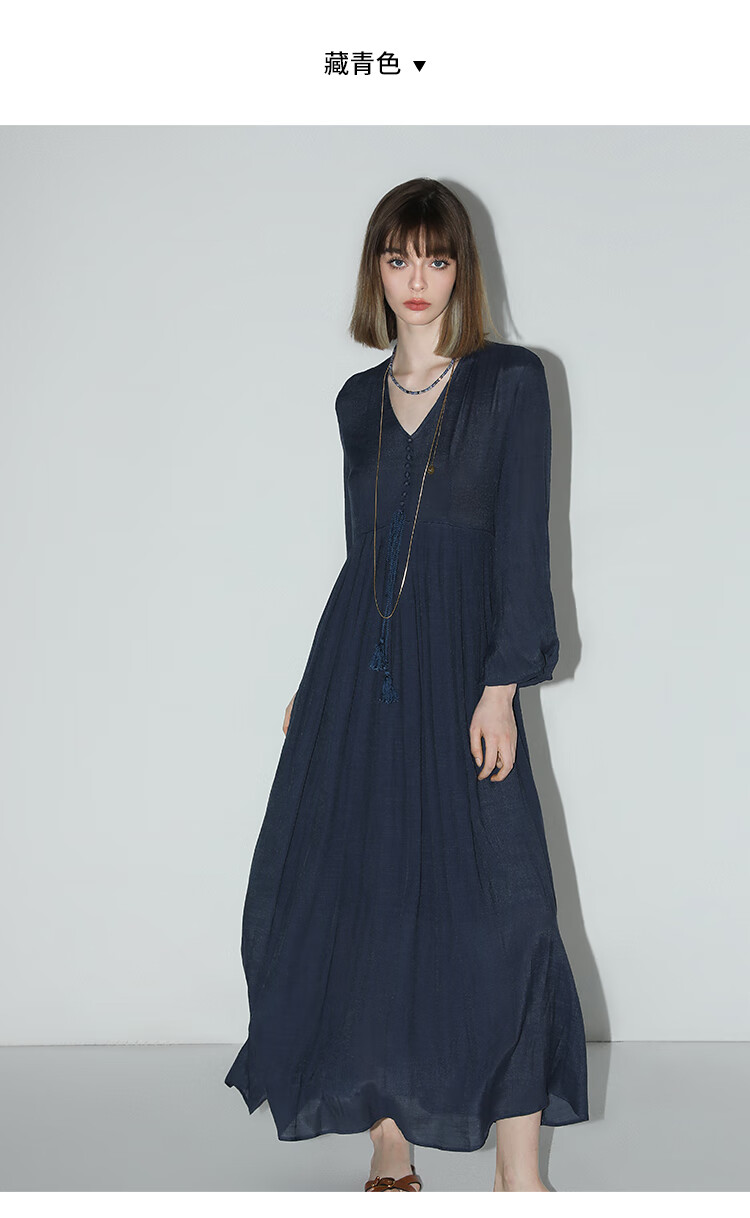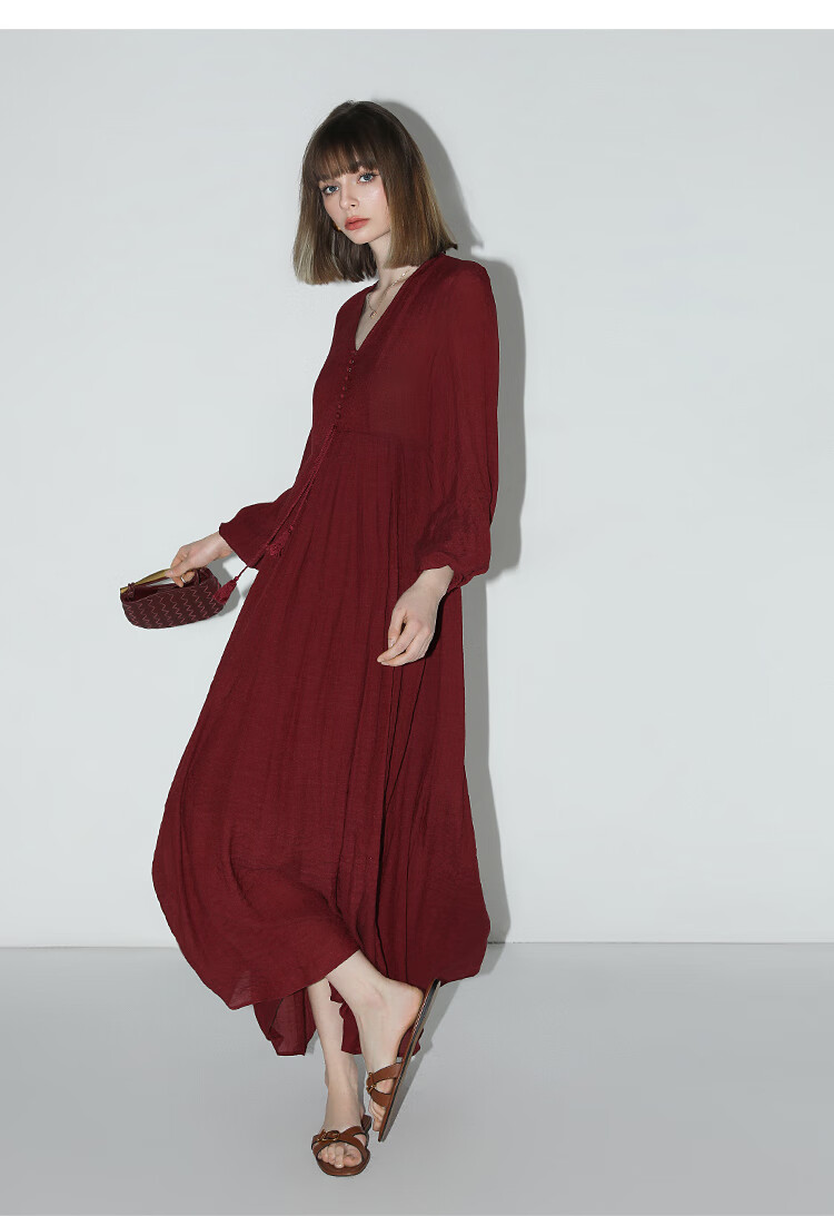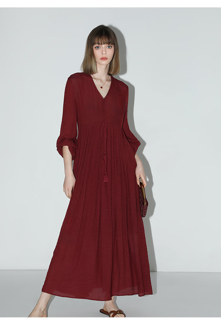 COCOBELLA法式优雅大摆V领连衣裙度假沙滩长裙NFR16