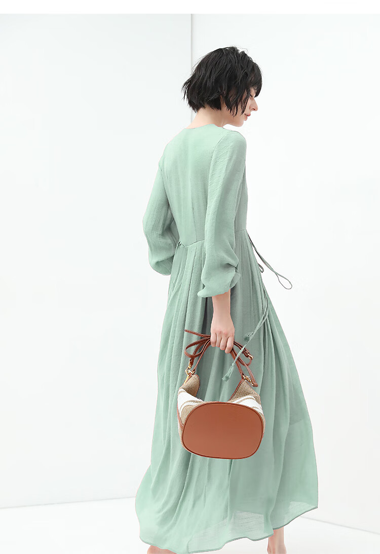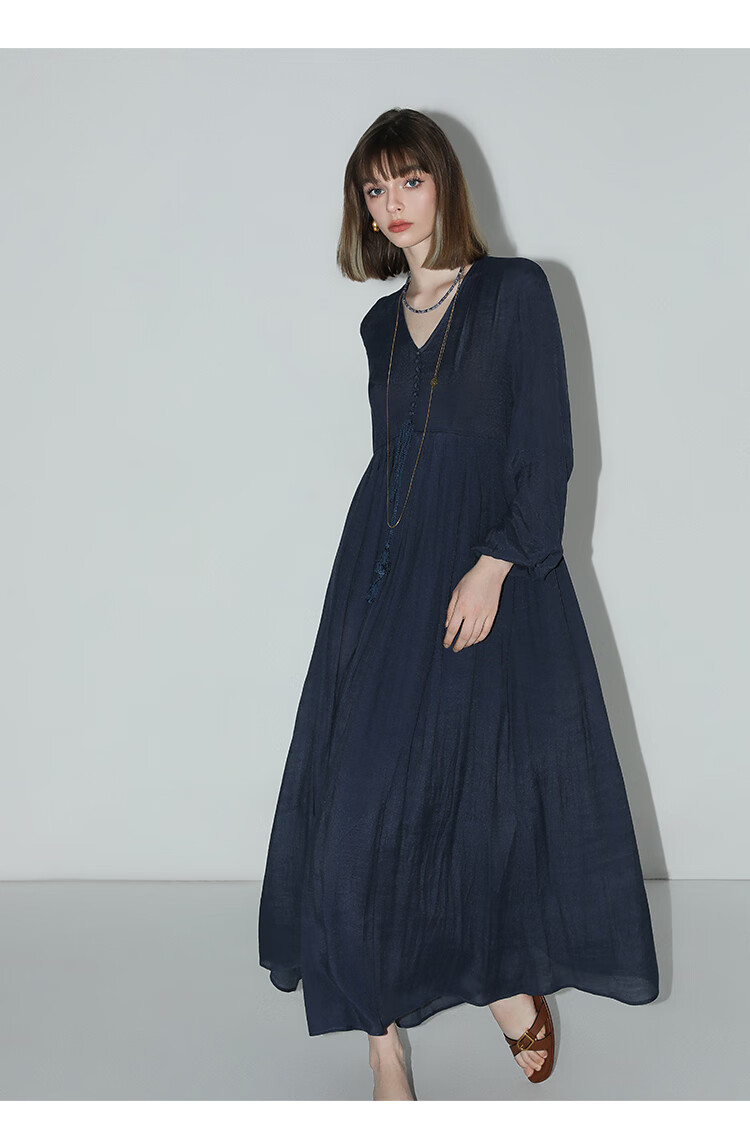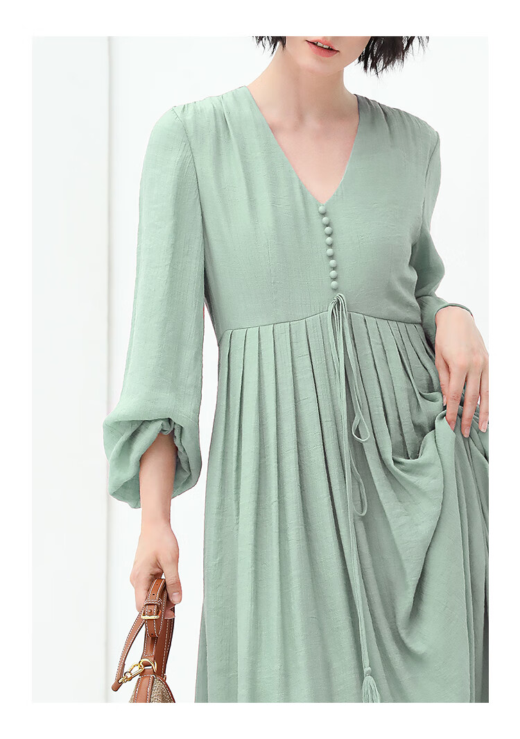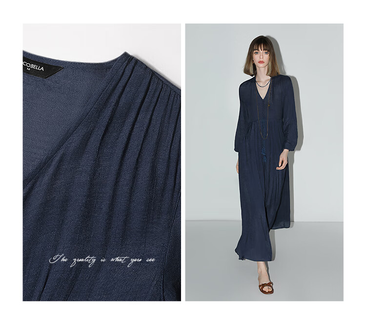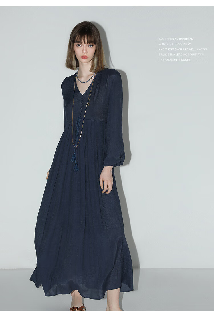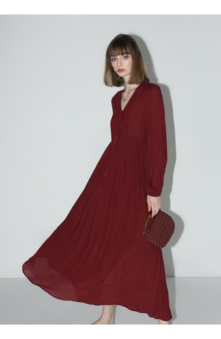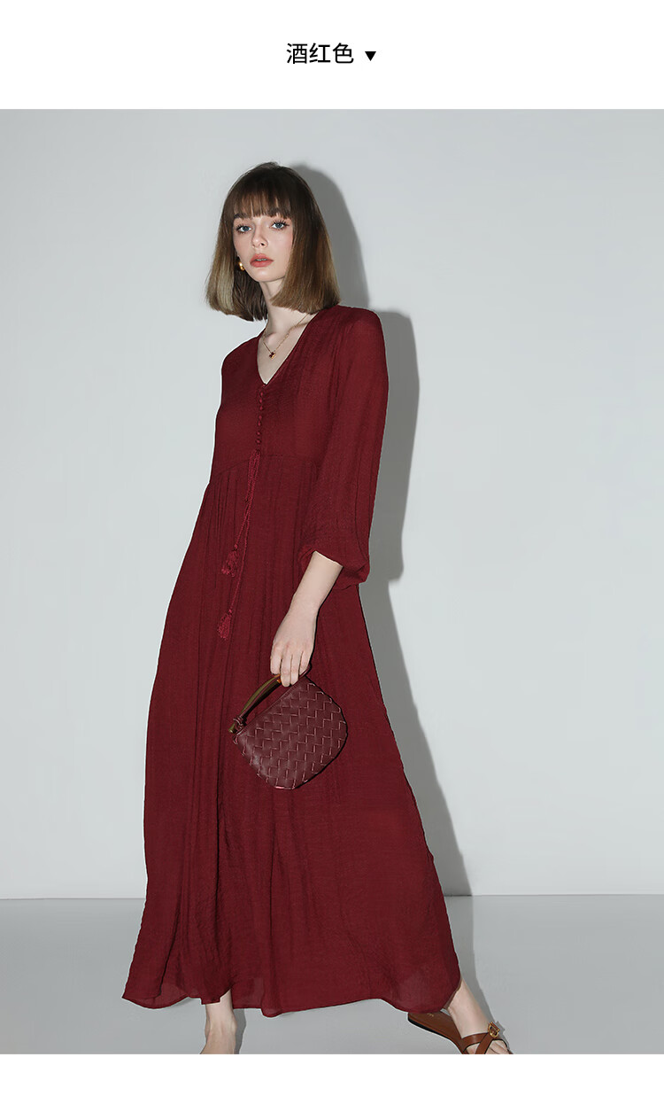 COCOBELLA法式优雅大摆V领连衣裙度假沙滩长裙NFR16