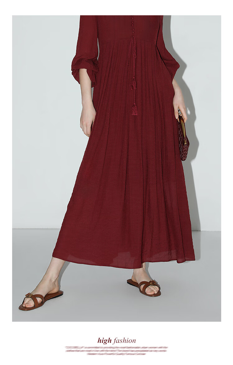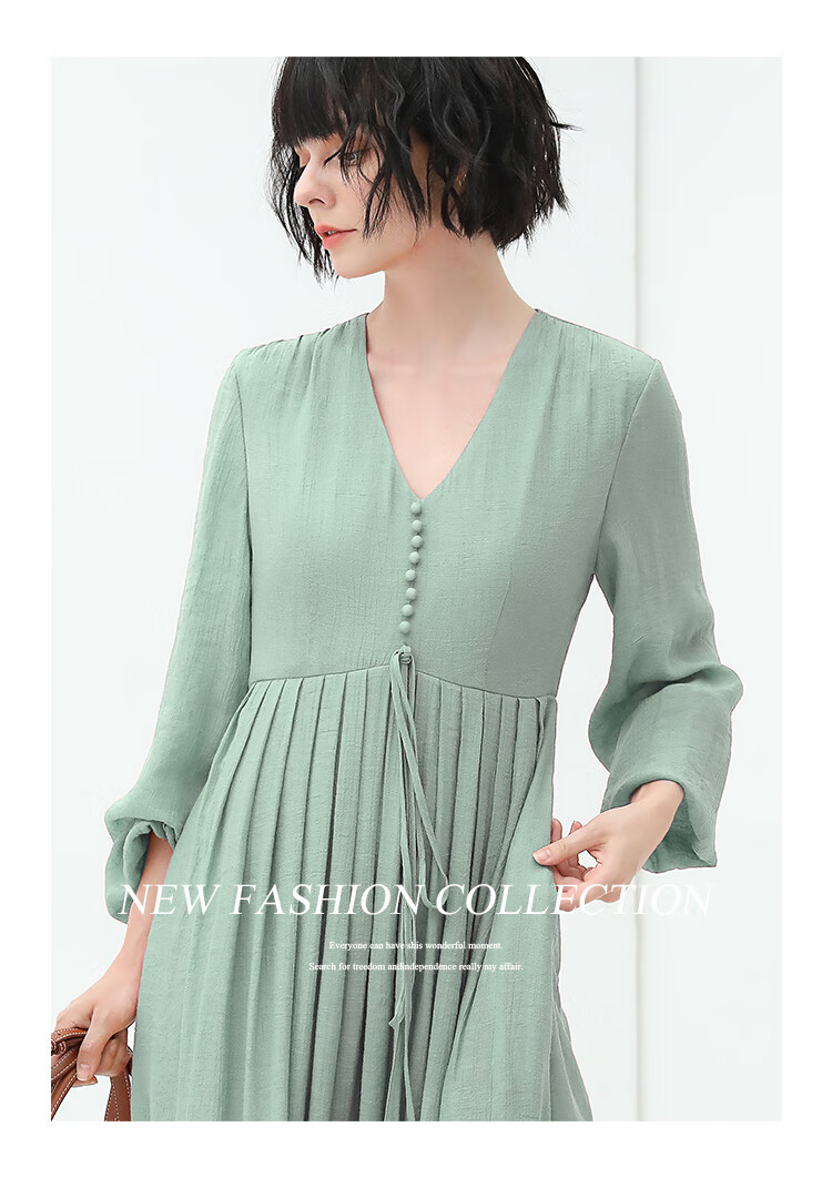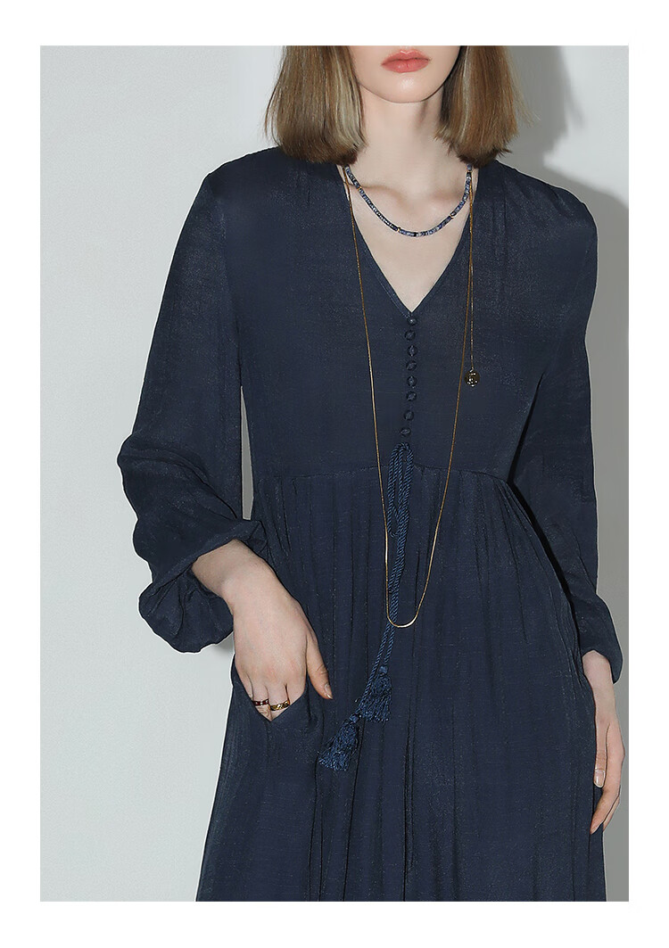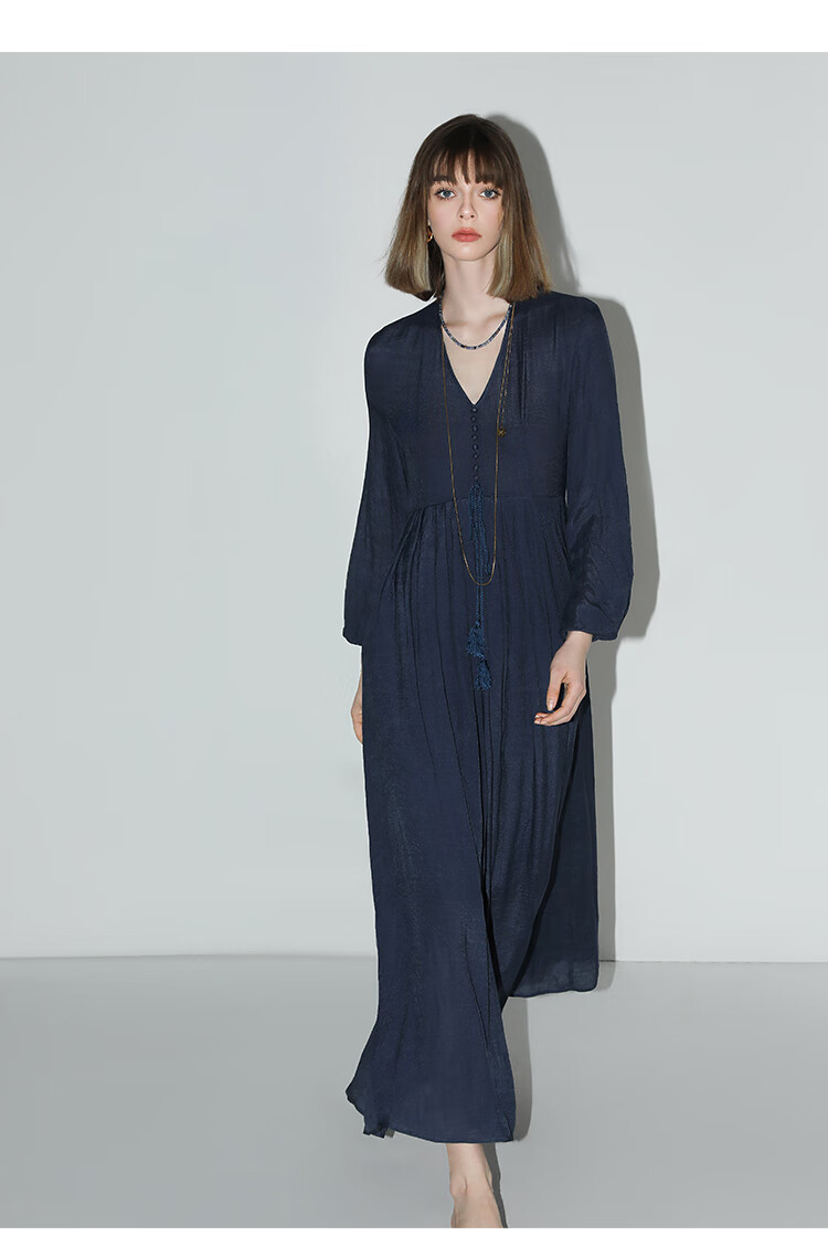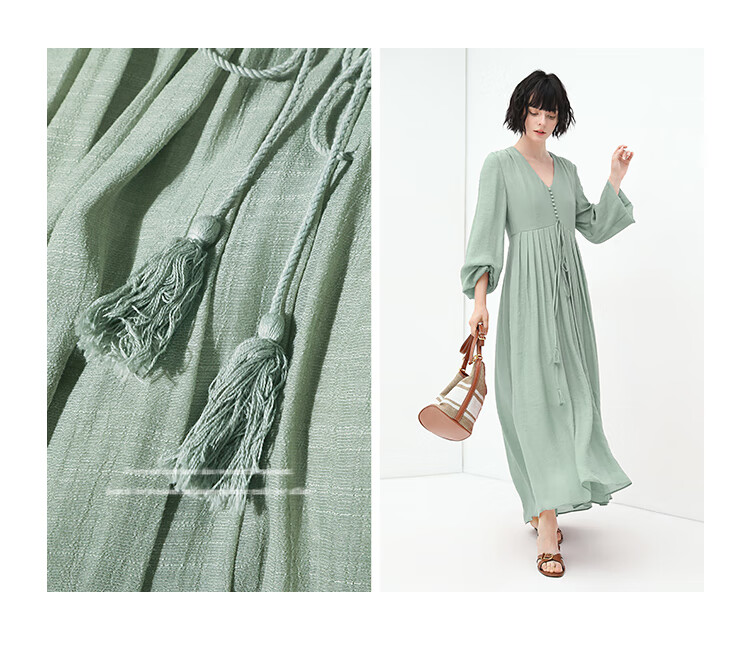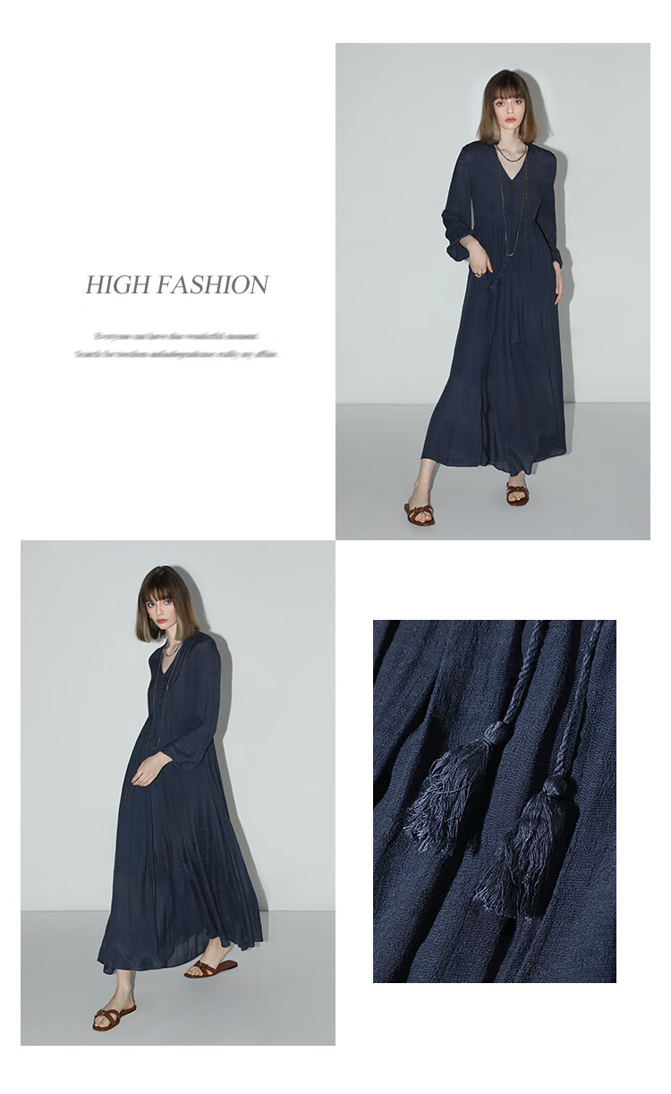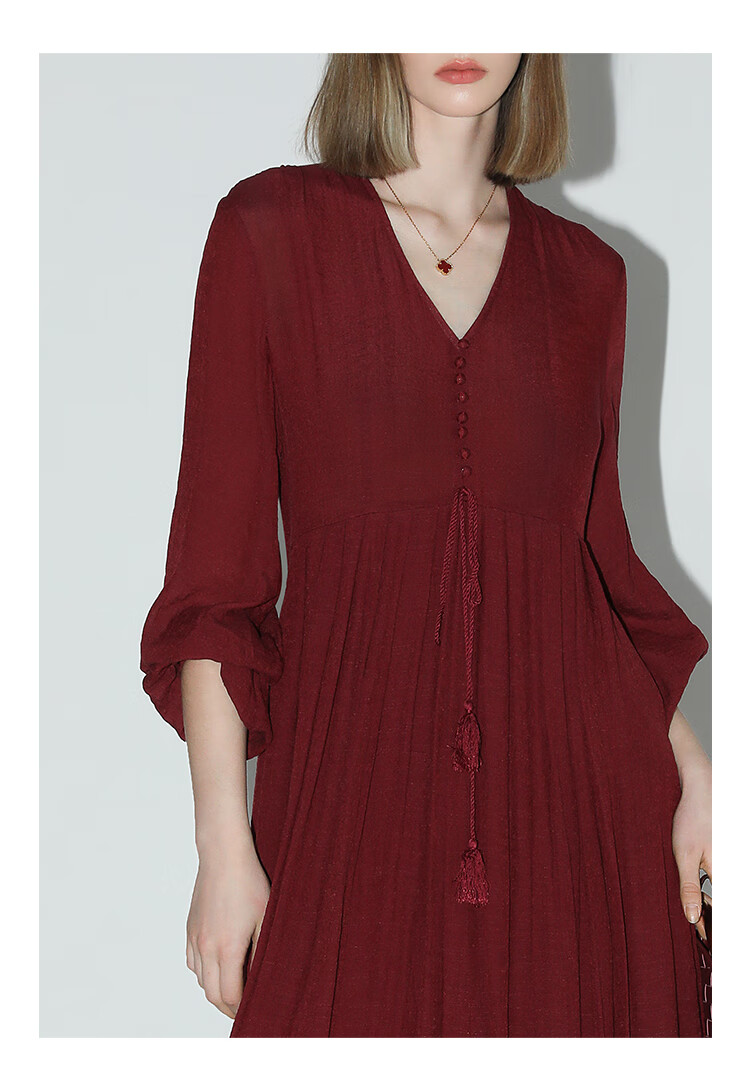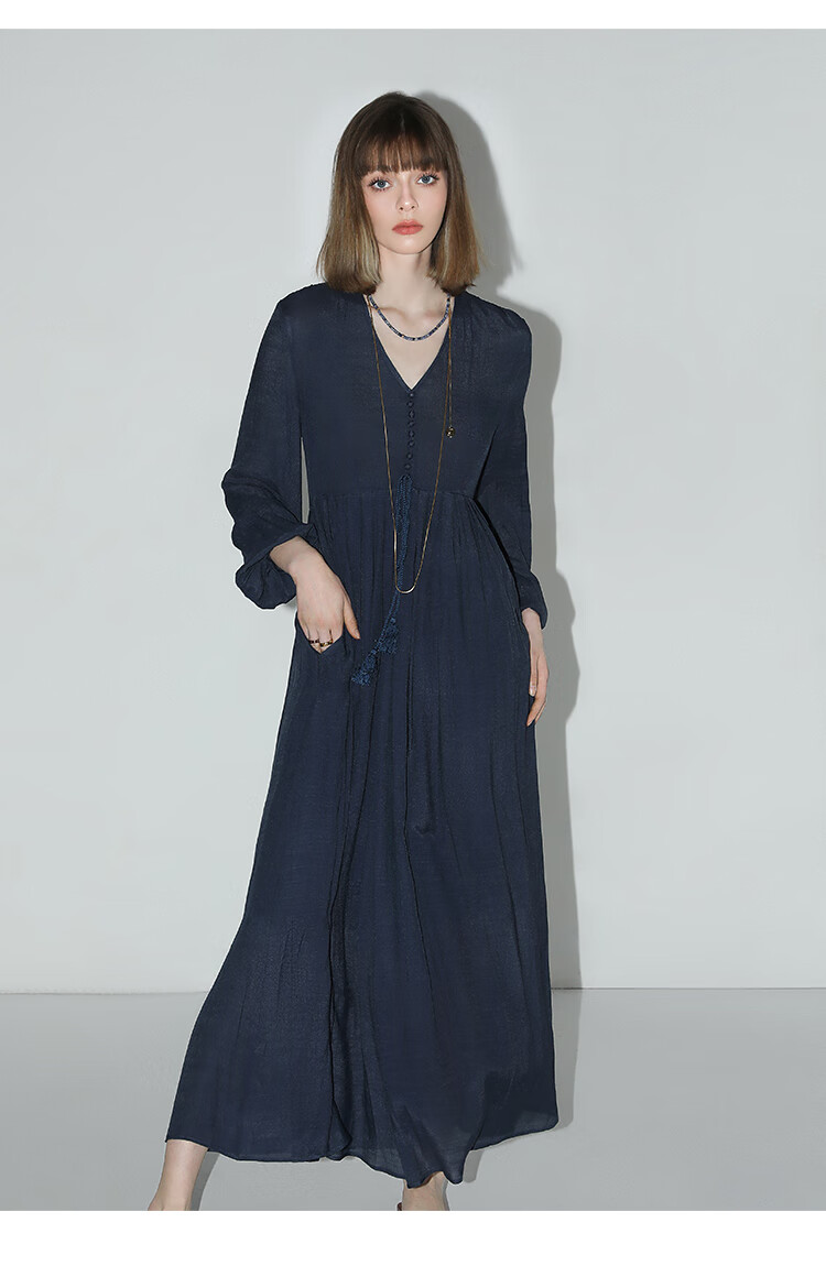 COCOBELLA法式优雅大摆V领连衣裙度假沙滩长裙NFR16