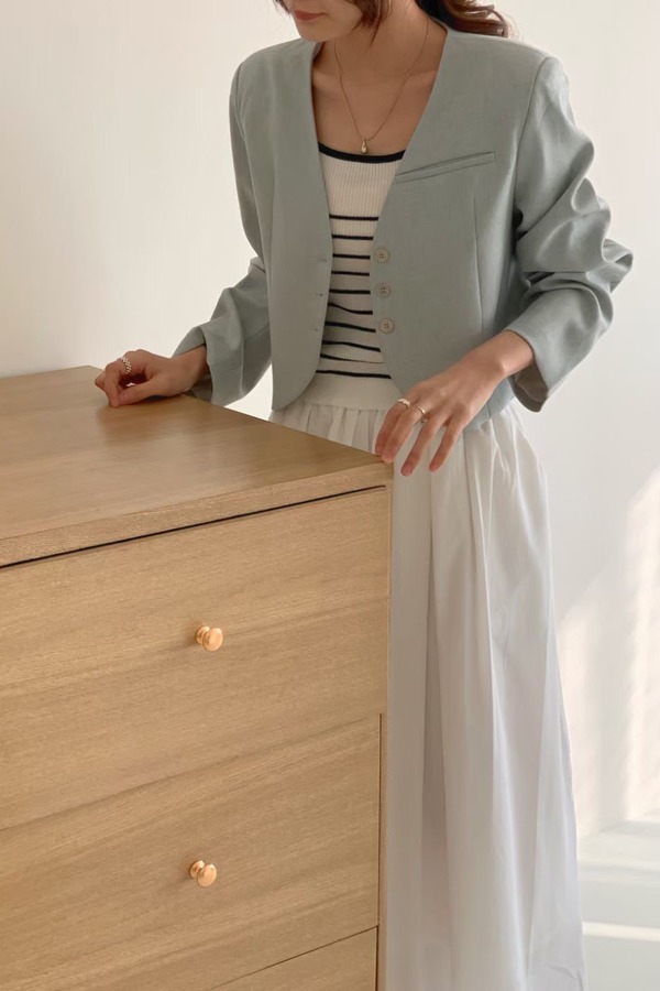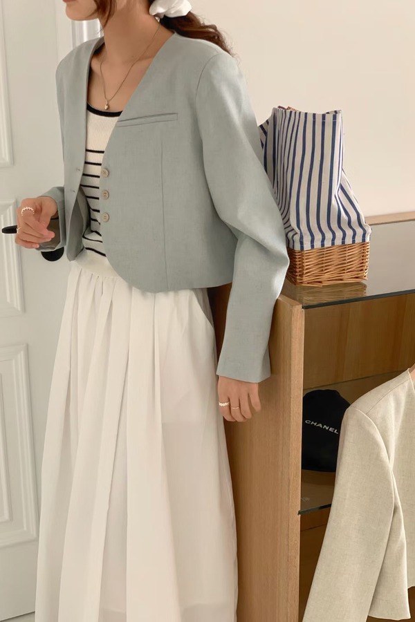 LNNNS 蓝色韩系简约短款外套 19887