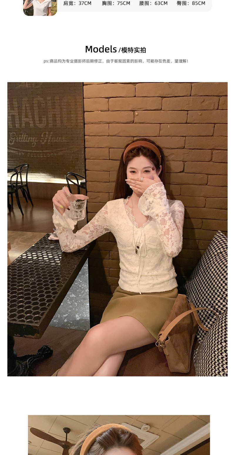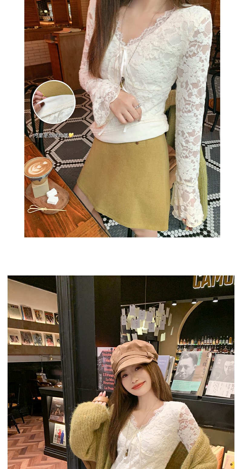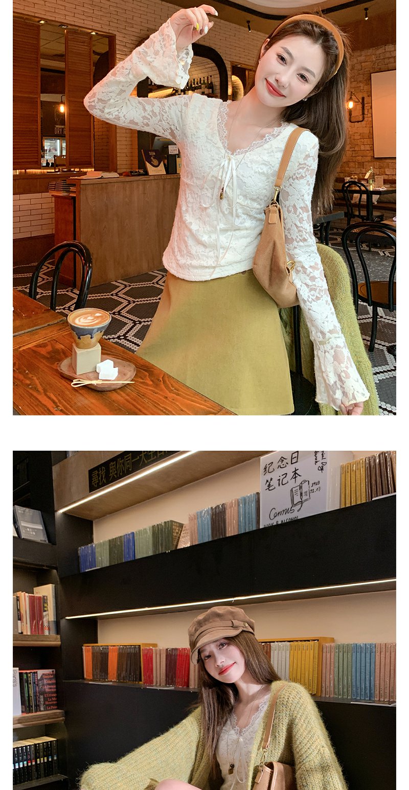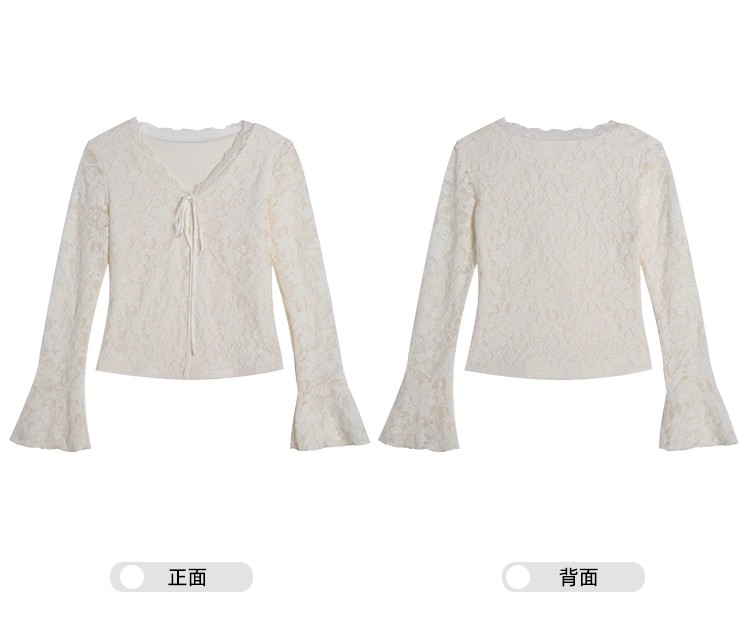 <曾小咸推荐>慵懒蕾丝V领喇叭袖打底衫