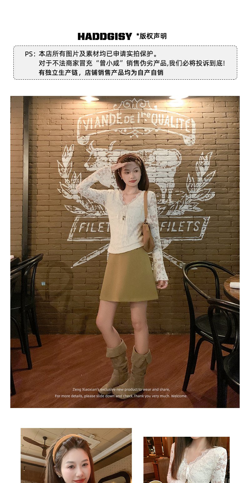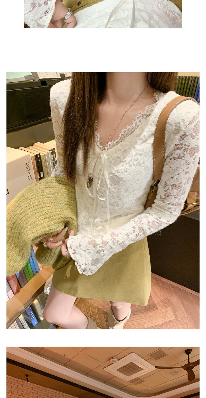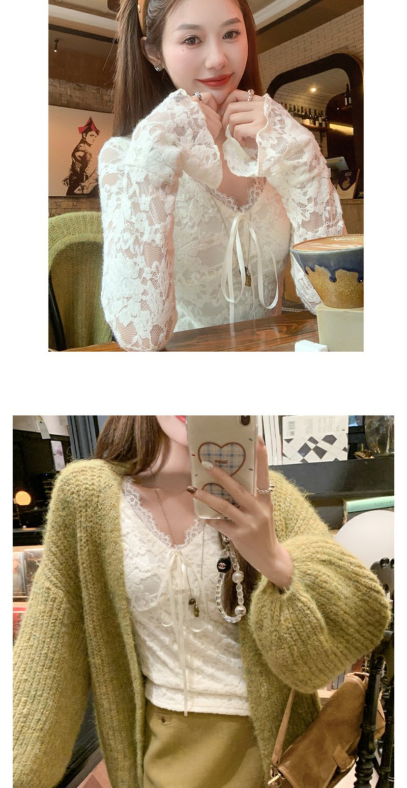 <曾小咸推荐>慵懒蕾丝V领喇叭袖打底衫