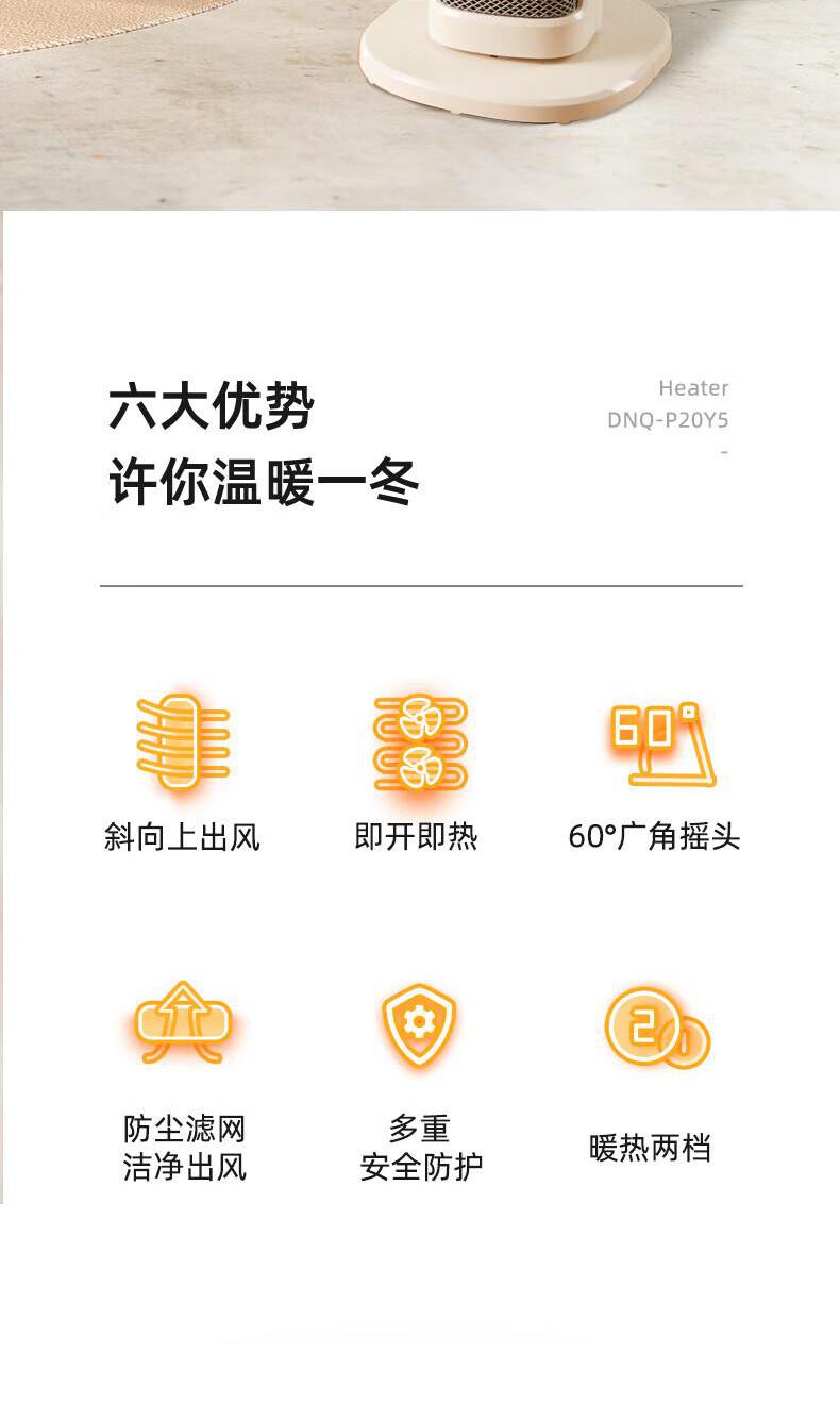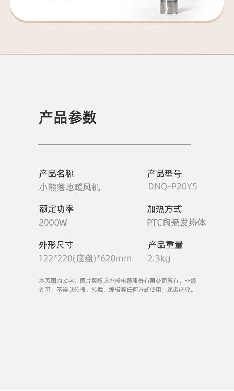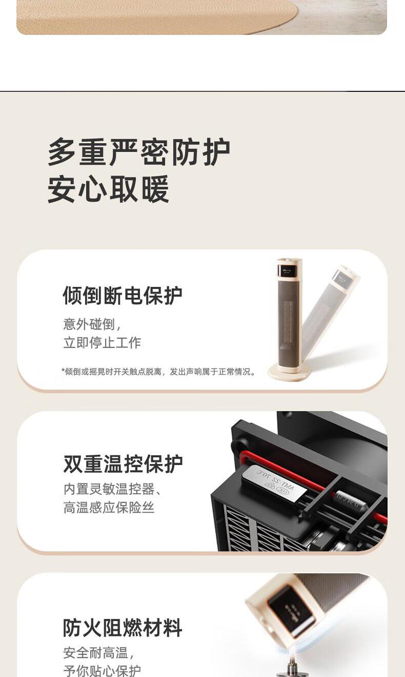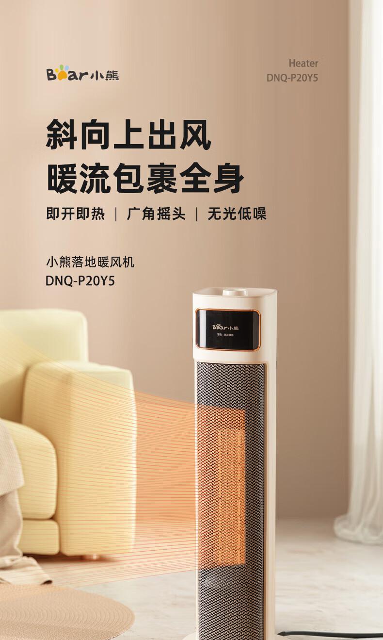 【自营】小熊(Bear)取暖器家用电暖器迷你宿舍暖风机立式塔式便携电暖气小型办公室暖气机 DNQ-P20Y5PTC陶瓷速热倾倒断电低噪轻音立卧两用