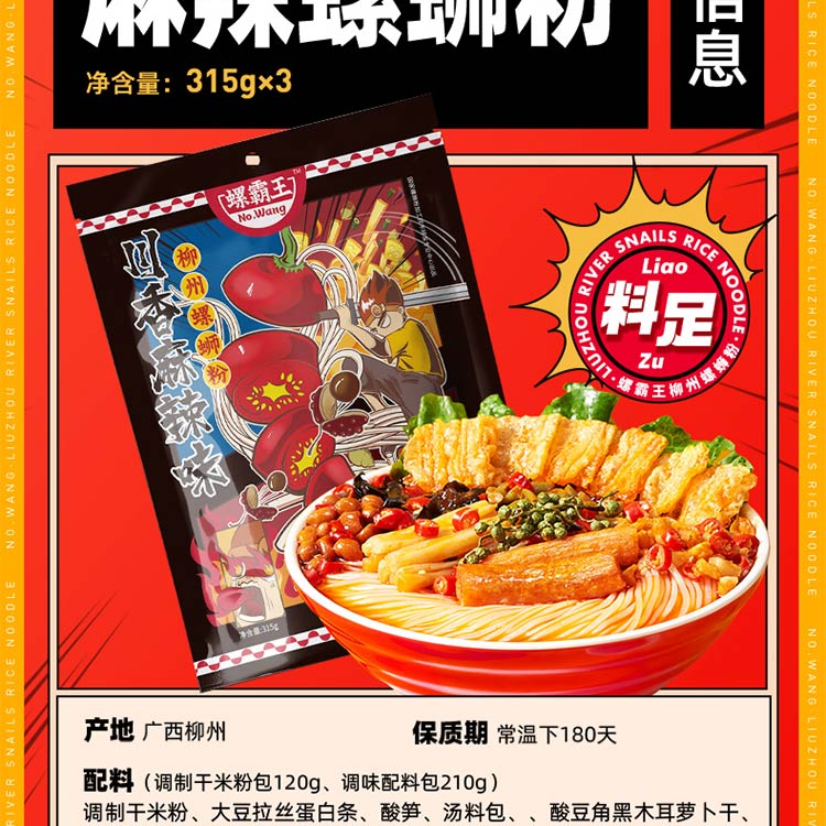 【自营】螺霸王 麻辣味螺蛳粉315g*5袋/盒 礼盒装