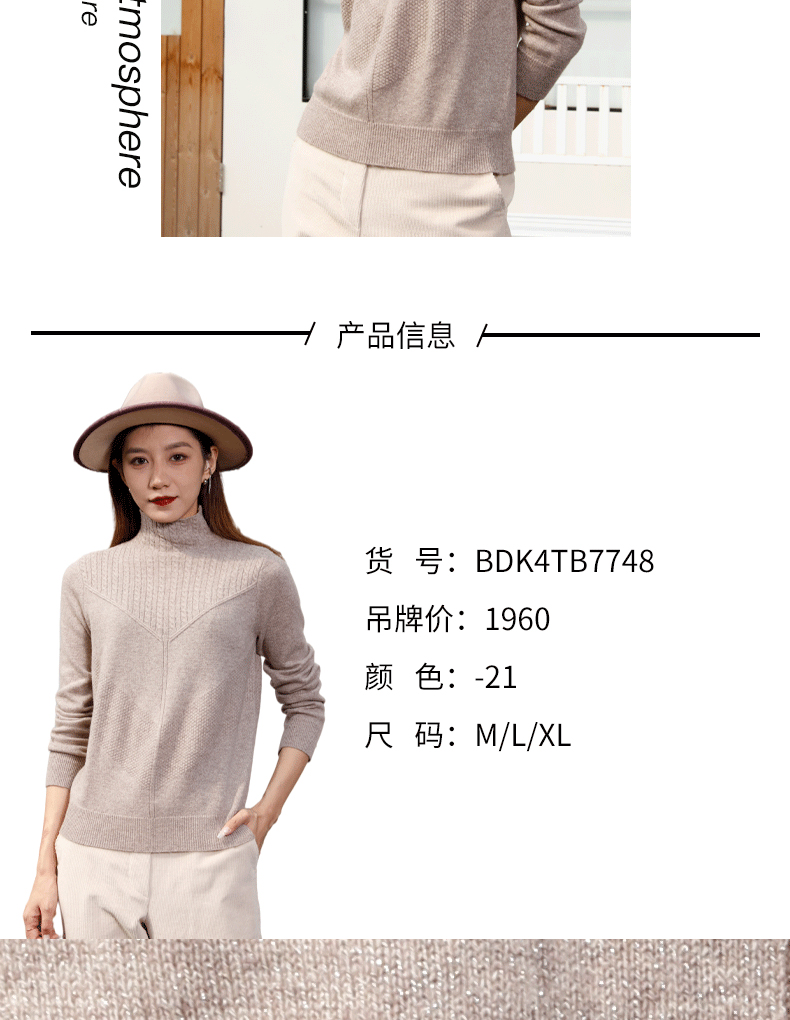 宗洋修身羊毛针织衫BDK4TB7782-21