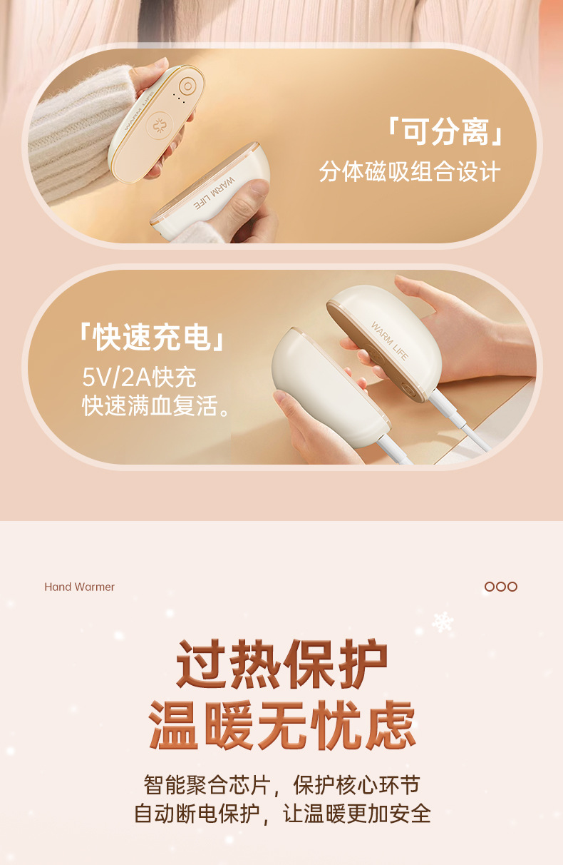 「分体式磁吸暖宝!快速温暖」新款暖手宝磁吸电暖宝二合一户外便携取暖居家日用充电暖宝宝冬季礼品
