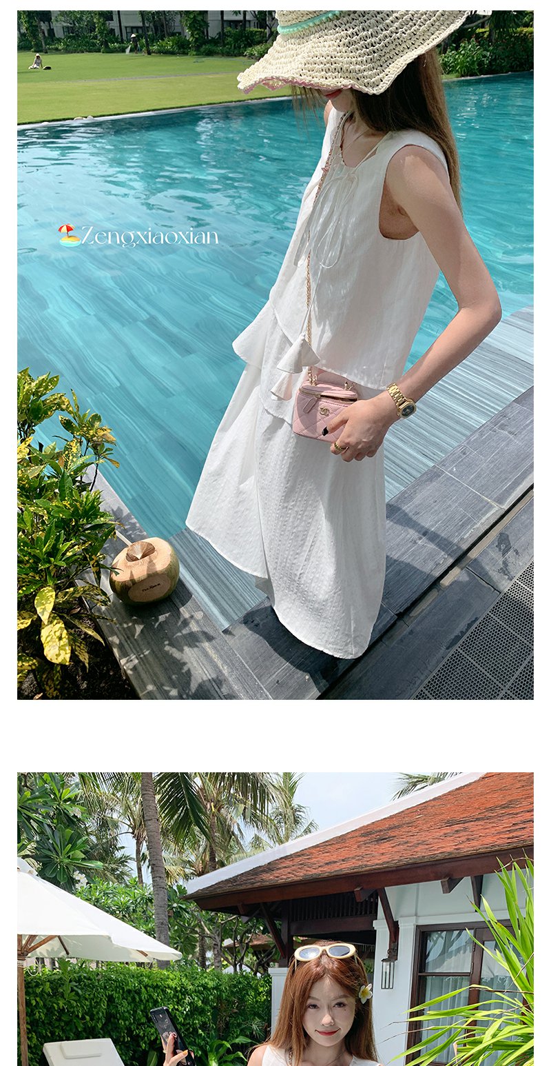 <曾小咸推荐>白色度假风不规则无袖连衣裙