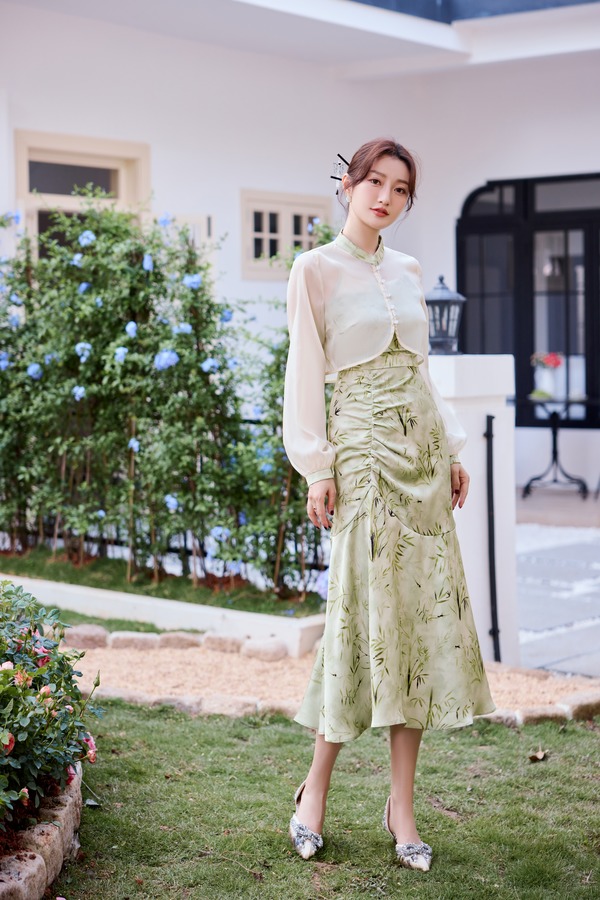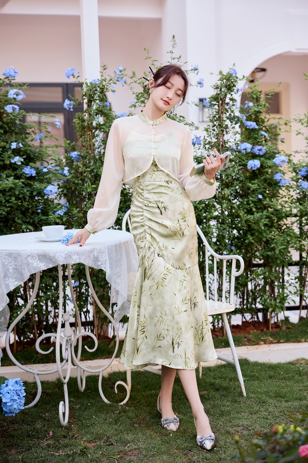 Le Malene 新中式国风开衫吊带印花裙套装 20281